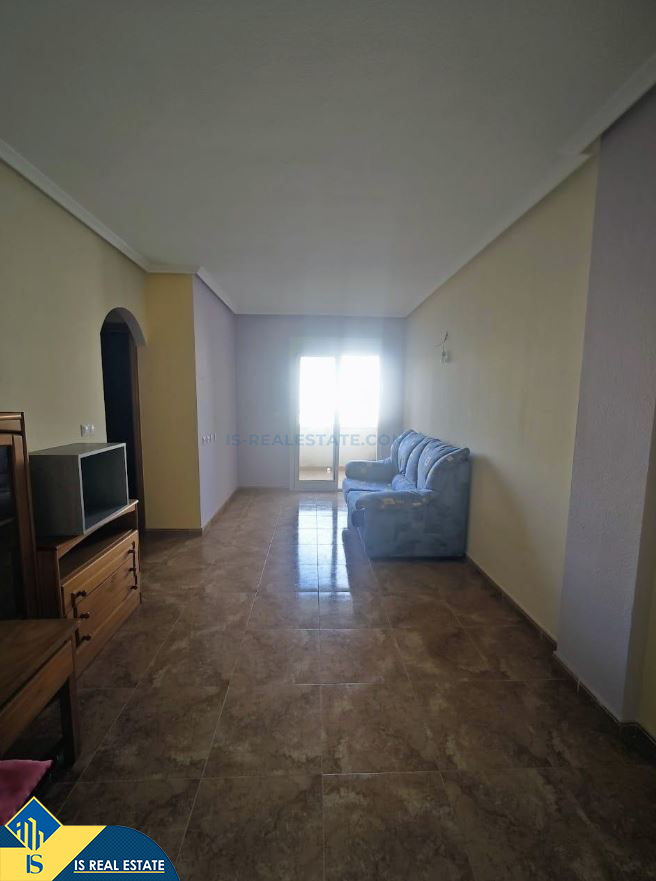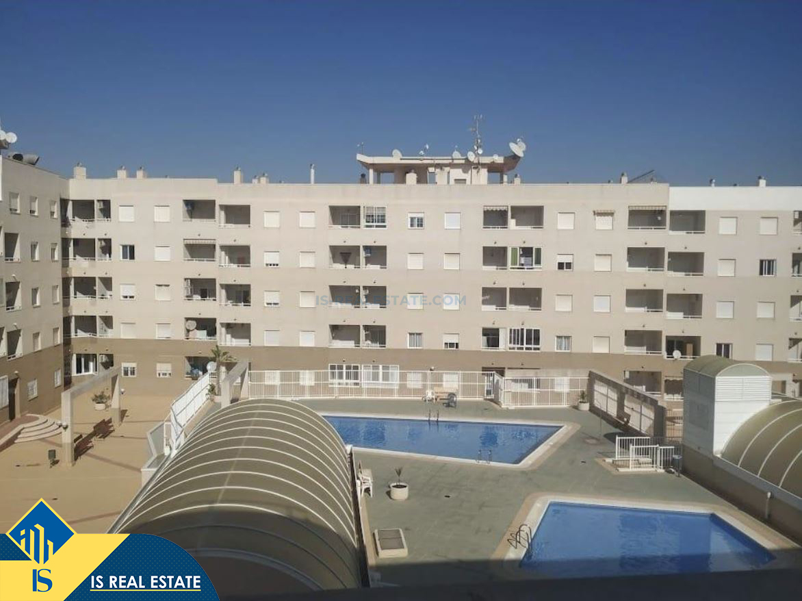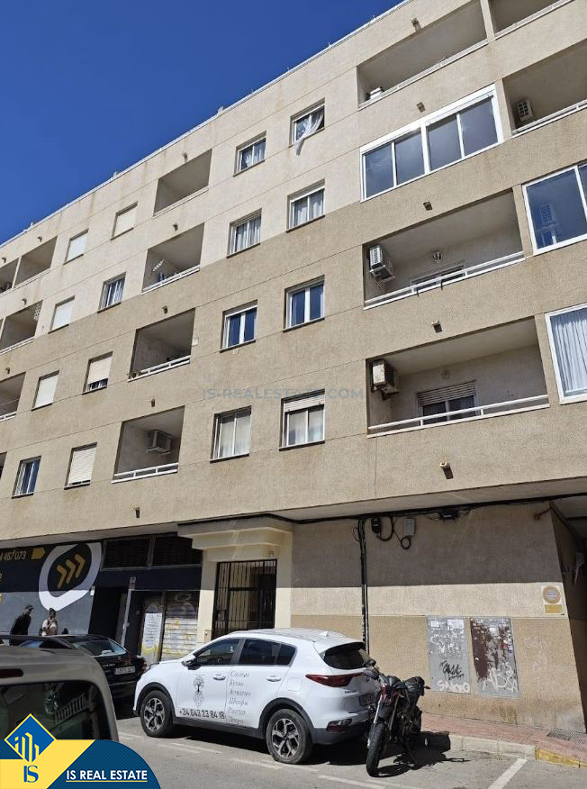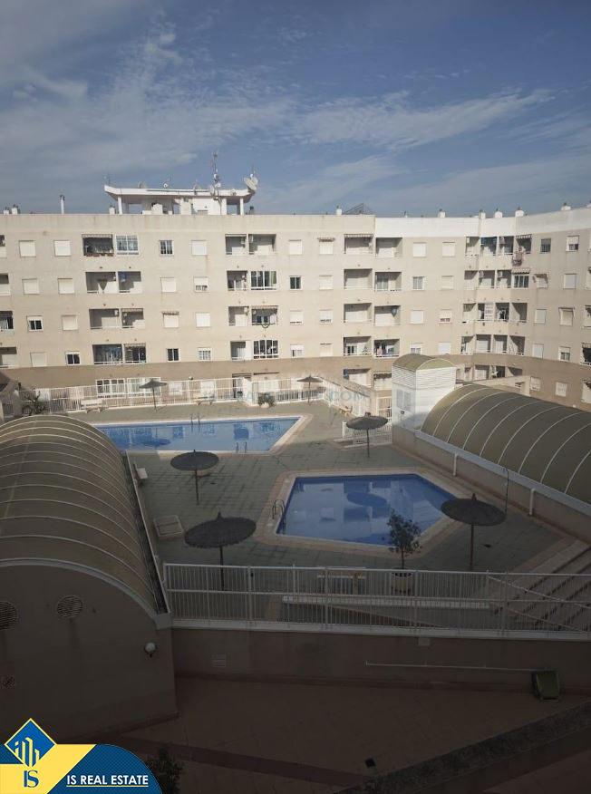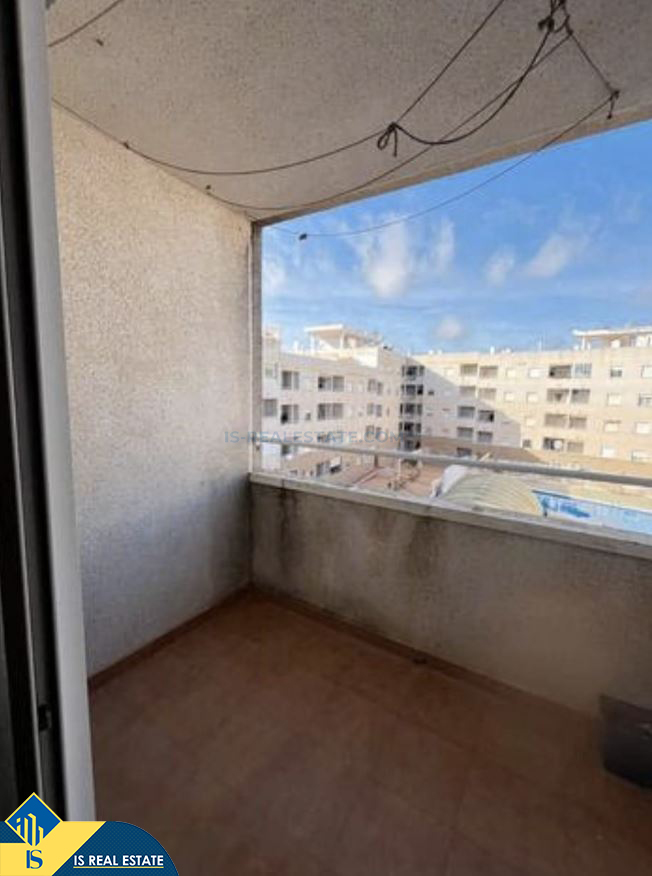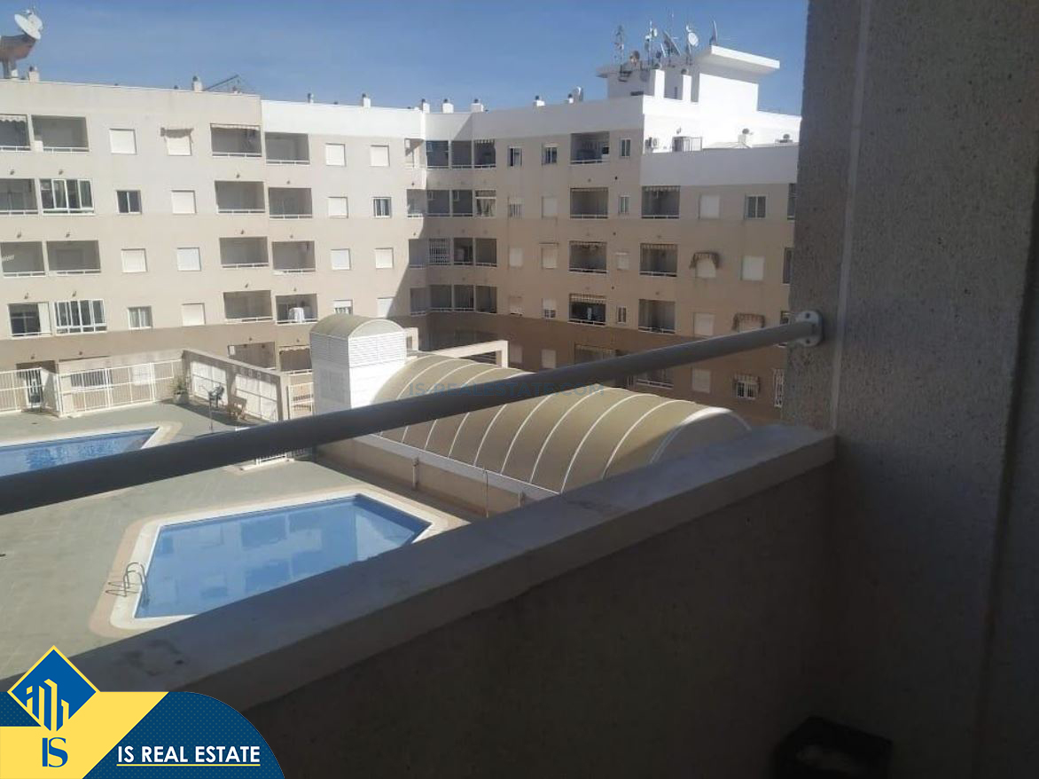 3-jų kambarių apartamentas su bendru baseinu, Ispanijoje, Alicante provincijoje, Torrevieja mieste, bendras plotas 60 m², 1.5 kilometro iki jūros, 45 kilometrai iki Alicante oro uosto. Turtui priklauso bendras baseinas, terasa, liftas, garažas, sandėliukas. Netoli turto yra parduotuvės, restoranai, vaistinės, autobusų stotelės, degalinės, žalios zonos, kavinės