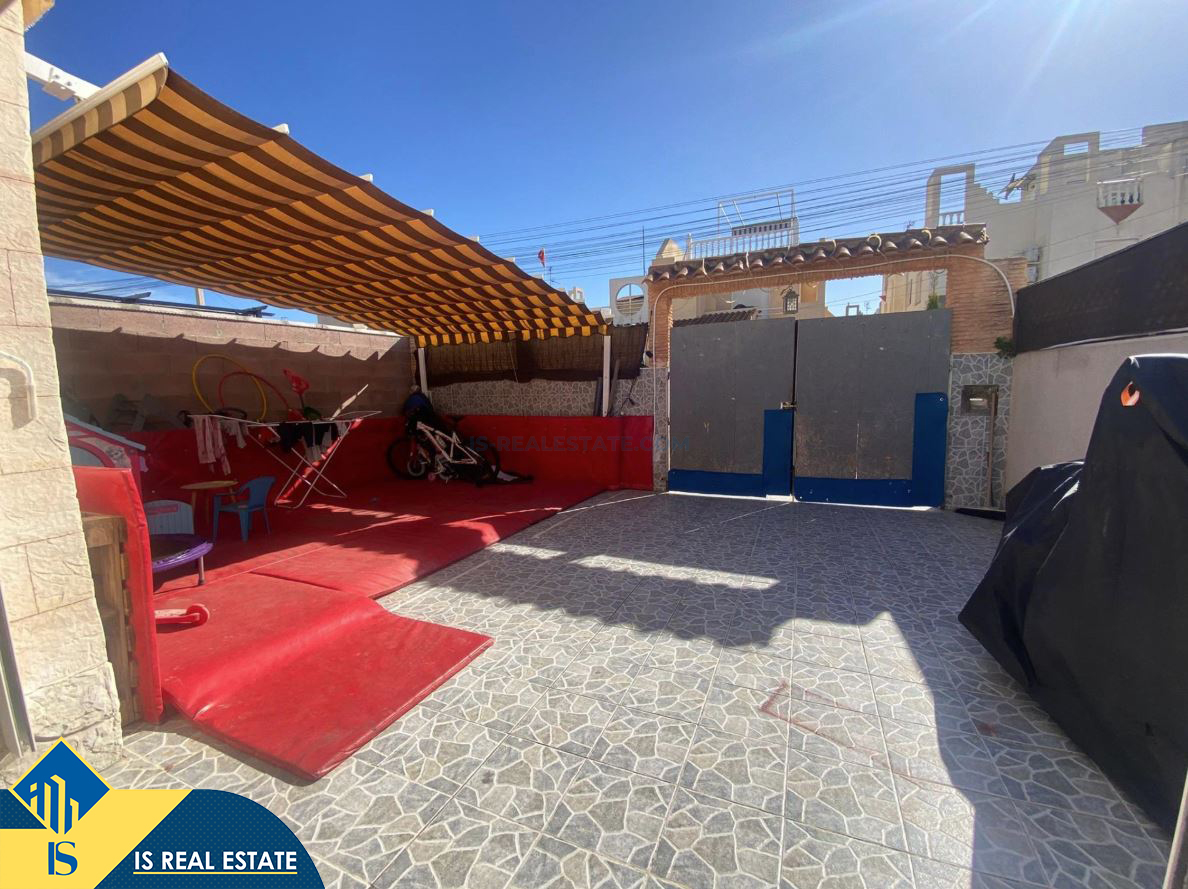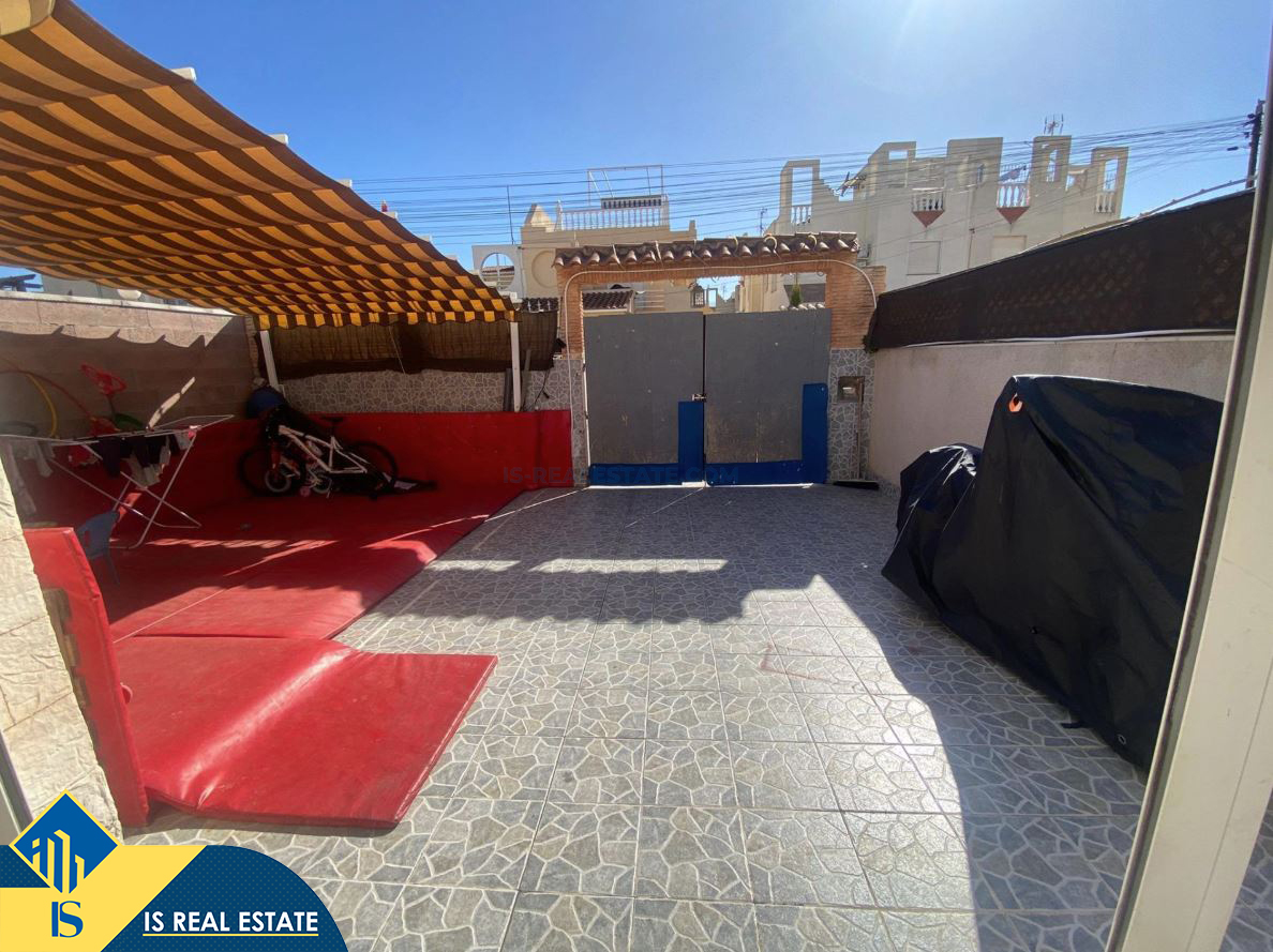 2-jų kambarių namas su terasa, Ispanijoje, Alicante provincijoje, Torrevieja mieste, Torreta rajone, bendras plotas 80 m², 3.6 kilometro iki jūros, 45 kilometrai iki Alicante oro uosto. Turtui priklauso terasa. Netoli turto yra parduotuvės, restoranai, autobusų stotelės, vaikų zonos, degalinės, žalios zonos, kavinės, vaistinės