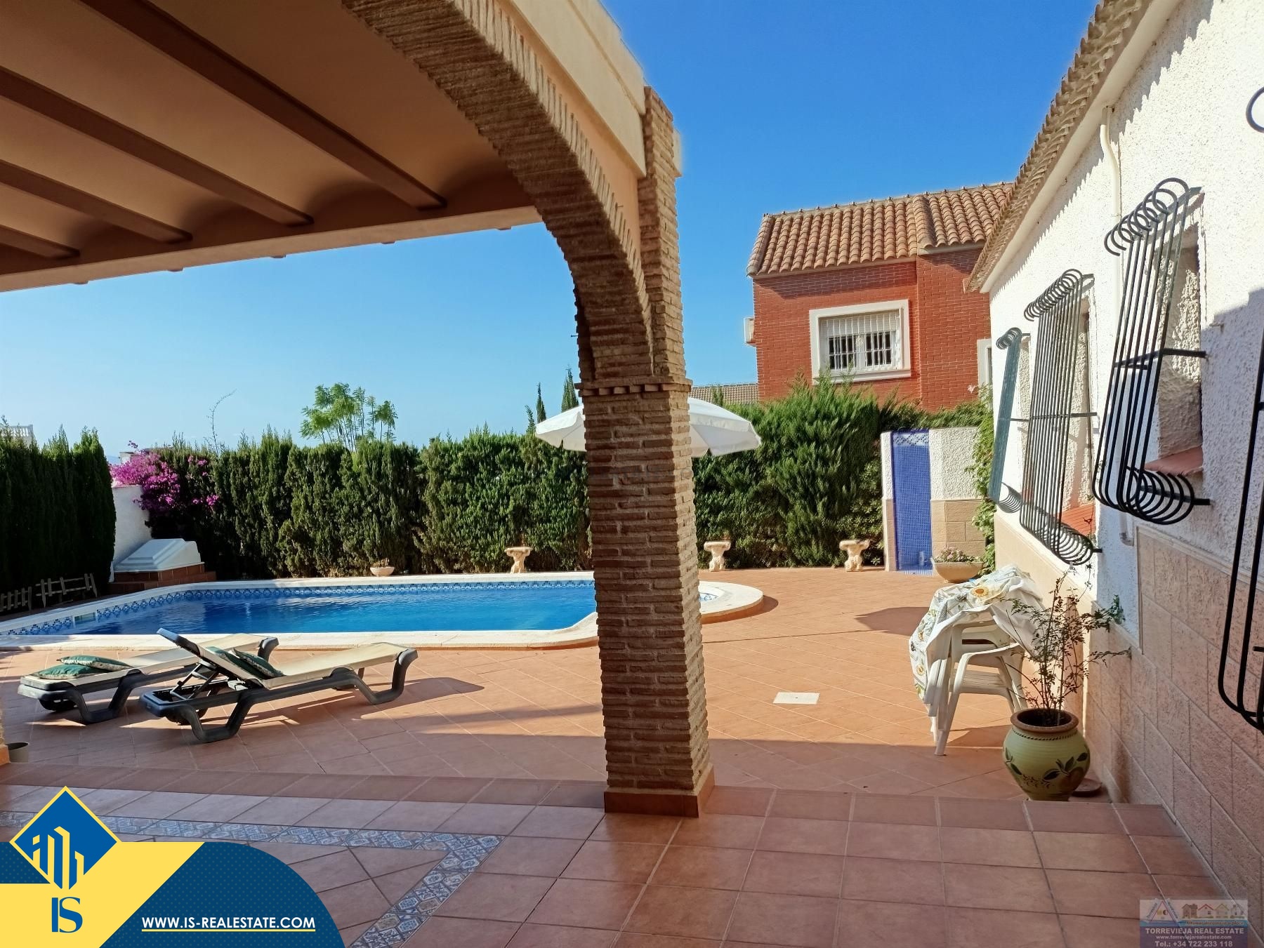 5-ių kambarių vila su privačiu baseinu, Ispanijoje, Alicante provincijoje, Torrevieja mieste, Los Balcones rajone, bendras plotas 110 m², 2 kilometrai iki jūros, 45 kilometrai iki Alicante miesto oro uosto. Turtui priklauso privatus baseinas, kiemas, terasa, vieta automobiliui. Netoli turto yra parduotuvės, restoranai, autobusų stotelės, vaikų zonos, degalinės, žalios zonos, kavinės, vaistinės