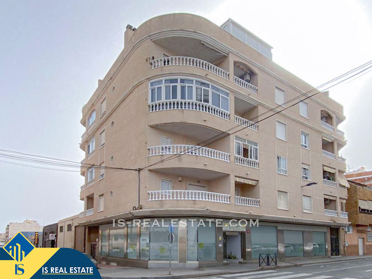 3-jų kambarių apartamentas su terasa, Ispanijoje, Alicante provincijoje, Torrevieja mieste, bendras plotas 68 m², 1.4 kilometro iki jūros, 45 kilometrai iki Alicante oro uosto. Turtui priklauso terasa, liftas. Netoli turto yra parduotuvės, restoranai, vaistinės, autobusų stotelės, degalinės, žalios zonos, kavinės