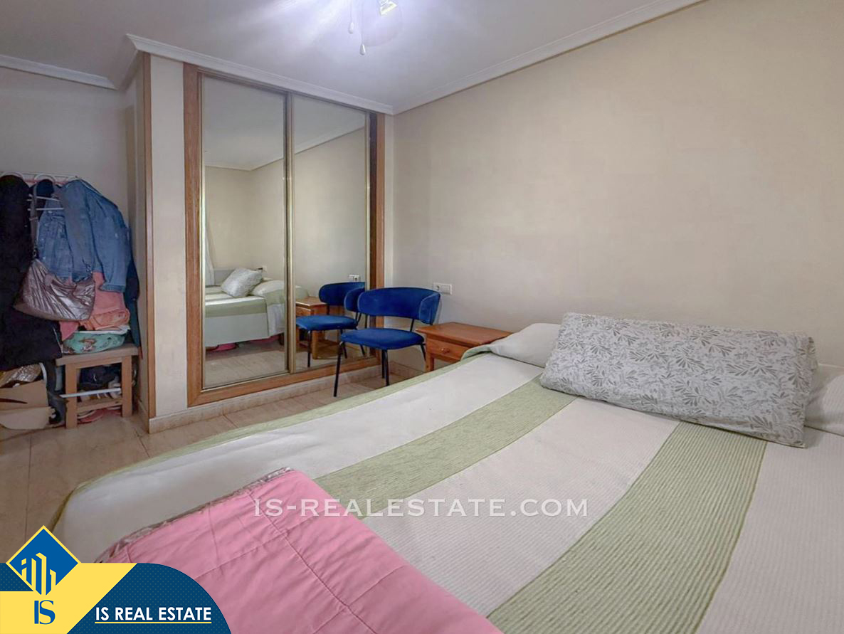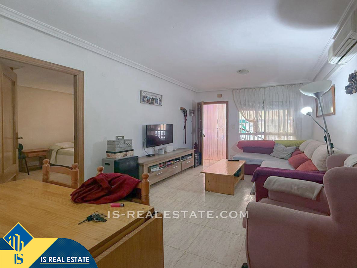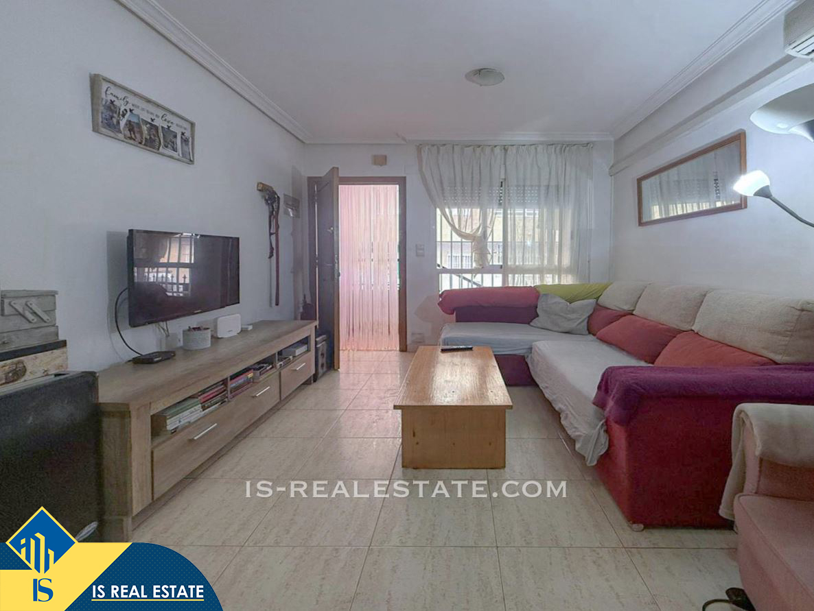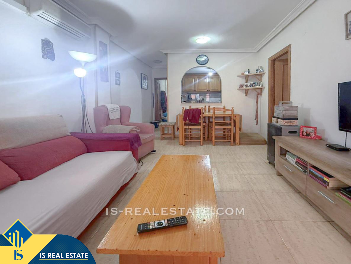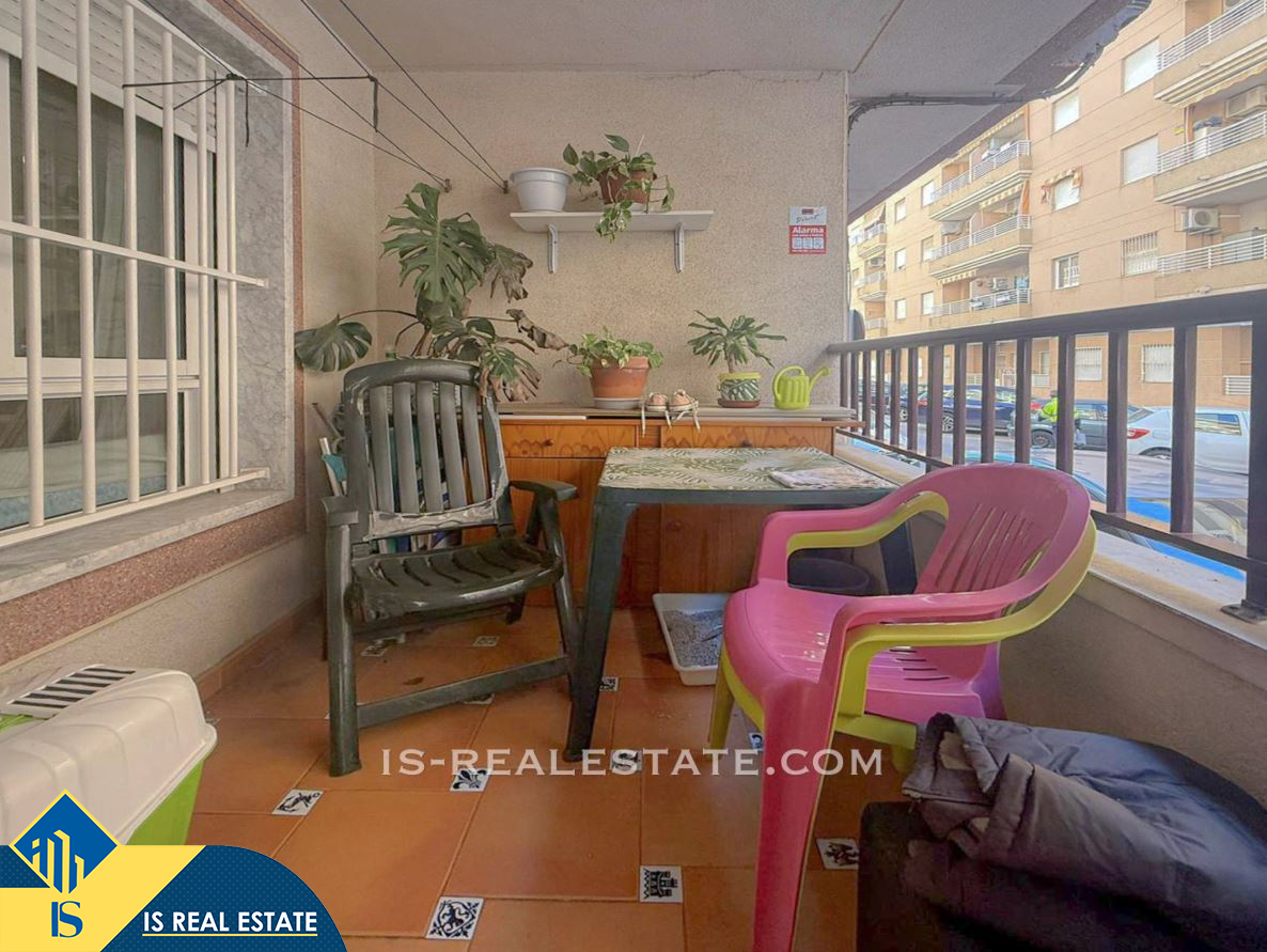 2-jų kambarių apartamentas su terasa, Ispanijoje, Alicante provincijoje, Torrevieja mieste, bendras plotas 59 m², 800 metrų iki jūros, 45 kilometrai iki Alicante oro uosto. Turtui priklauso terasa, liftas. Netoli turto yra parduotuvės, restoranai, vaistinės, autobusų stotelės, degalinės, žalios zonos, kavinės