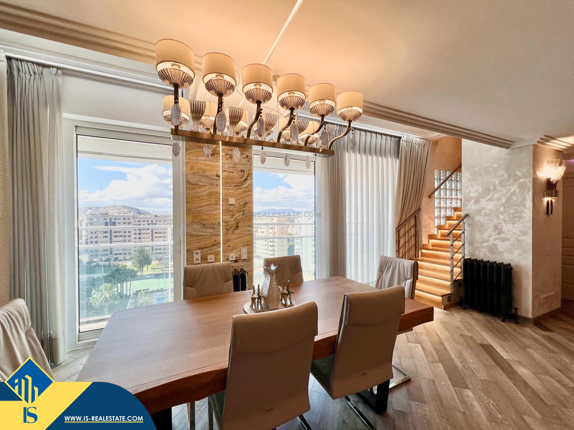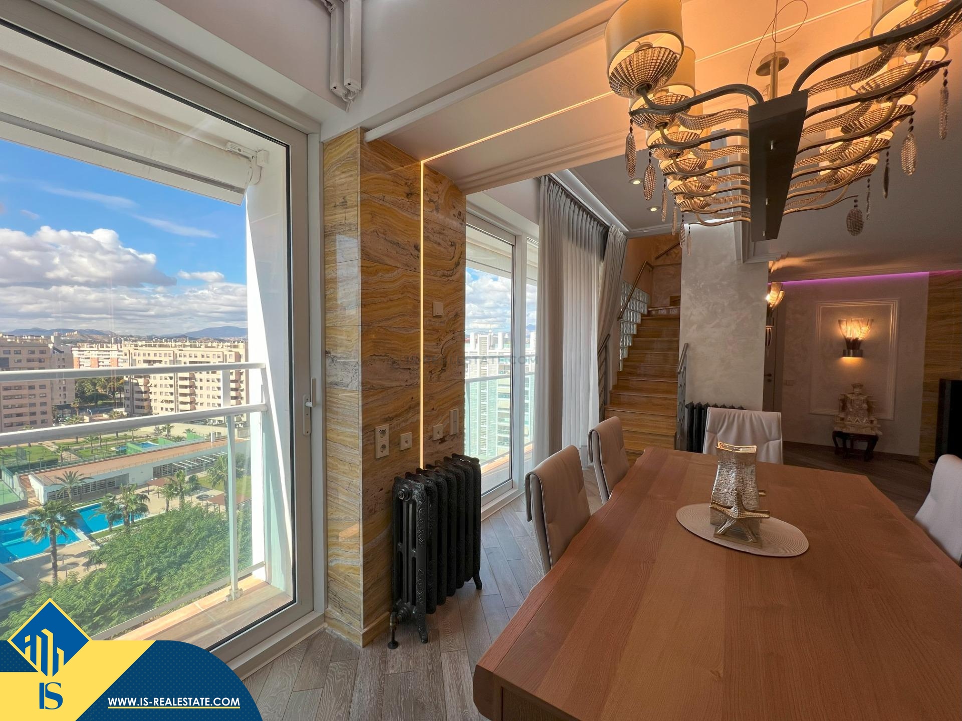 5-ių kambarių duplex penthouse apartamentas su bendru baseinu, Ispanijoje, Alicante provincijoje, Alicante mieste, bendras plotas 404 m², 1.5 kilometrai iki jūros, 18 kilometrų iki Alicante oro uosto. Turtui priklauso terasa, liftas, vieta automobiliui, bendras baseinas. Netoli turto yra parduotuvės, restoranai, vaistinės, autobusų stotelės, degalinės, žalios zonos, kavinės