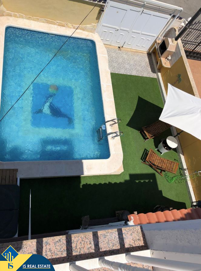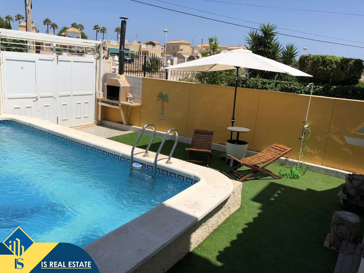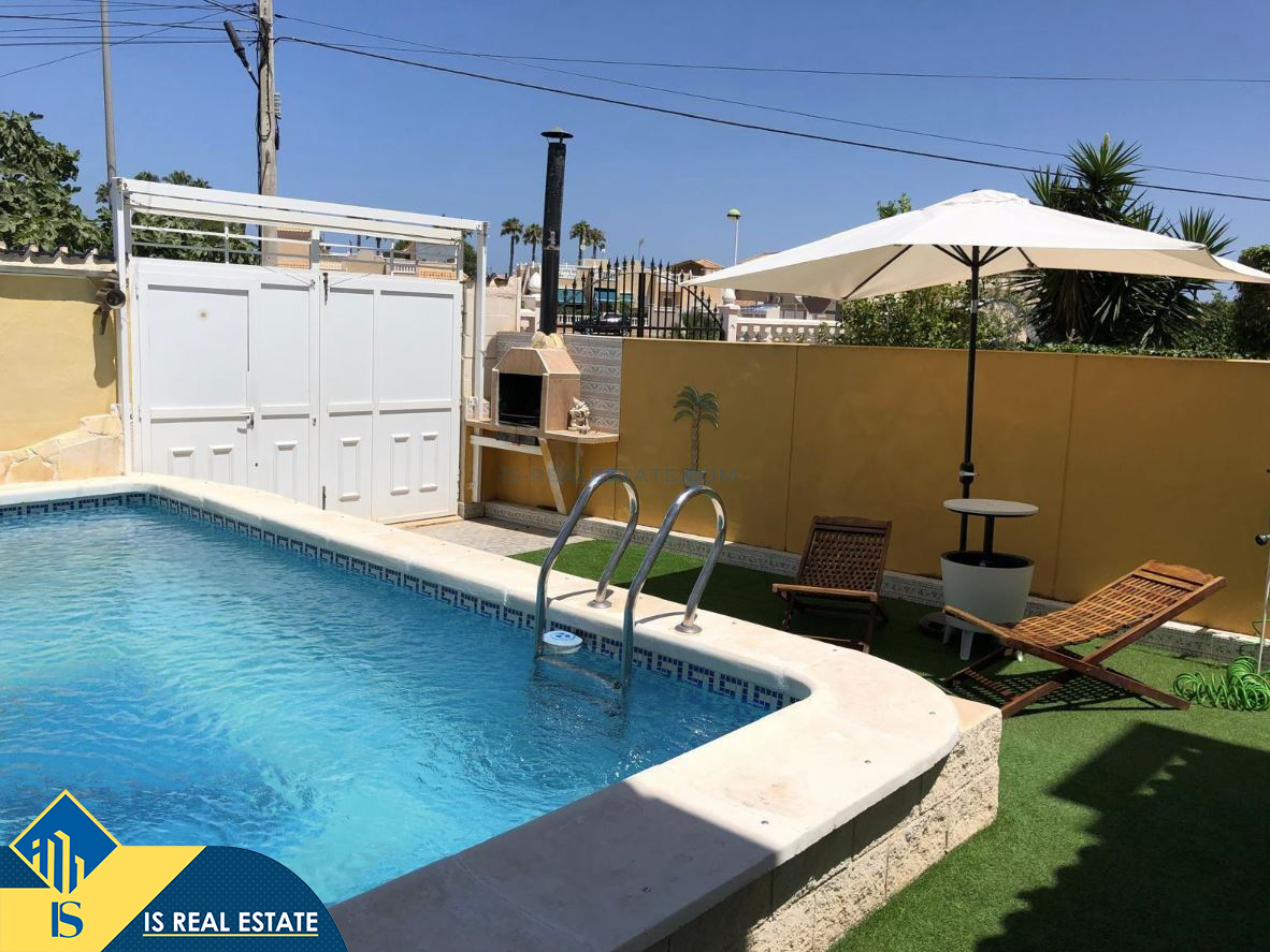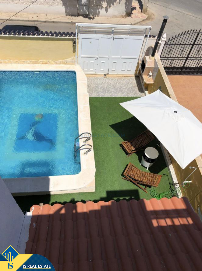 5-ių kambarių vila su privačiu baseinu, Ispanijoje, Alicante provincijoje, Torrevieja mieste, Torreta rajone, bendras plotas 114 m², 3.7 kilometro iki jūros, 45 kilometrai iki Alicante oro uosto. Turtui priklauso terasa, privatus baseinas, privatus kiemas. Netoli turto yra parduotuvės, restoranai, autobusų stotelės, vaikų zonos, degalinės, žalios zonos, kavinės, vaistinės