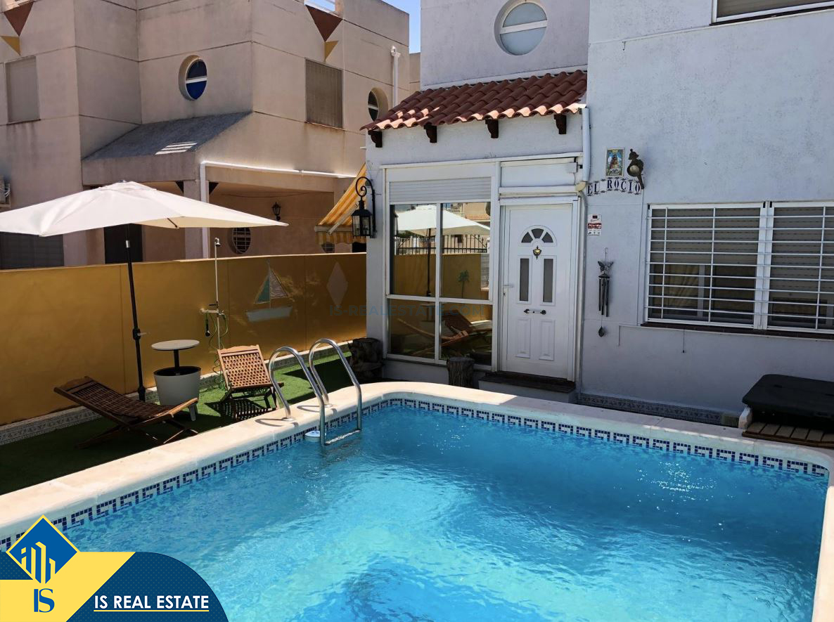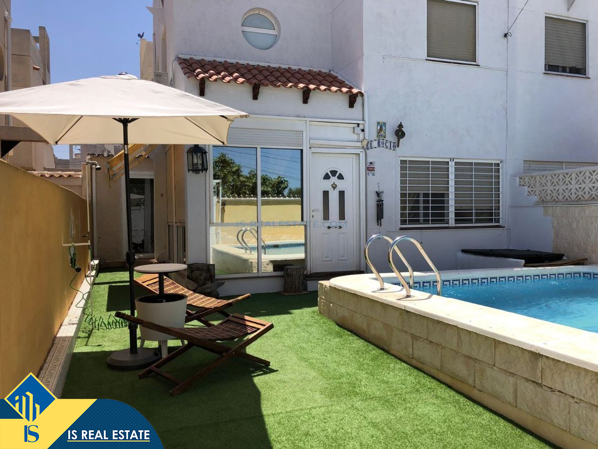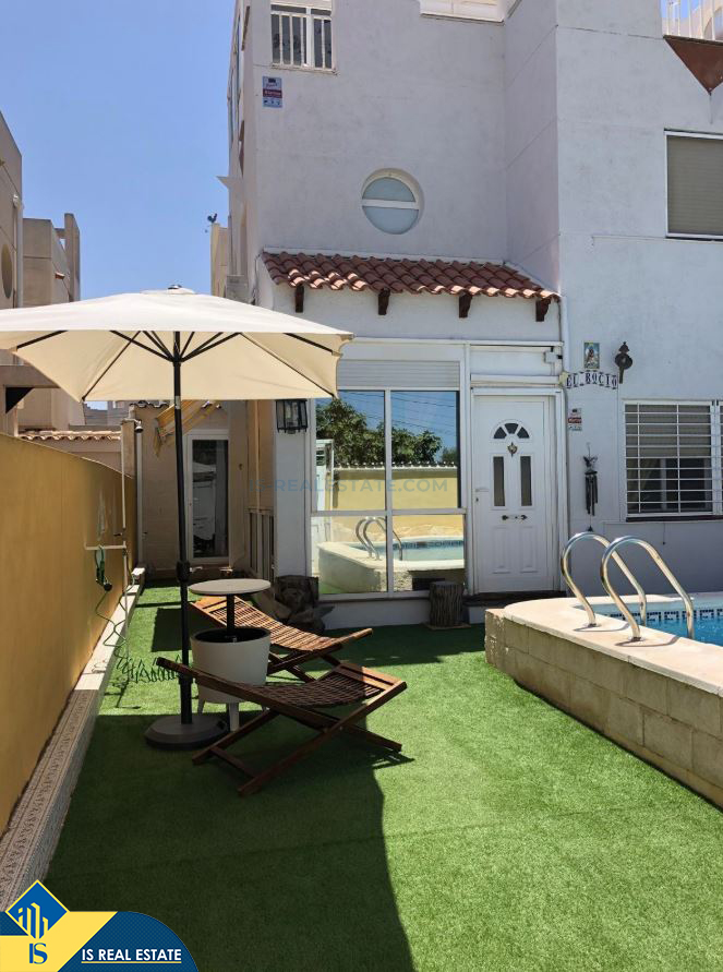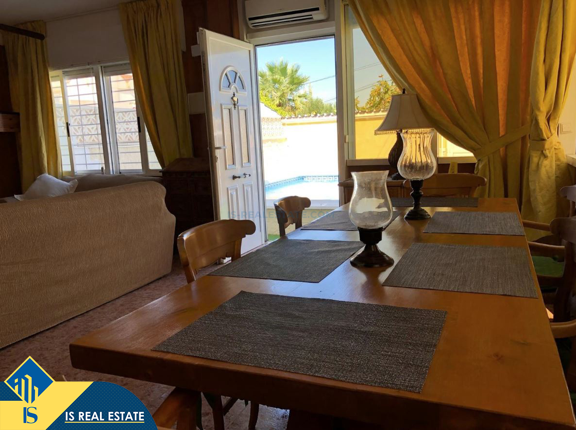 5-ių kambarių vila su privačiu baseinu, Ispanijoje, Alicante provincijoje, Torrevieja mieste, Torreta rajone, bendras plotas 114 m², 3.7 kilometro iki jūros, 45 kilometrai iki Alicante oro uosto. Turtui priklauso terasa, privatus baseinas, privatus kiemas. Netoli turto yra parduotuvės, restoranai, autobusų stotelės, vaikų zonos, degalinės, žalios zonos, kavinės, vaistinės