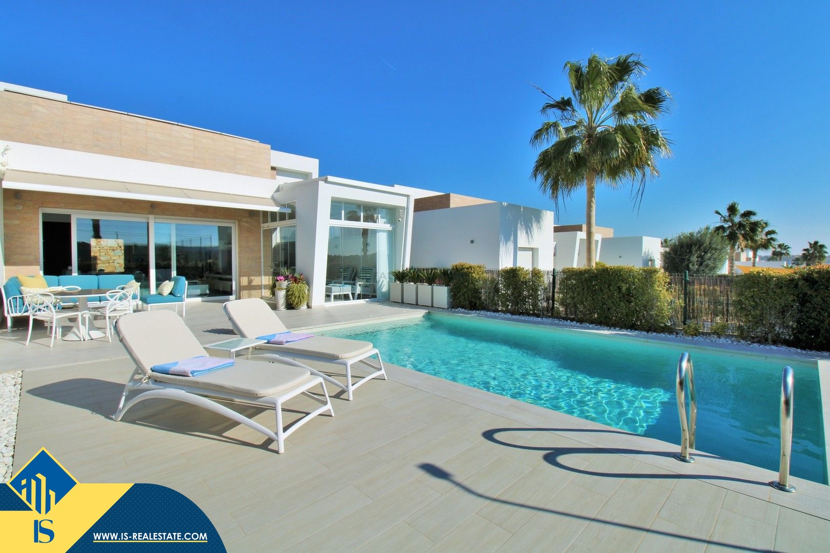 4-ių kambarių vila su privačiu baseinu, Ispanijoje, Alicante provincijoje, Algorfa mieste, bendras plotas 132 m², 14 kilometrų iki jūros, 47 kilometrai iki Alicante oro uosto. Turtui priklauso privatus baseinas, terasa. Netoli turto yra parduotuvės, restoranai, autobusų stotelės, vaikų zonos, degalinės, žalios zonos, kavinės, ligoninė