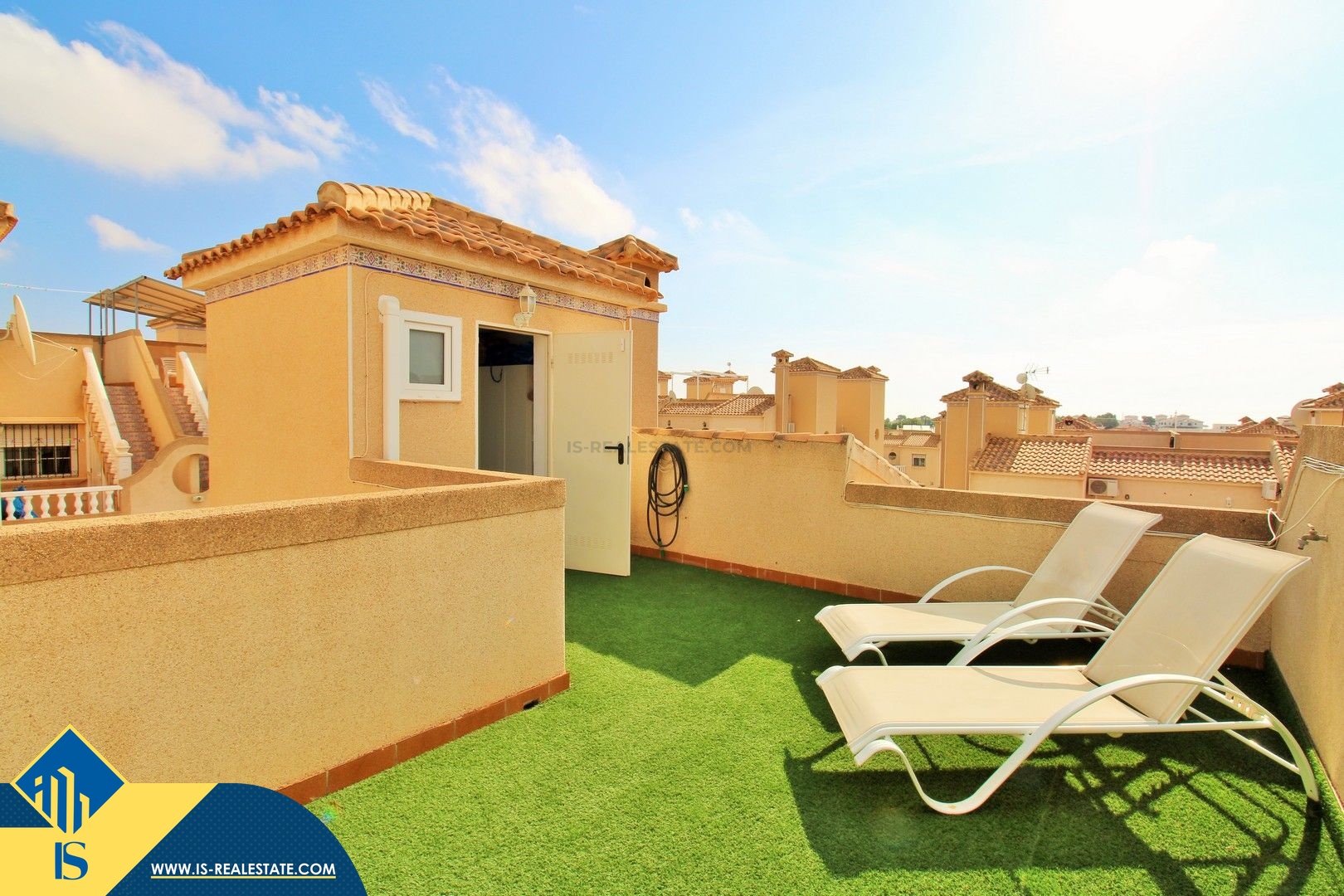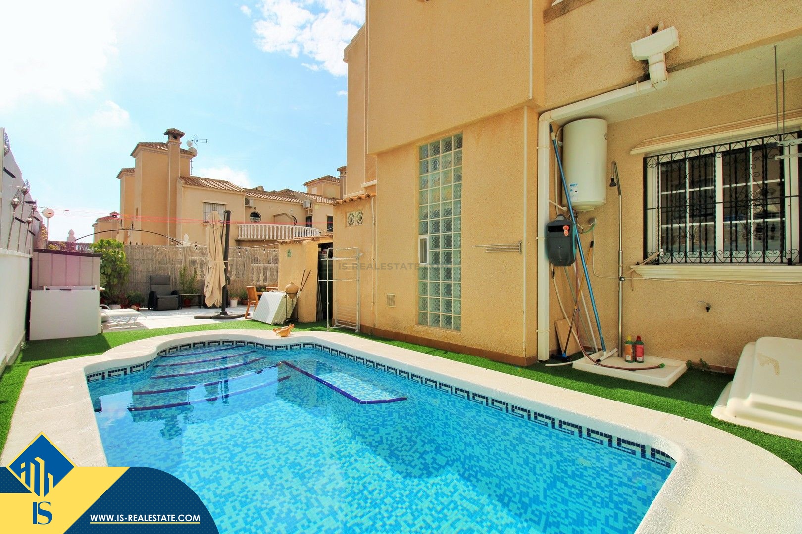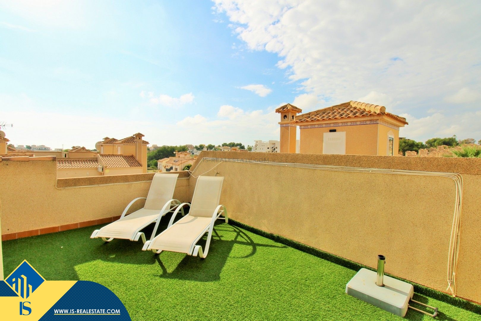 3-jų kambarių namas, Ispanijoje, Alicante provincijoje, Orihuela Costa mieste, 3 kilometrai iki jūros, bendras plotas 91 m², 57 kilometrai iki Alicante miesto oro uosto. Turtui priklauso terasa, kiemas, privatus baseinas, soliariumas, vieta automobiliui. Netoli turto yra parduotuvės, restoranai, autobusų stotelės, vaikų zonos, degalinės, žalios zonos, kavinės, ligoninė