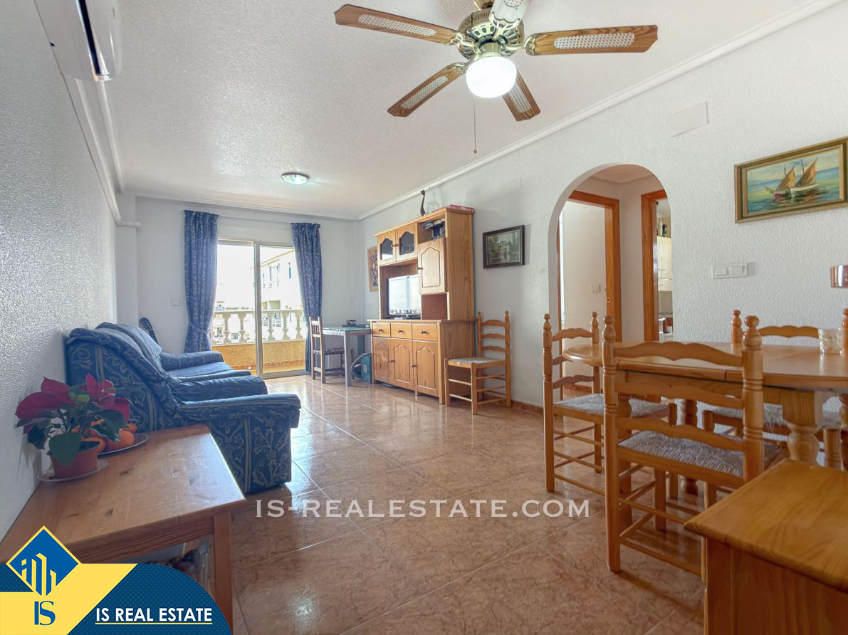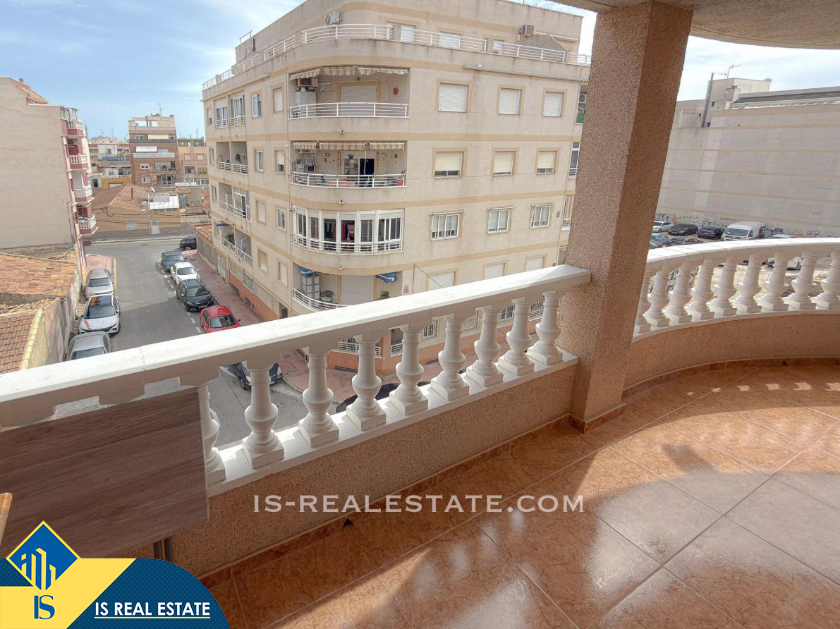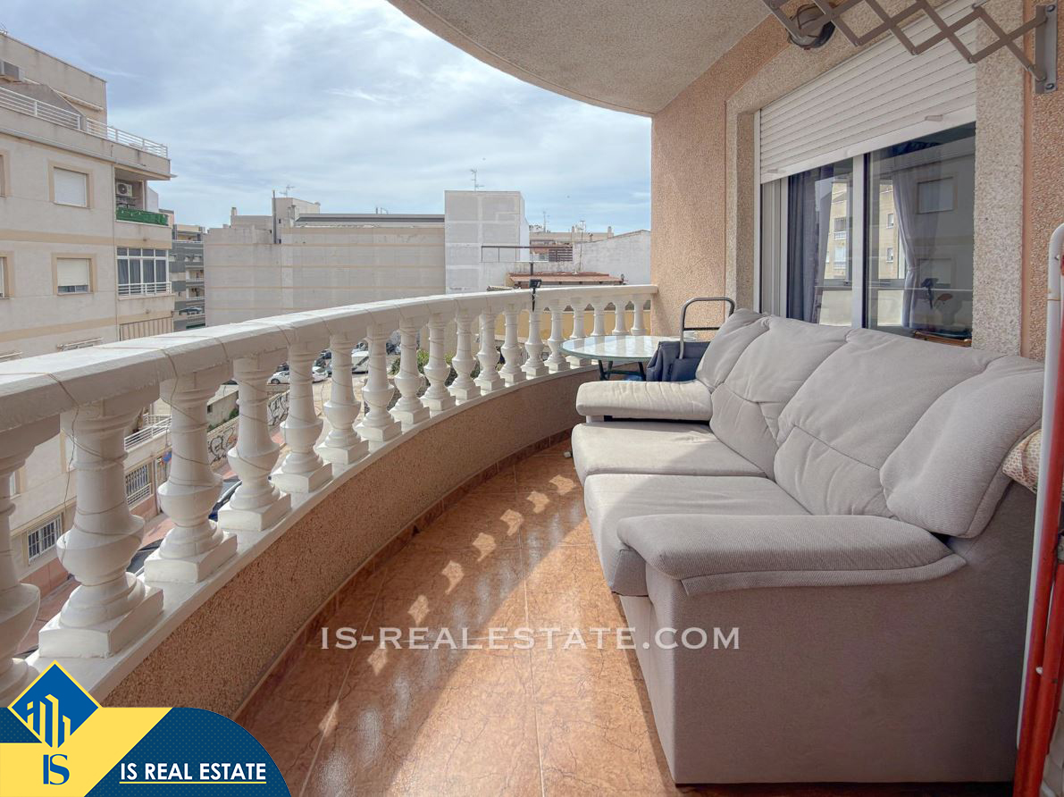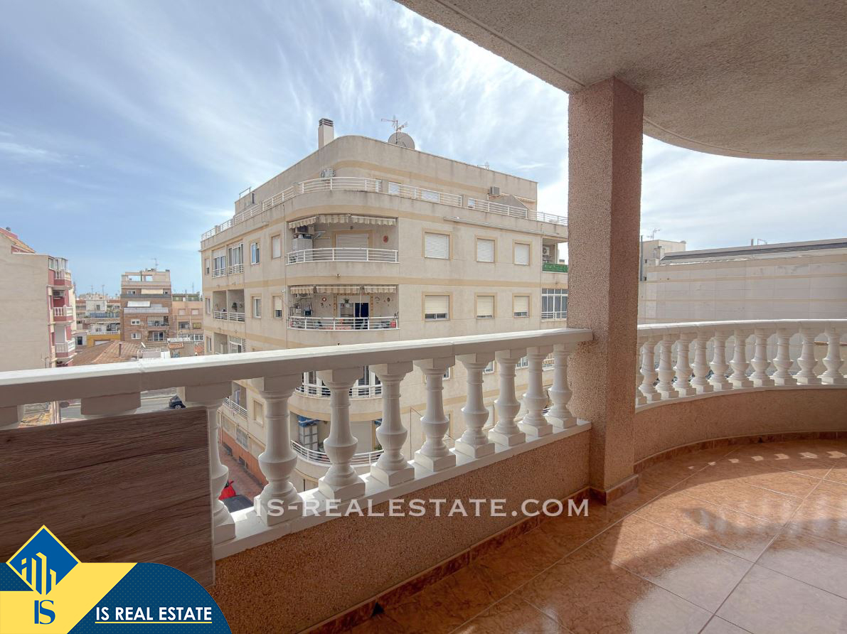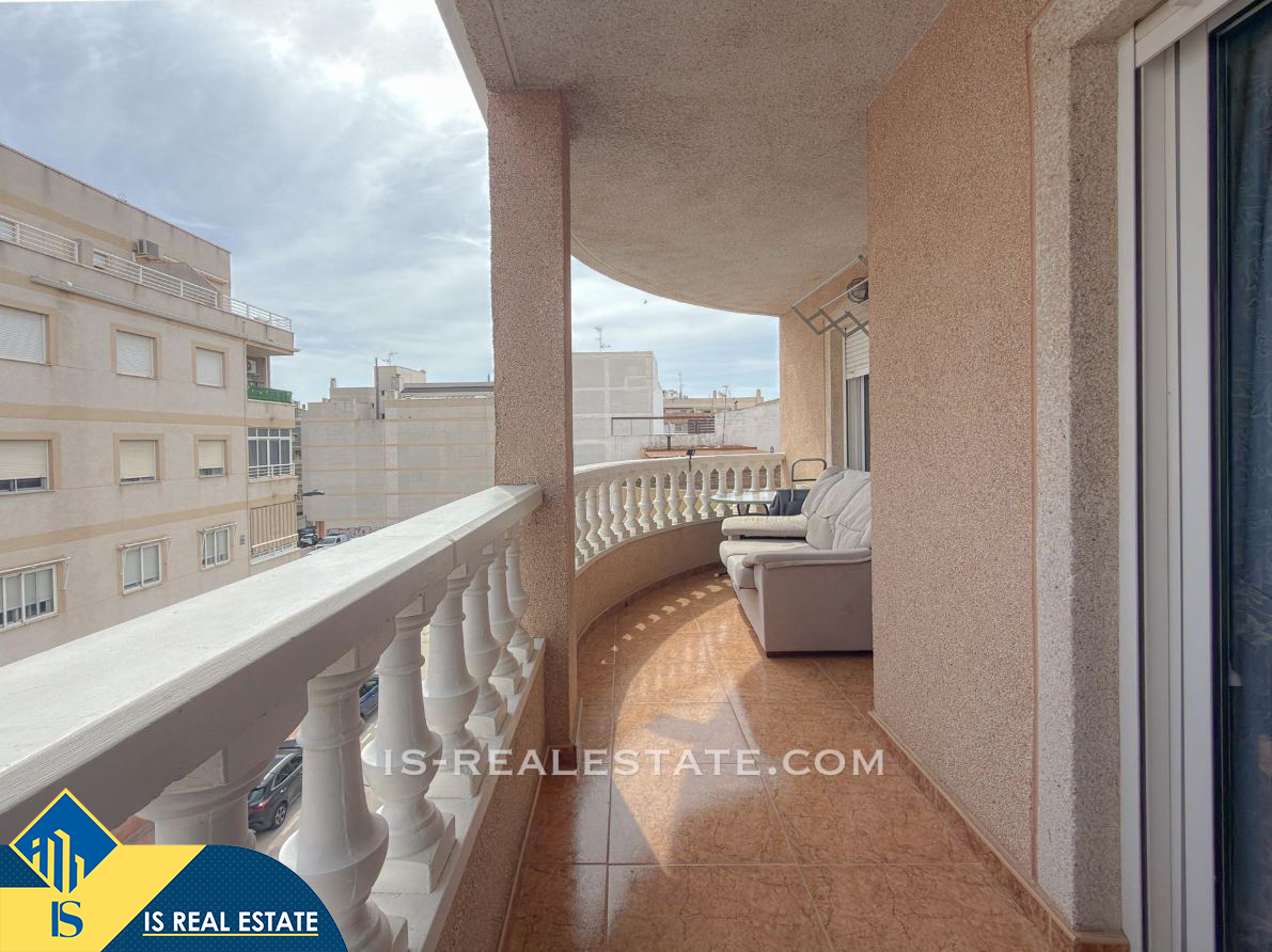 3-jų kambarių apartamentas su terasa, Ispanijoje, Alicante provincijoje, Torrevieja mieste, bendras plotas 65 m², 800 metrų iki jūros, 45 kilometrai iki Alicante oro uosto. Turtui priklauso terasa, liftas. Netoli turto yra parduotuvės, restoranai, vaistinės, autobusų stotelės, degalinės, žalios zonos, kavinės