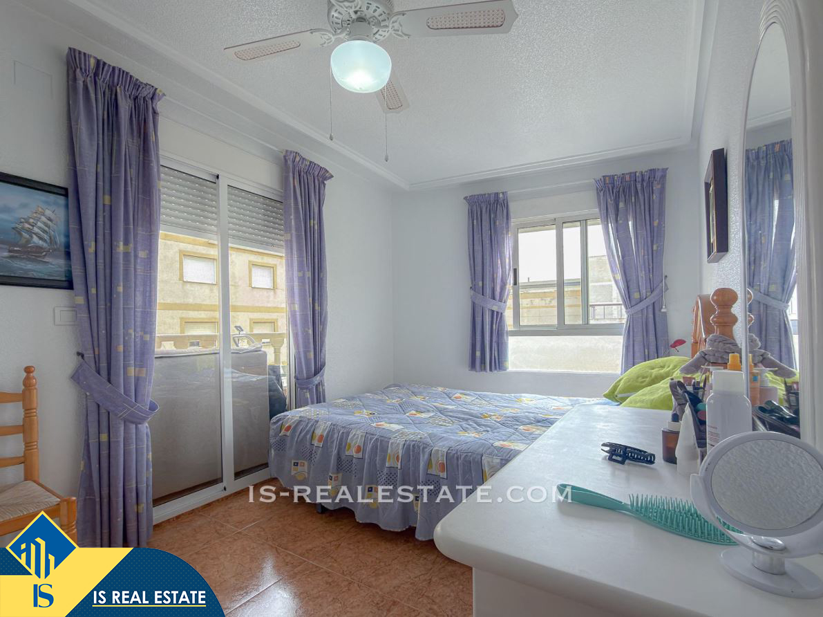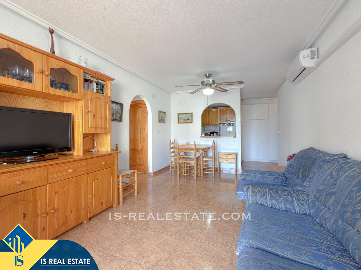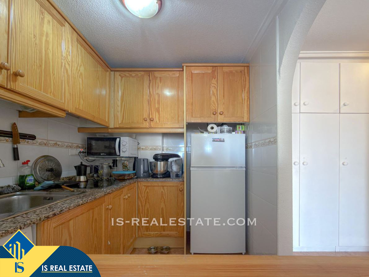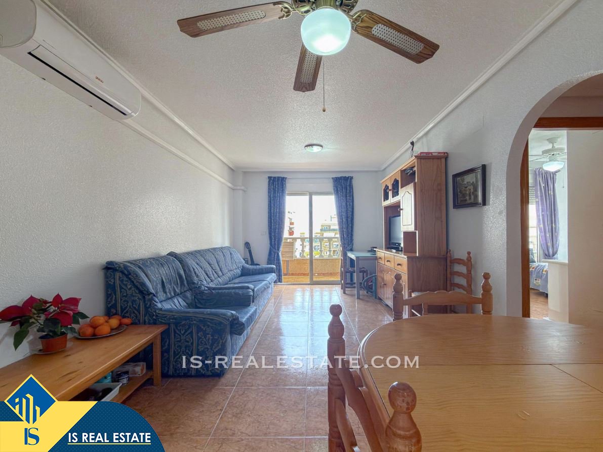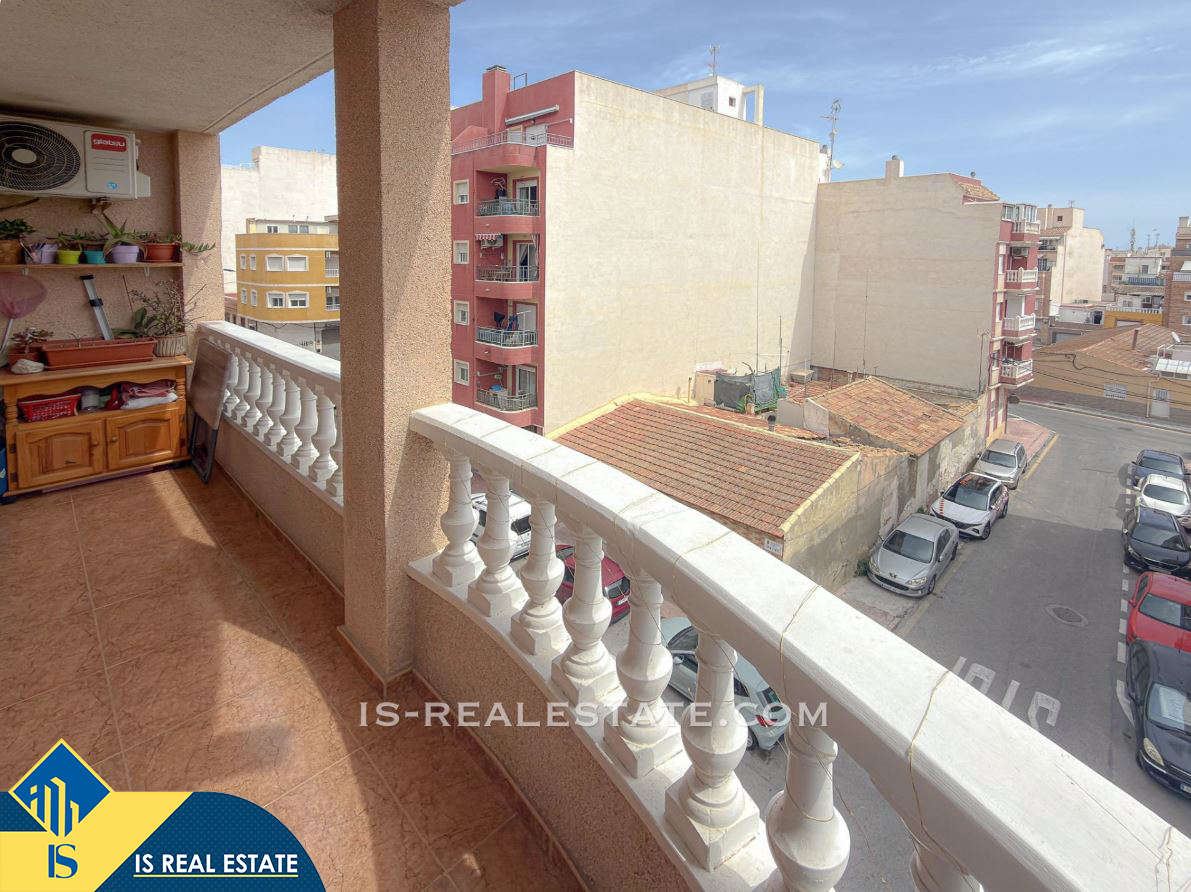 3-jų kambarių apartamentas su terasa, Ispanijoje, Alicante provincijoje, Torrevieja mieste, bendras plotas 65 m², 800 metrų iki jūros, 45 kilometrai iki Alicante oro uosto. Turtui priklauso terasa, liftas. Netoli turto yra parduotuvės, restoranai, vaistinės, autobusų stotelės, degalinės, žalios zonos, kavinės