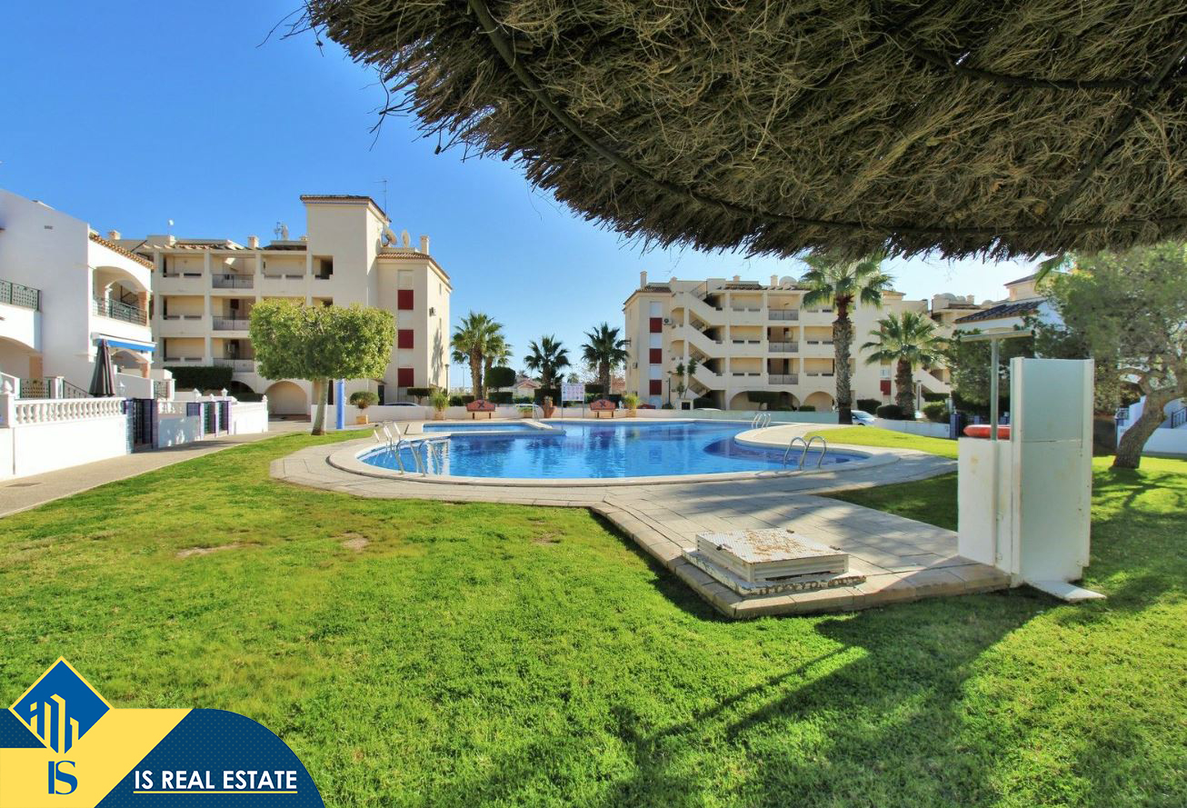 3-jų kambarių apartamentas su bendru baseinu, Ispanijoje, Alicante provincijoje, Orihuela Costa mieste, bendras plotas 89 m², 3 kilometrai iki jūros, 57 kilometrai iki Alicante oro uosto. Turtui priklauso bendras baseinas, terasa. Netoli turto yra parduotuvės, restoranai, vaistinės, autobusų stotelės, degalinės, žalios zonos, kavinės