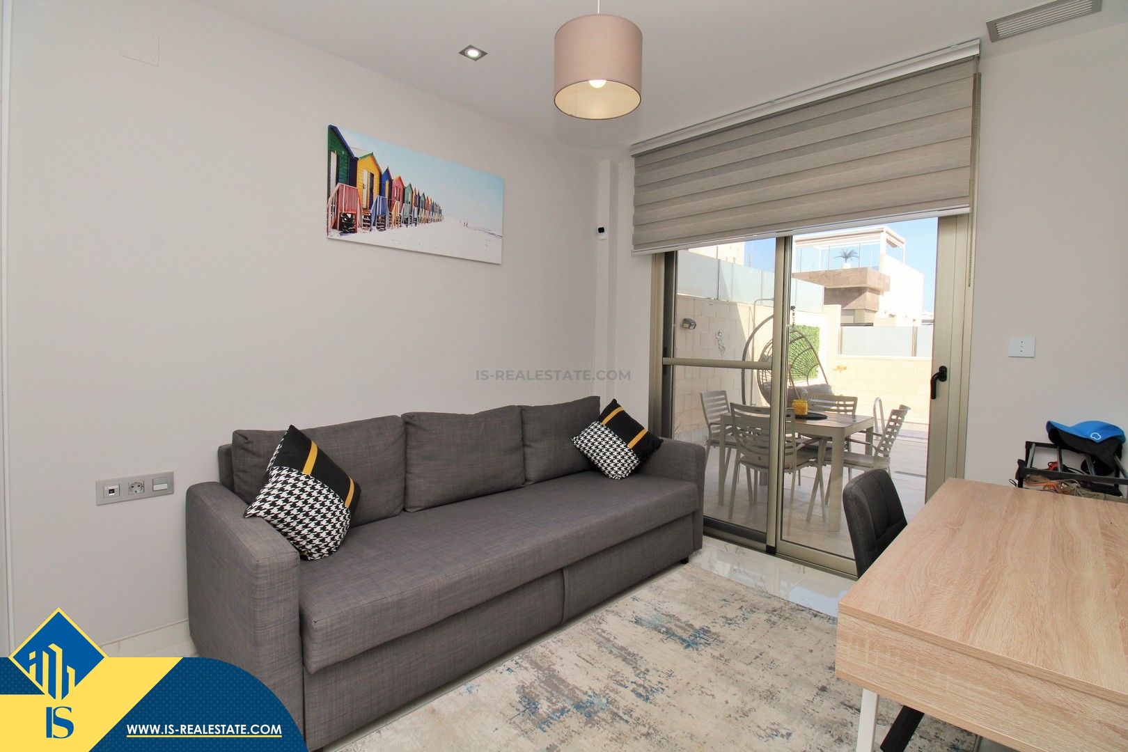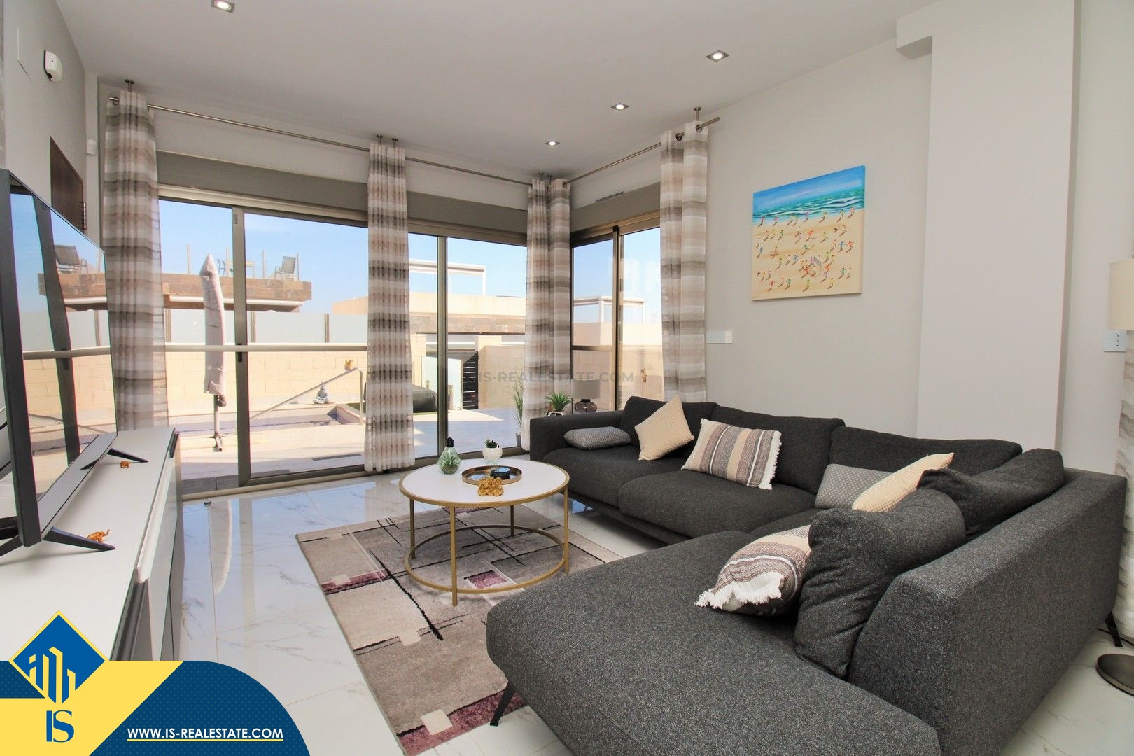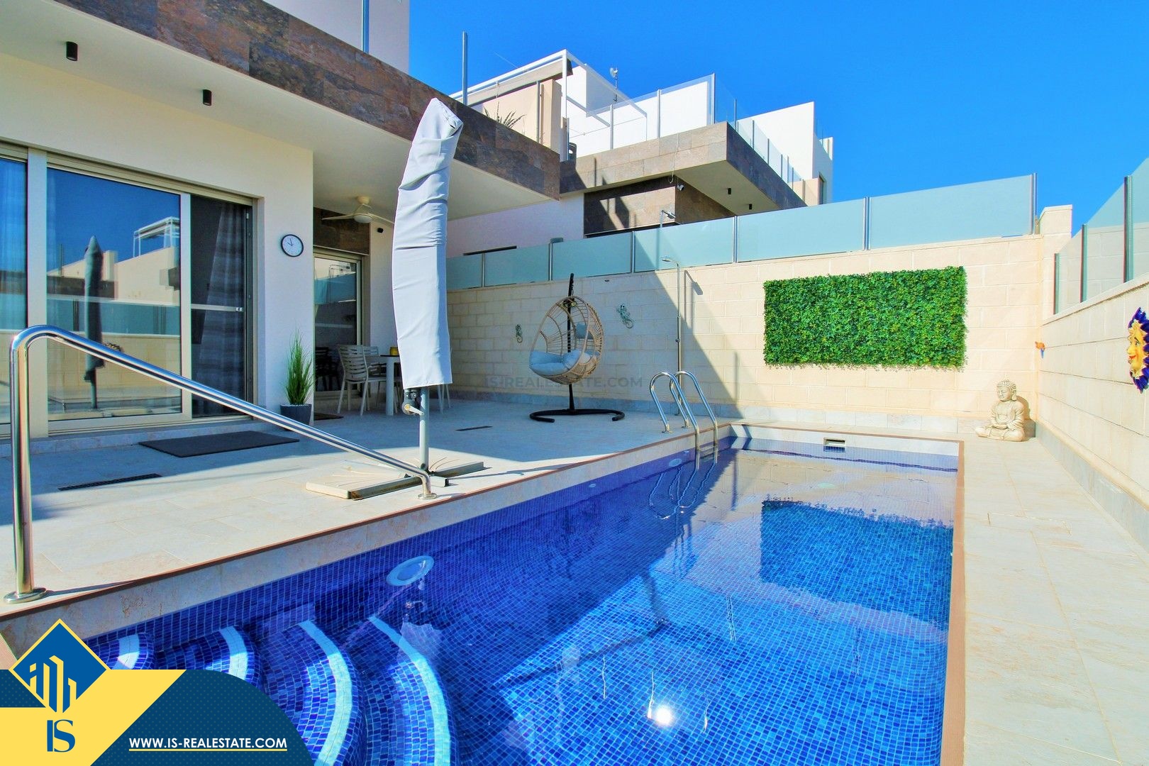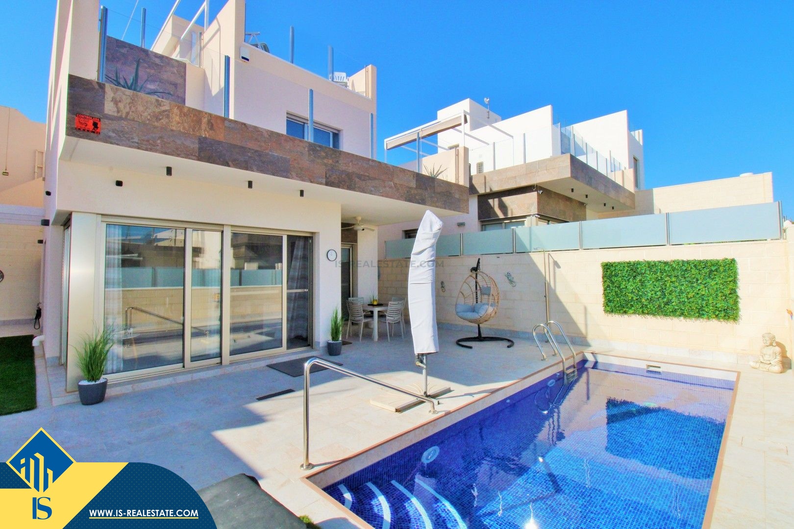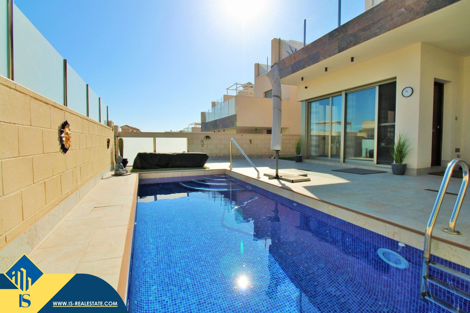 4-ių kambarių vila su privačiu baseinu, Ispanijoje, Alicante provincijoje, Orihuela Costa mieste, bendras plotas 115 m², 3 kilometrai iki jūros, 57 kilometrai iki Alicante oro uosto. Turtui priklauso privatus baseinas, terasa, vieta automobiliui, privatus kiemas, soliariumas. Netoli turto yra parduotuvės, restoranai, autobusų stotelės, vaikų zonos, degalinės, žalios zonos, kavinės, ligoninė