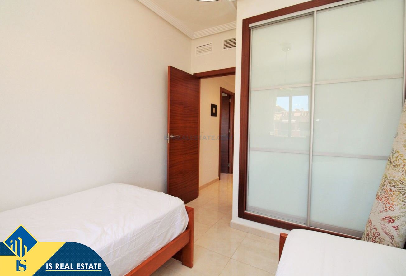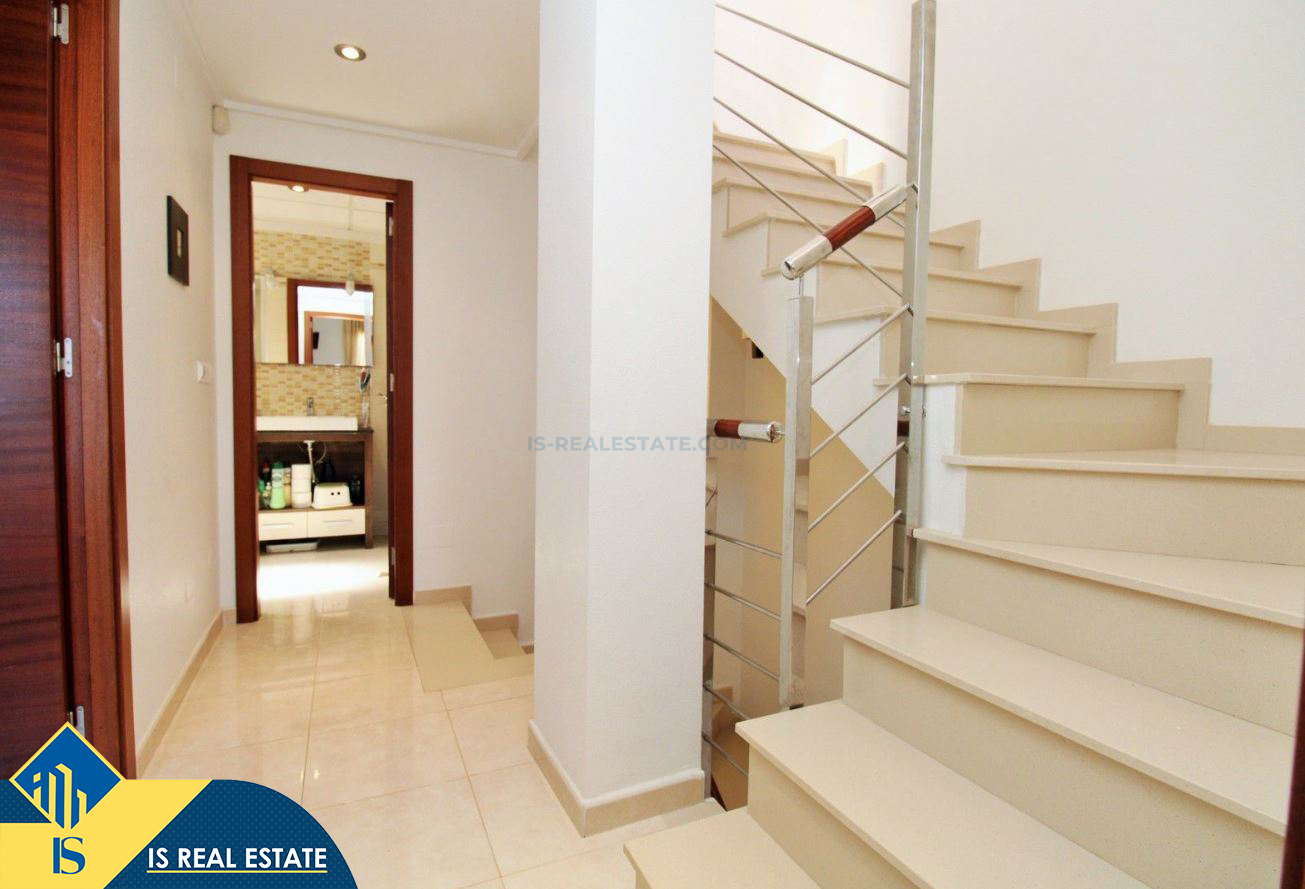 3-jų kambarių duplex apartamentas su bendru baseinu, Ispanijoje, Alicante provincijoje, Orihuela Costa mieste, bendras plotas 94 m², 350 metrų iki jūros, 57 kilometrai iki Alicante oro uosto. Turtui priklauso bendras baseinas, terasa, soliariumas, liftas, garažas. Netoli turto yra parduotuvės, restoranai, autobusų stotelės, vaikų zonos, degalinės, žalios zonos, kavinės, ligoninė