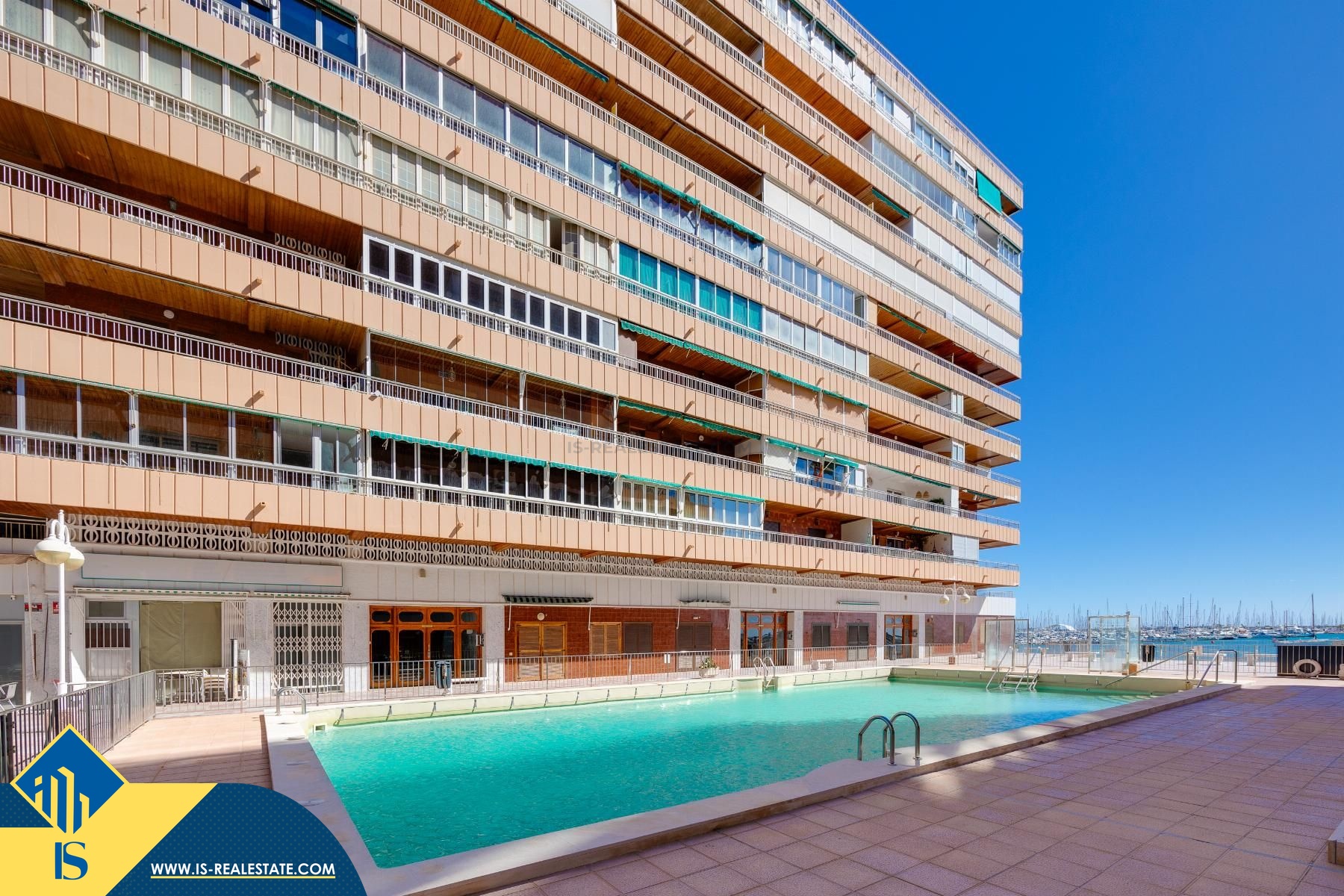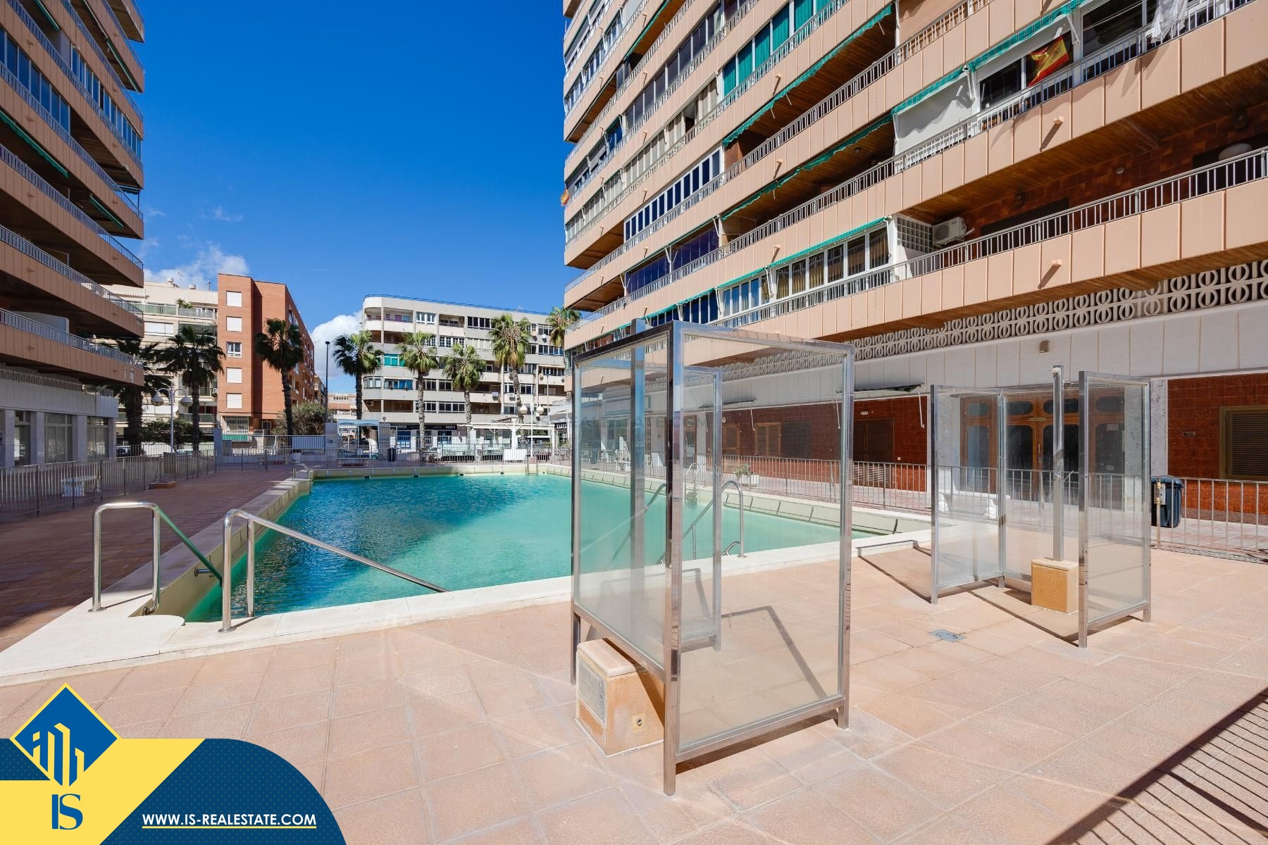 4-ių kambarių apartamentas su bendru baseinu, Ispanijoje, Alicante provincijoje, Torrevieja mieste, Playa del Acequión rajone, bendras plotas 100 m², 100 metrų iki jūros, 45 kilometrai iki Alicante oro uosto. Turtui priklauso bendras baseinas, terasa, liftas. Netoli turto yra parduotuvės, restoranai, vaistinės, autobusų stotelės, degalinės, žalios zonos, kavinės