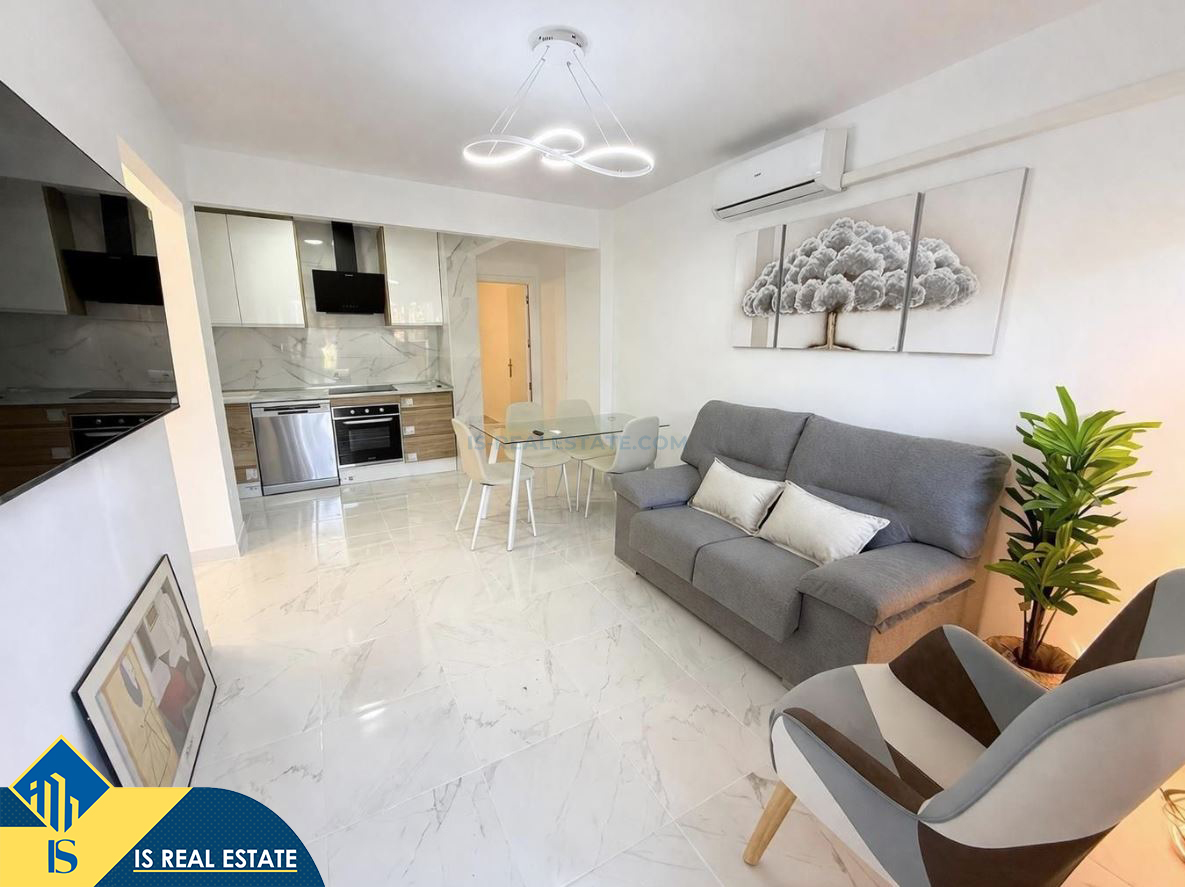 3-jų kambarių renovuotas apartamentas su bendru baseinu, Ispanijoje, Alicante provincijoje, Torrevieja mieste, bendras plotas 52 m², 700 metrų iki jūros, 45 kilometrai iki Alicante oro uosto. Turtui priklauso bendras baseinas, terasa, liftas. Netoli turto yra parduotuvės, restoranai, vaistinės, autobusų stotelės, degalinės, žalios zonos, kavinės