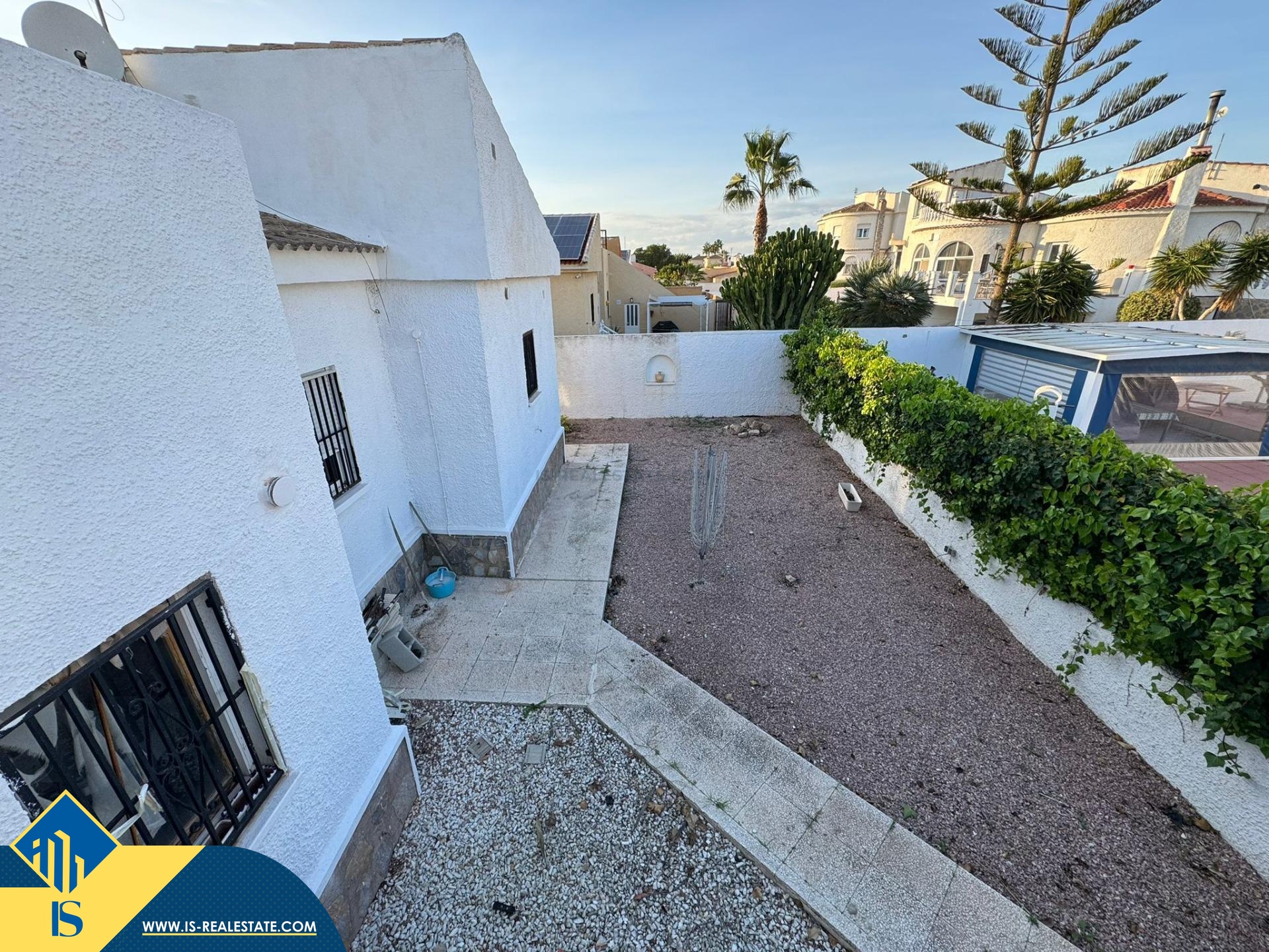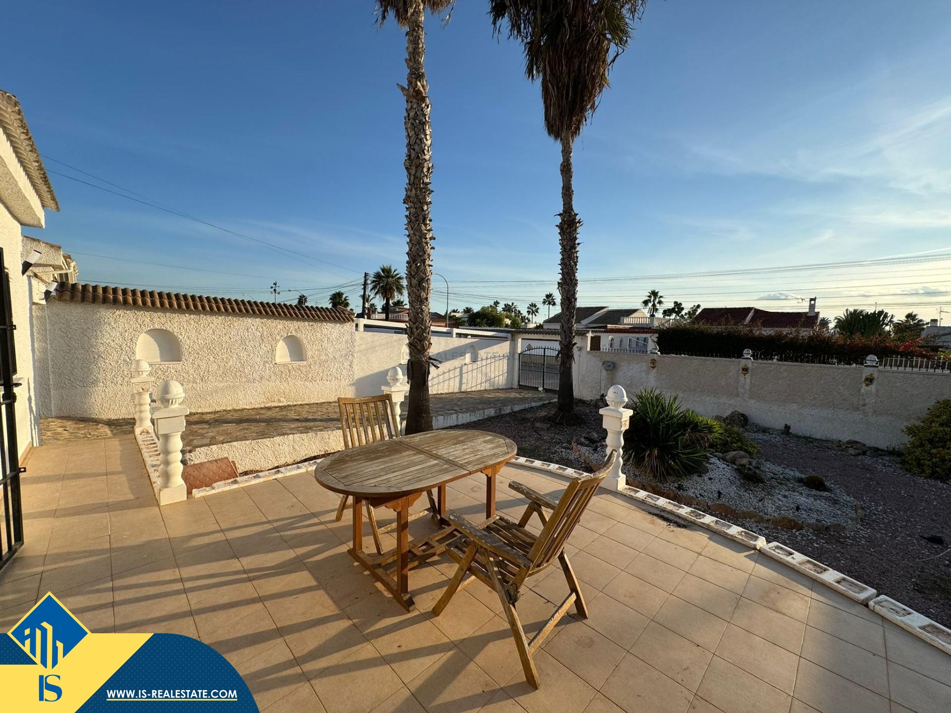 3-jų kambarių vila su terasa, Ispanijoje, Alicante provincijoje, Torrevieja mieste, El Chaparral rajone, bendras plotas 96 m², 4 kilometrai iki paplūdimio, 45 kilometrai iki Alicante miesto oro uosto. Turtui priklauso privatus kiemas, terasa, vieta automobiliui. Netoli turto yra parduotuvės, restoranai, autobusų stotelės, vaikų zonos, degalinės, žalios zonos, kavinės, vaistinės