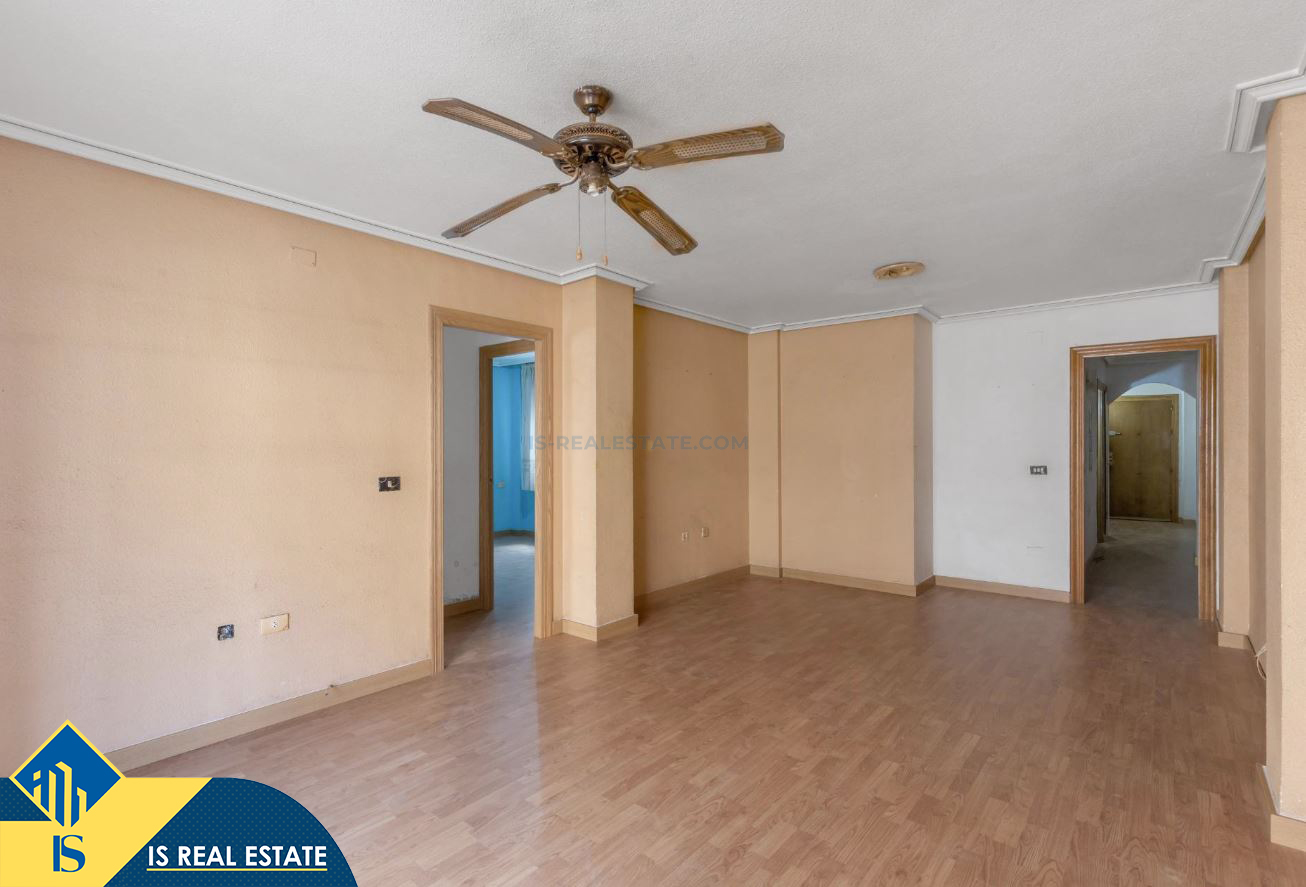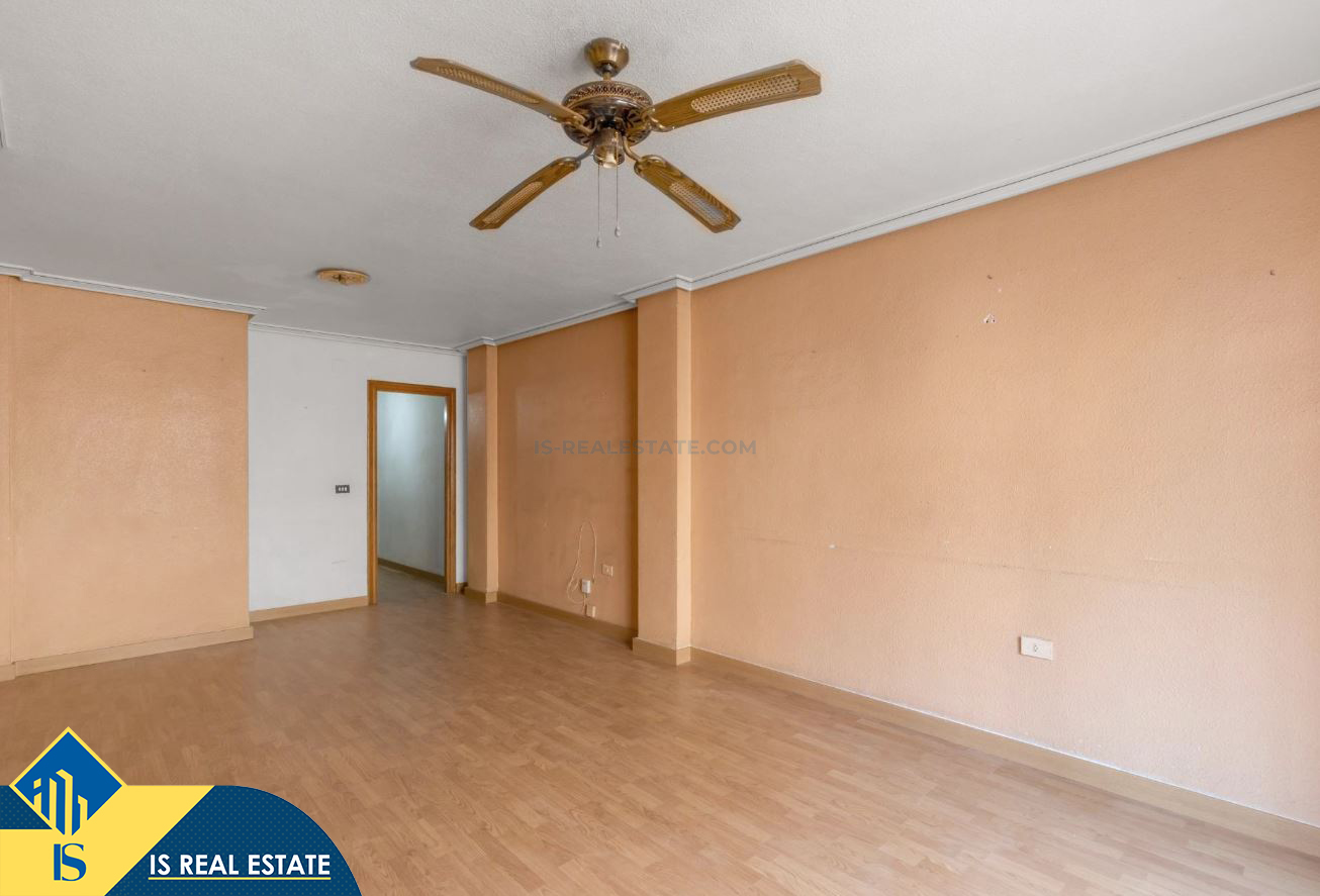 4-ių kambarių apartamentas su terasa, Ispanijoje, Alicante provincijoje, Torrevieja mieste, bendras plotas 95 m², 500 metrų iki jūros, 45 kilometrai iki Alicante oro uosto. Turtui priklauso terasa, liftas, kiemelis. Netoli turto yra parduotuvės, restoranai, vaistinės, autobusų stotelės, degalinės, žalios zonos, kavinės