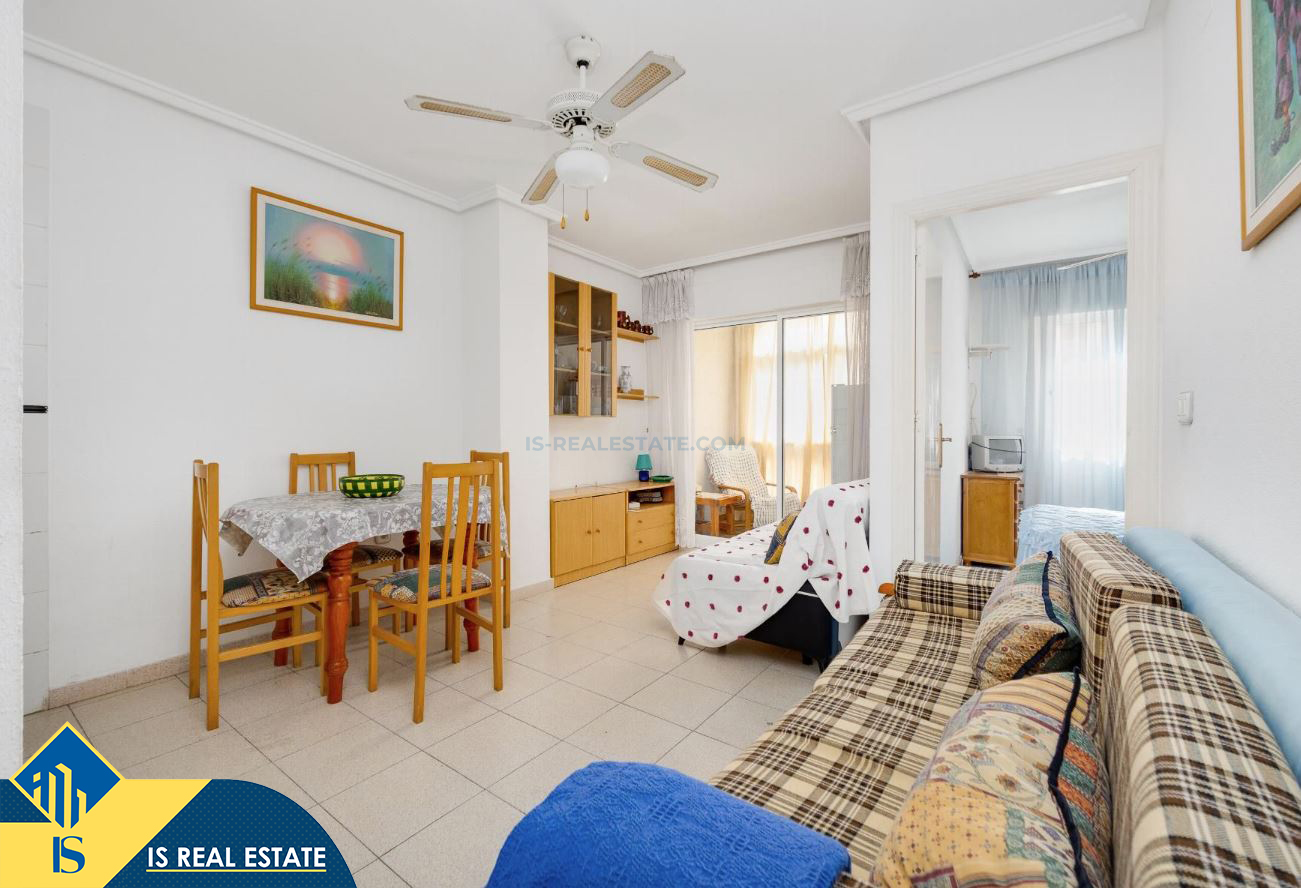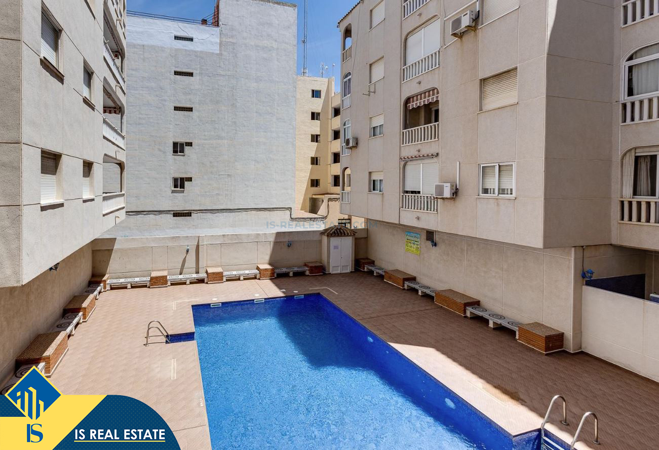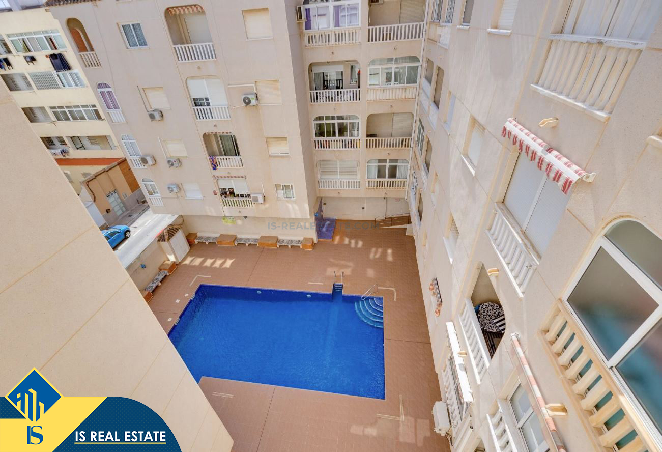 2-jų kambarių apartamentas su bendru baseinu, Ispanijoje, Alicante provincijoje, Torrevieja mieste, Playa del Acequión rajone, bendras plotas 50 m², 250 metrų iki jūros, 45 kilometrai iki Alicante oro uosto. Turtui priklauso bendras baseinas, terasa, liftas, sandėliukas. Netoli turto yra parduotuvės, restoranai, vaistinės, autobusų stotelės, degalinės, žalios zonos, kavinės
