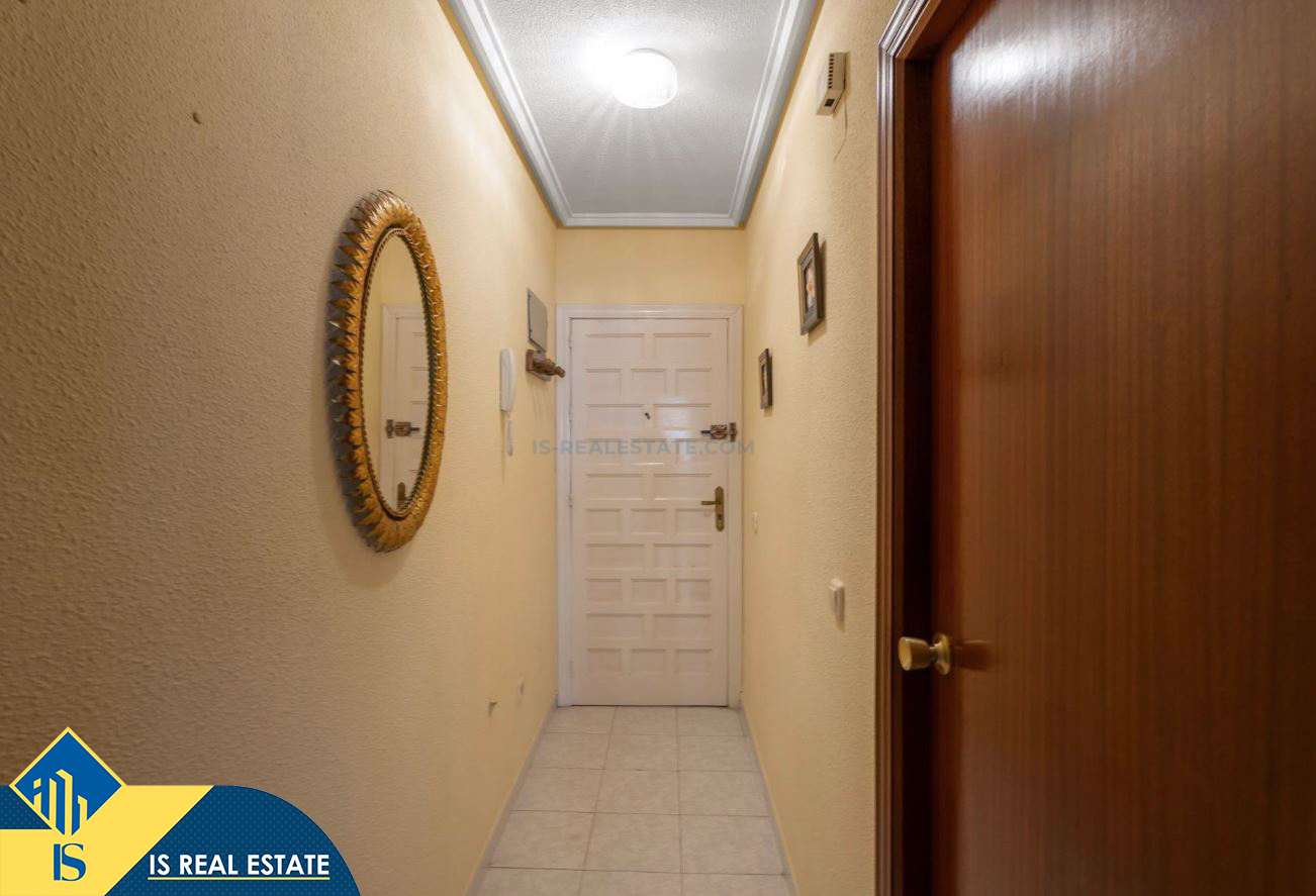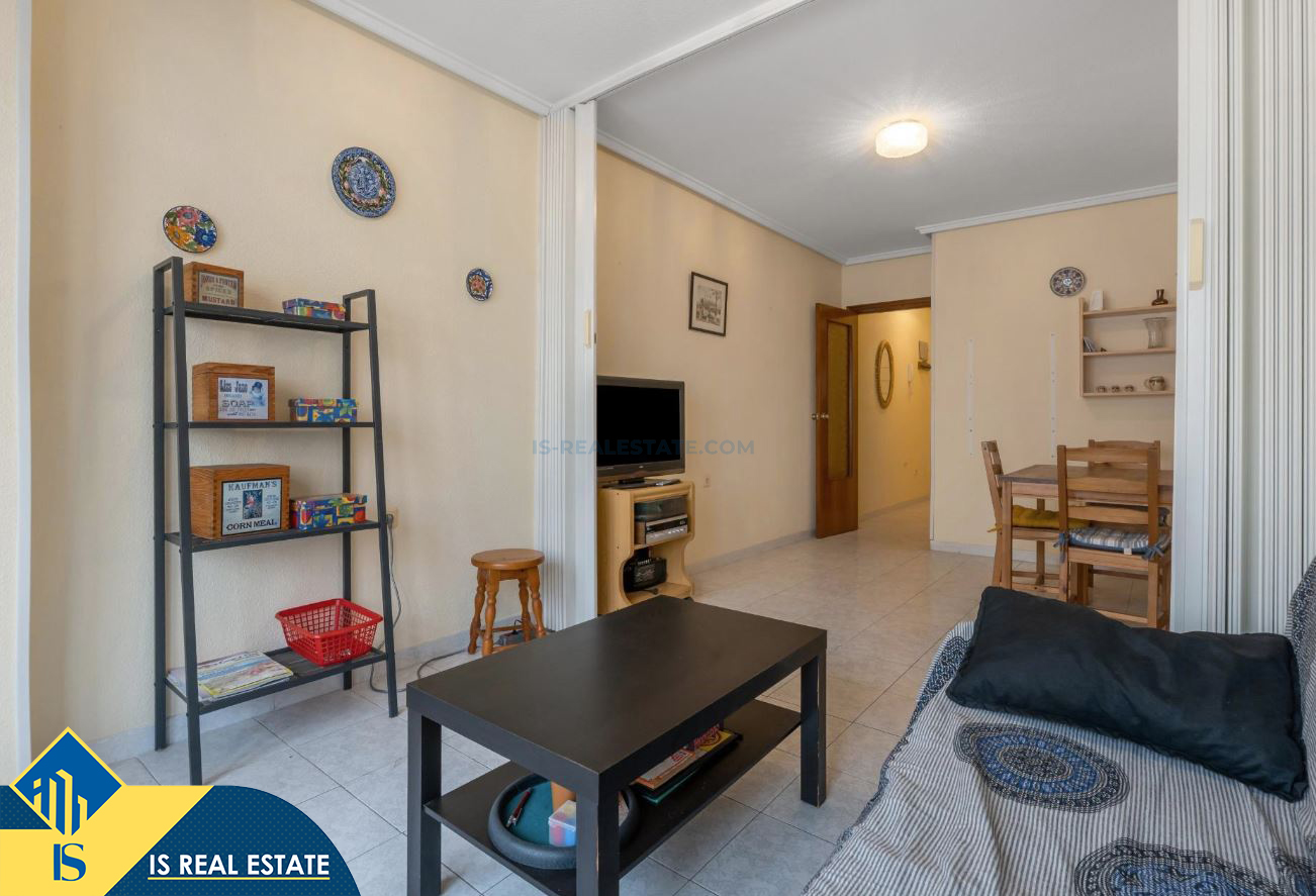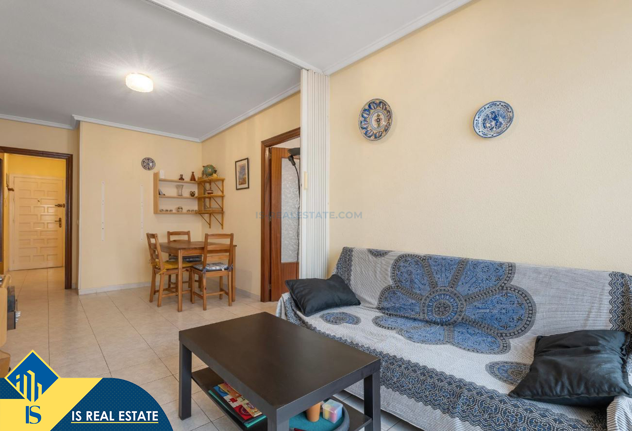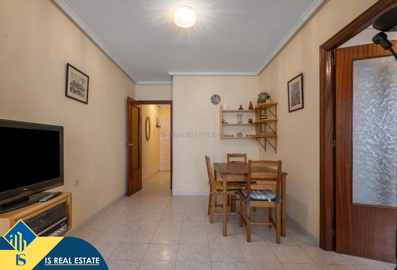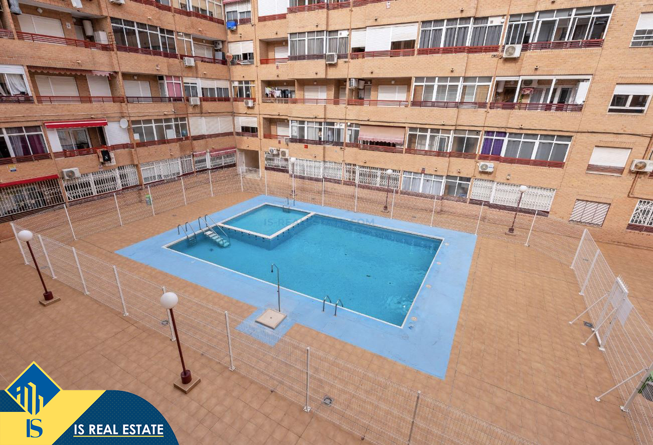 2-jų kambarių apartamentas su bendru baseinu, Ispanijoje, Alicante provincijoje, Torrevieja mieste, bendras plotas 60 m², 1.5 kilometro iki jūros, 45 kilometrai iki Alicante oro uosto. Turtui priklauso bendras baseinas, terasa, liftas. Netoli turto yra parduotuvės, restoranai, vaistinės, autobusų stotelės, degalinės, žalios zonos, kavinės