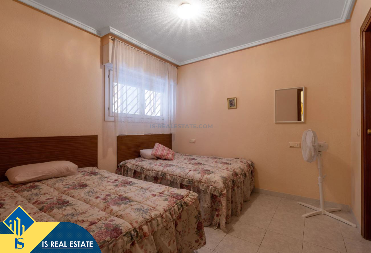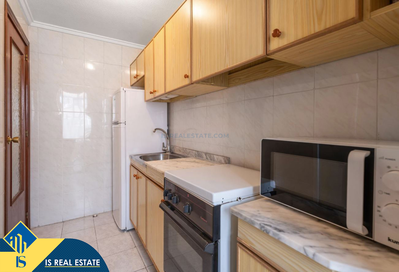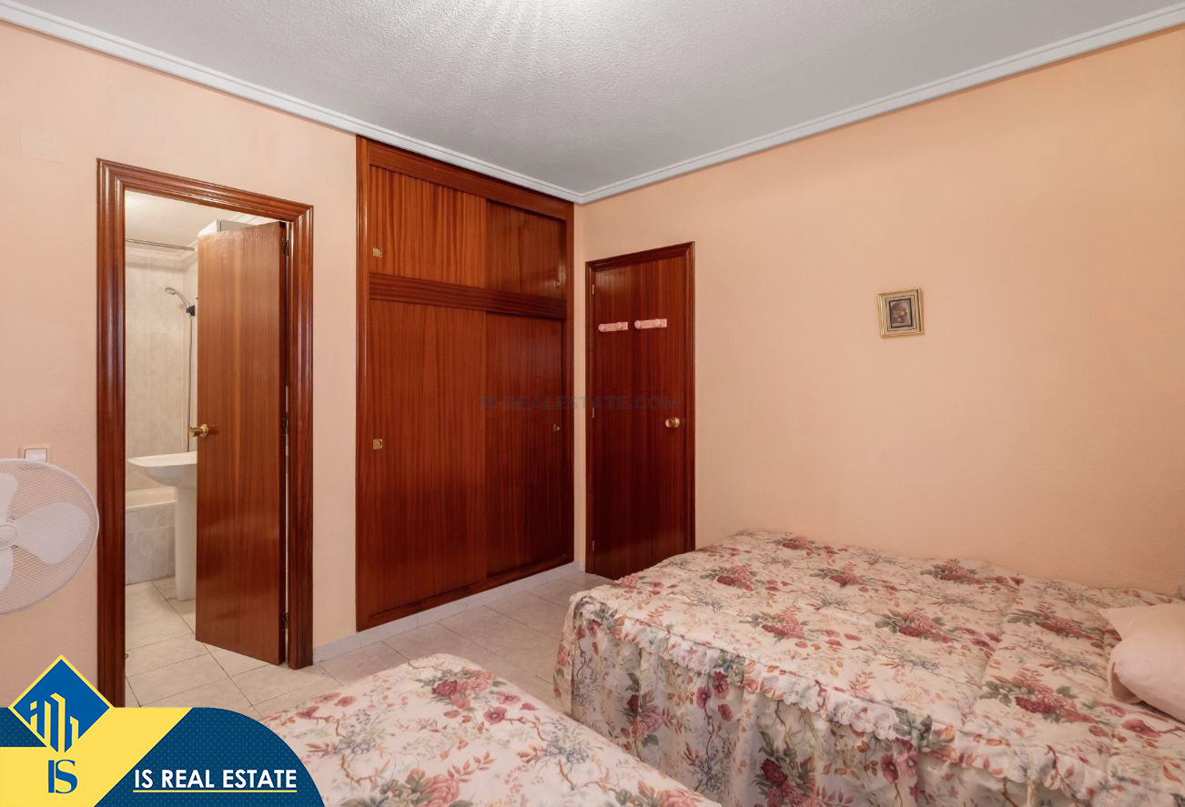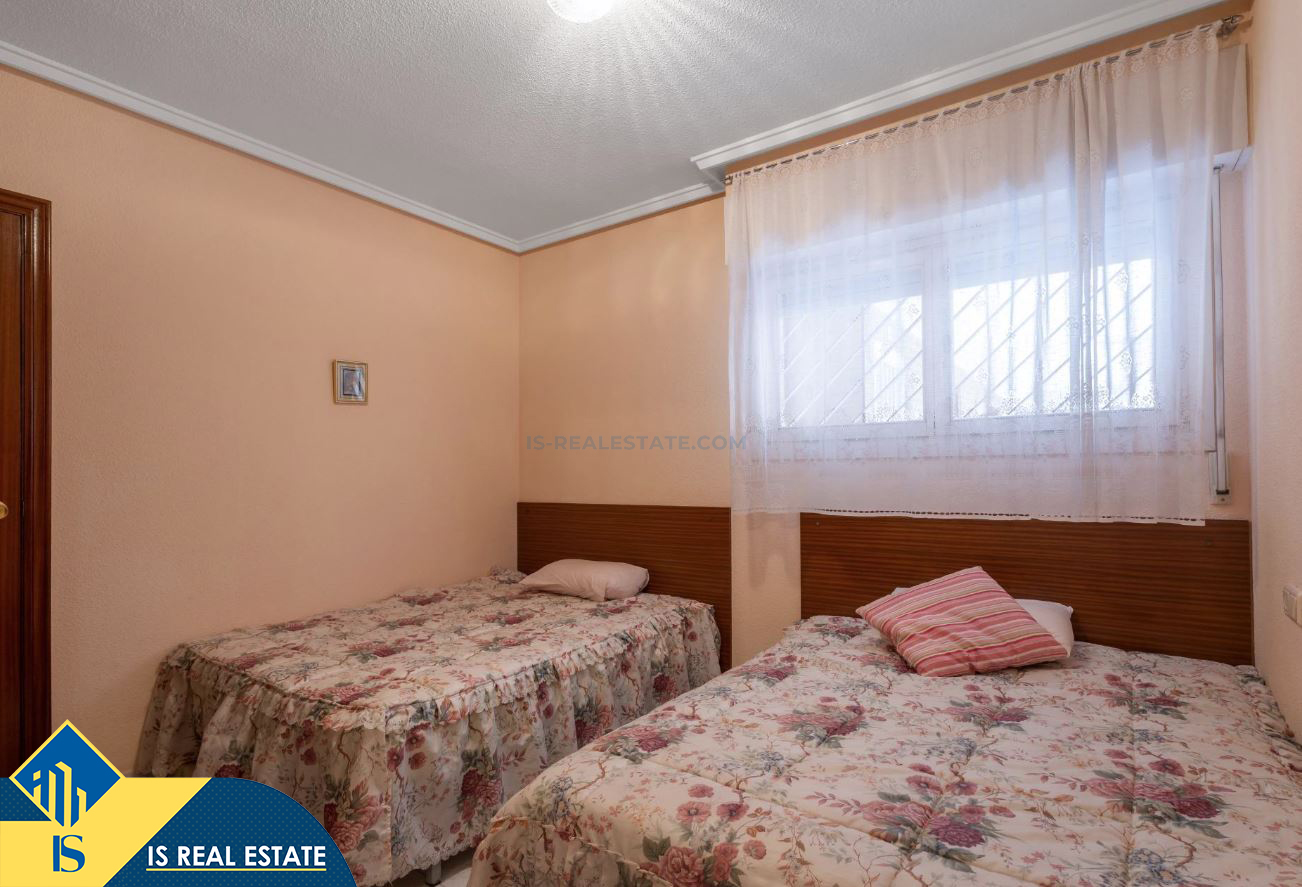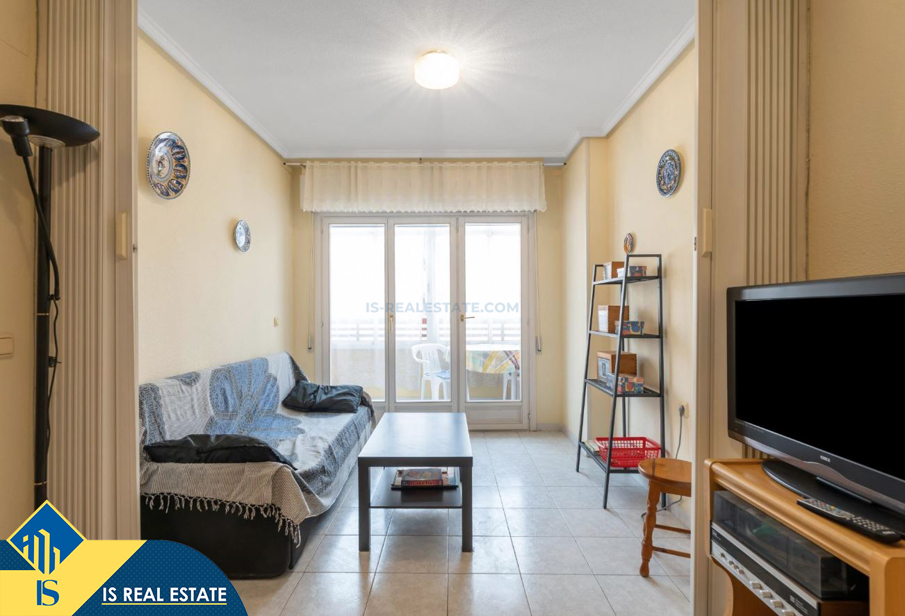 2-jų kambarių apartamentas su bendru baseinu, Ispanijoje, Alicante provincijoje, Torrevieja mieste, bendras plotas 60 m², 1.5 kilometro iki jūros, 45 kilometrai iki Alicante oro uosto. Turtui priklauso bendras baseinas, terasa, liftas. Netoli turto yra parduotuvės, restoranai, vaistinės, autobusų stotelės, degalinės, žalios zonos, kavinės