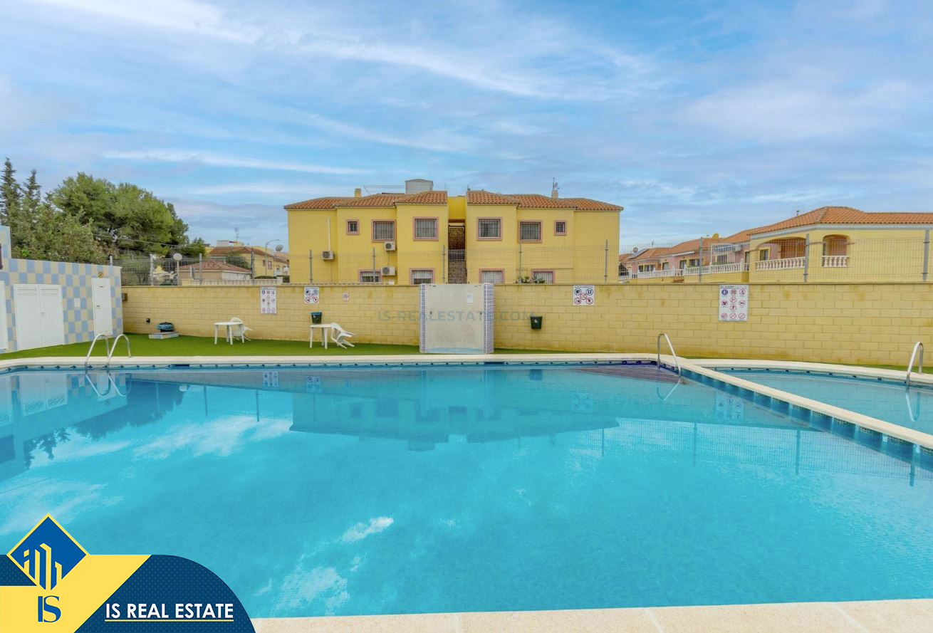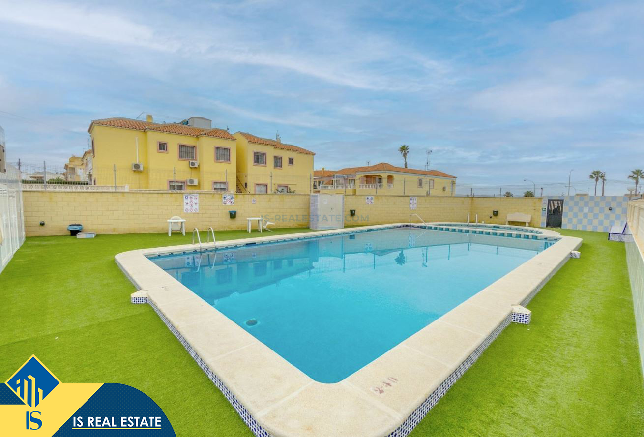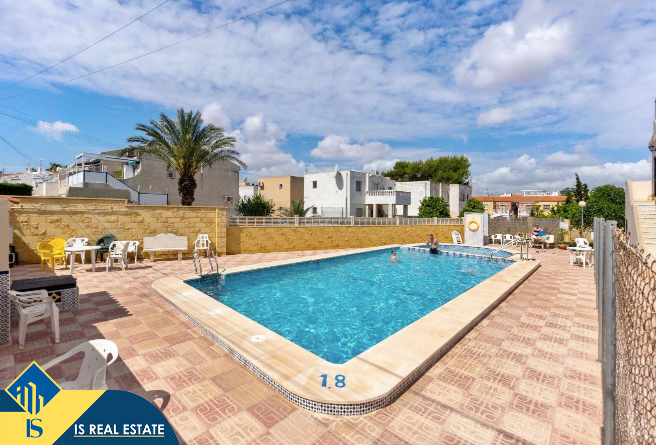 2-jų kambarių bungalas su bendru baseinu, Ispanijoje, Alicante provincijoje, Torrevieja mieste, El Chaparral rajone, bendras plotas 36 m², 3.5 kilometro iki jūros, 45 kilometrai iki Alicante oro uosto. Turtui priklauso bendras baseinas, terasa. Netoli turto yra parduotuvės, restoranai, autobusų stotelės, vaikų zonos, degalinės, žalios zonos, kavinės, vaistinės
