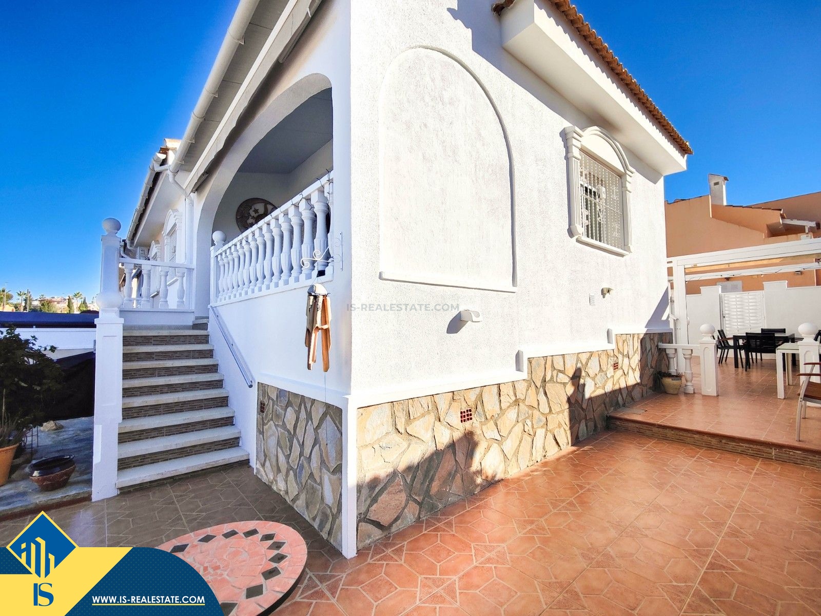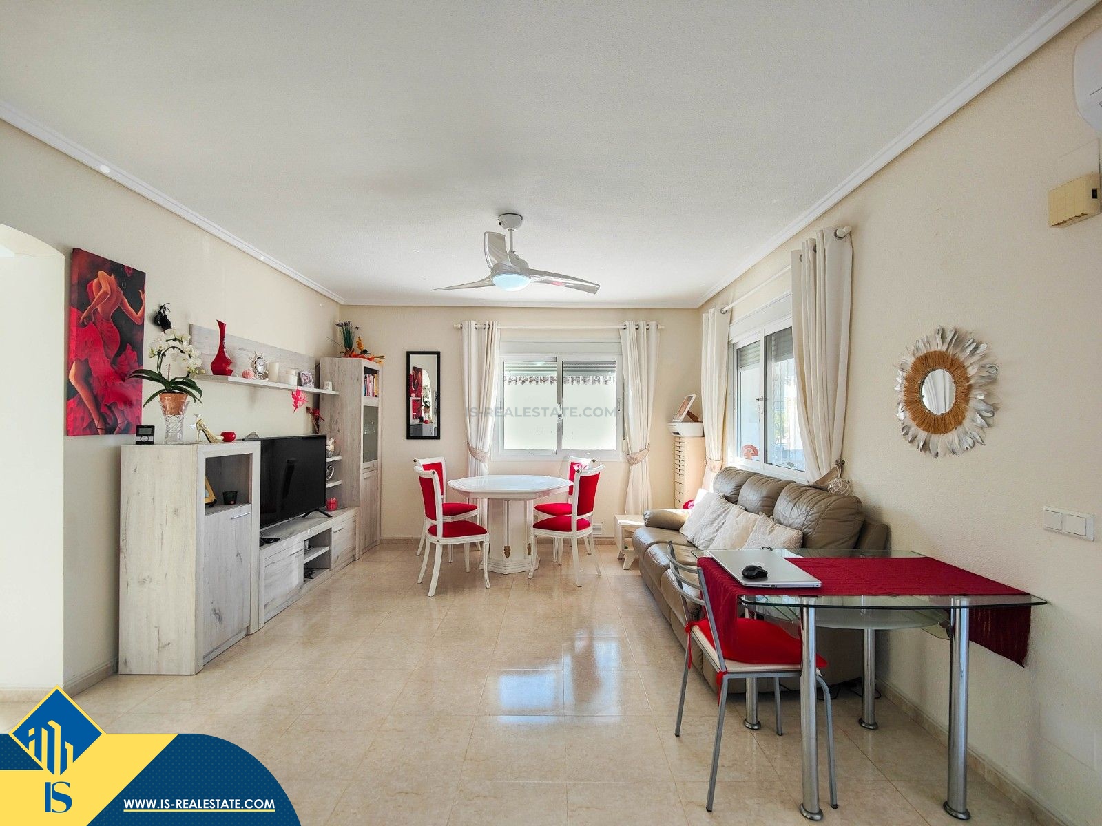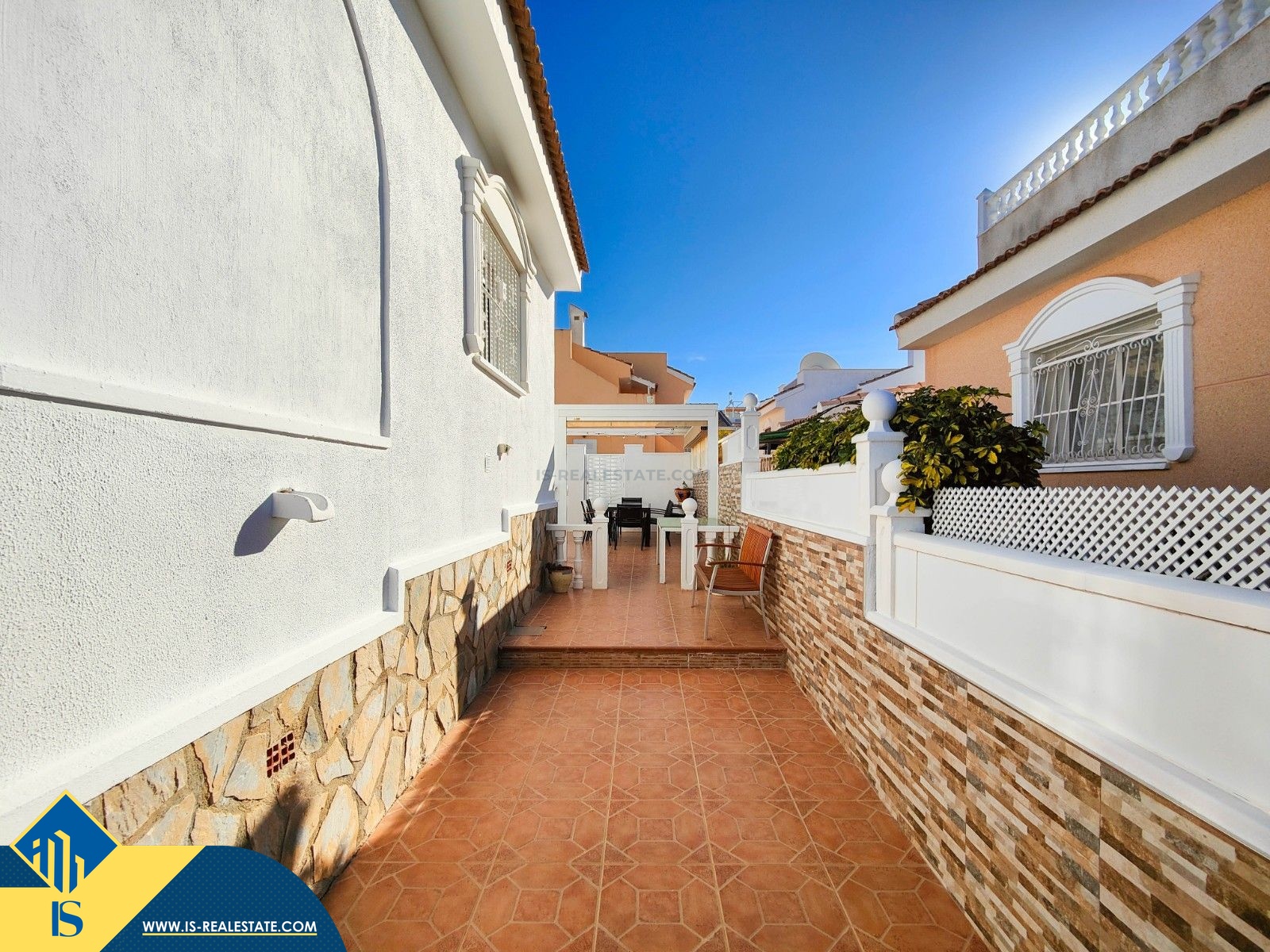 3-jų kambarių vila su bendru baseinu, Ispanijoje, Alicante provincijoje, Rojales, Ciudad Quesada mieste, bendras plotas 75 m², 4 kilometrai iki jūros, 44 kilometrai iki Alicante miesto oro uosto. Turtui priklauso bendras baseinas, terasa, kiemas, vieta automobiliui. Netoli turto yra parduotuvės, restoranai, autobusų stotelės, vaikų zonos, degalinės, žalios zonos, kavinės, vaistinės