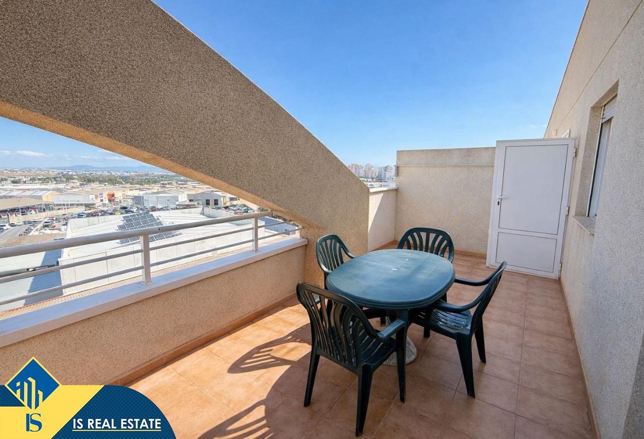 3-jų kambarių penthouse apartamentas su bendru baseinu, Ispanijoje, Alicante provincijoje, Torrevieja mieste, bendras plotas 53 m², 1 kilometras iki jūros, 45 kilometrai iki Alicante oro uosto. Turtui priklauso bendras baseinas, terasa, liftas, garažas. Netoli turto yra parduotuvės, restoranai, vaistinės, autobusų stotelės, degalinės, žalios zonos, kavinės