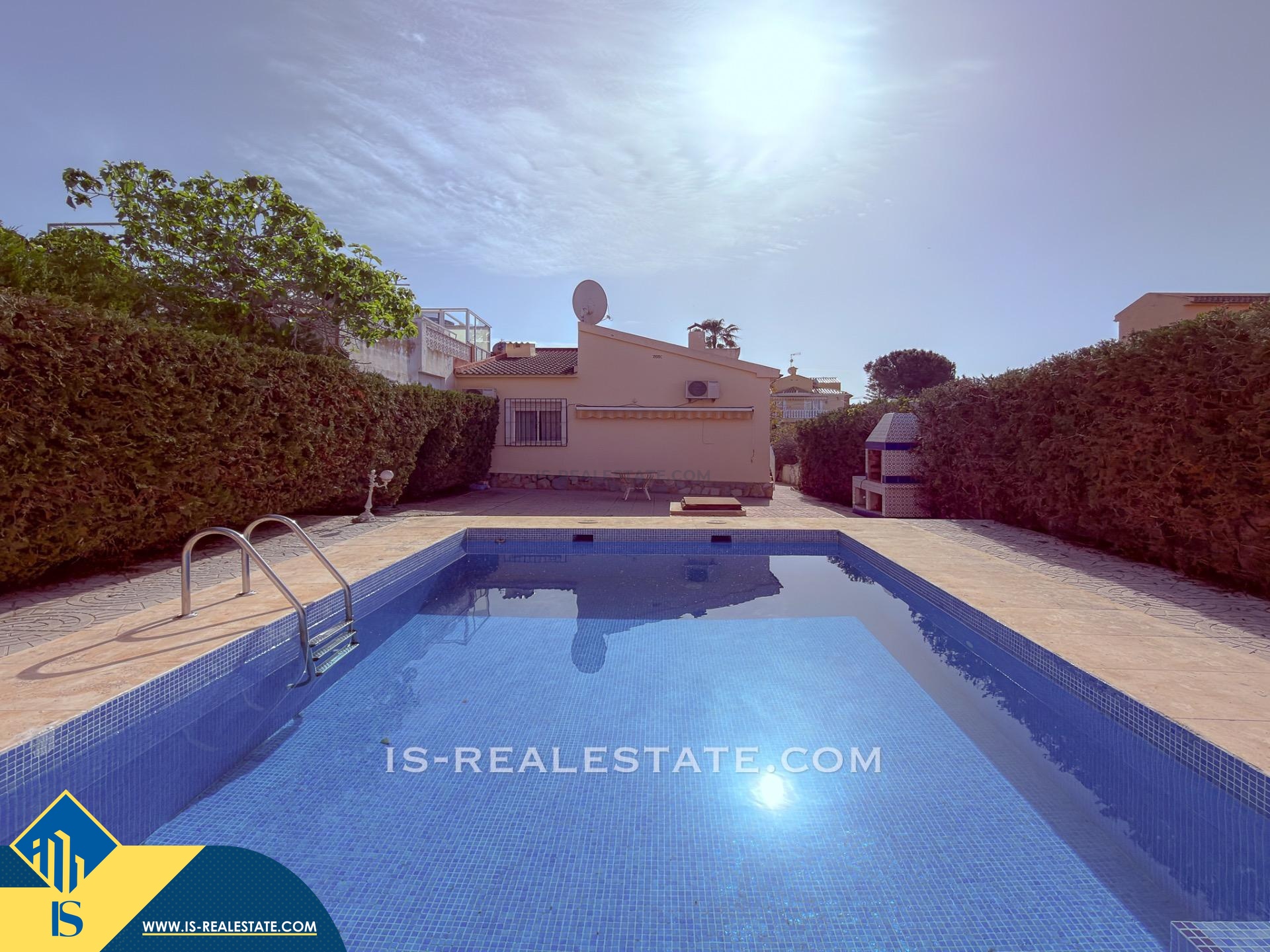 3-jų kambarių vila su privačiu baseinu, Ispanijoje, Alicante provincijoje, Torrevieja mieste, Playa de los Locos rajone, bendras plotas 113 m², 1 kilometras iki paplūdimio, 45 kilometrai iki Alicante miesto oro uosto. Turtui priklauso vieta automobiliui, privatus baseinas, terasa. Netoli turto yra parduotuvės, restoranai, autobusų stotelės, vaikų zonos, degalinės, žalios zonos, kavinės, vaistinės