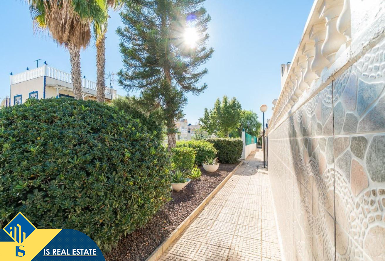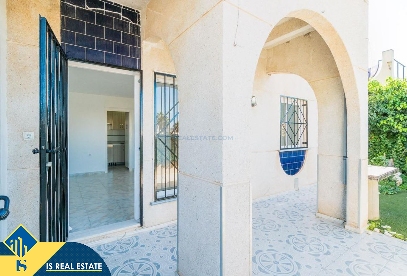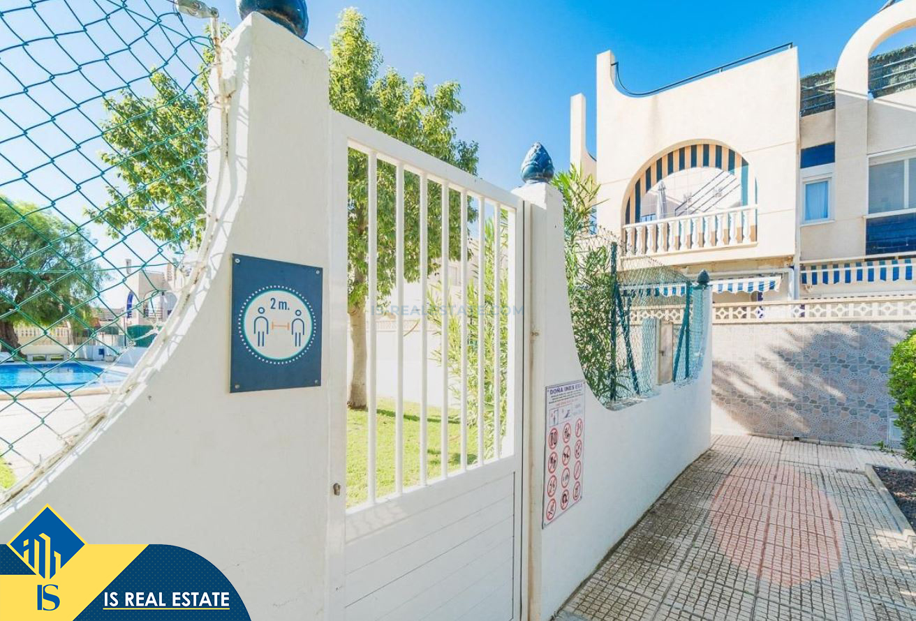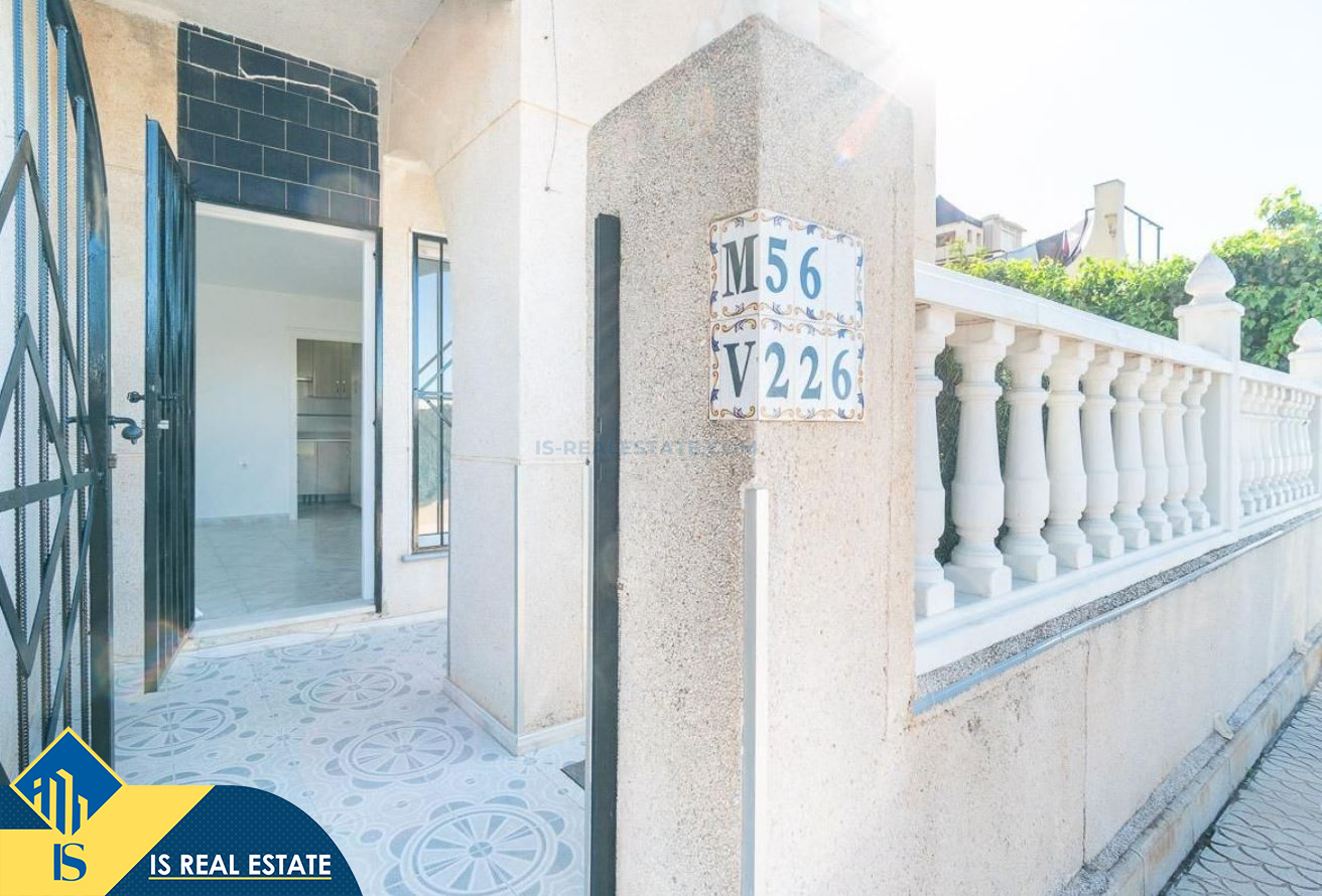 3-jų kambarių namas su terasa, Ispanijoje, Alicante provincijoje, Torrevieja mieste, bendras plotas 55 m², 2.5 kilometro iki jūros, 45 kilometrai iki Alicante oro uosto. Turtui priklauso terasa, privatus kiemas. Netoli turto yra parduotuvės, restoranai, autobusų stotelės, vaikų zonos, degalinės, žalios zonos, kavinės, vaistinės