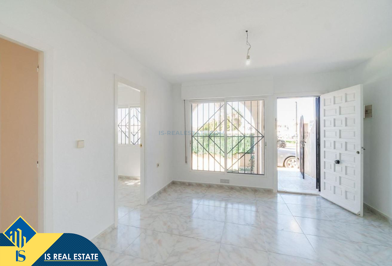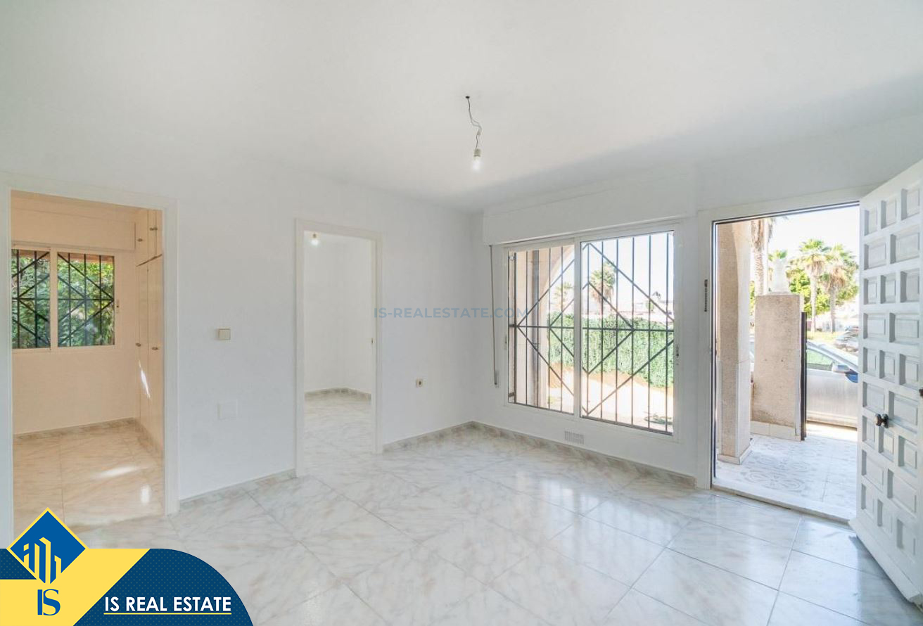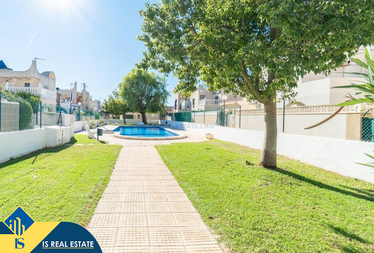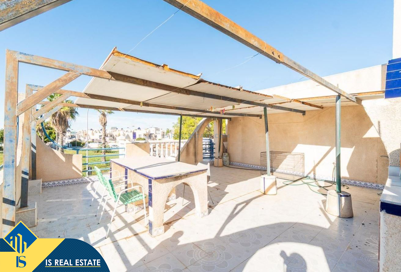 3-jų kambarių namas su terasa, Ispanijoje, Alicante provincijoje, Torrevieja mieste, bendras plotas 55 m², 2.5 kilometro iki jūros, 45 kilometrai iki Alicante oro uosto. Turtui priklauso terasa, privatus kiemas. Netoli turto yra parduotuvės, restoranai, autobusų stotelės, vaikų zonos, degalinės, žalios zonos, kavinės, vaistinės