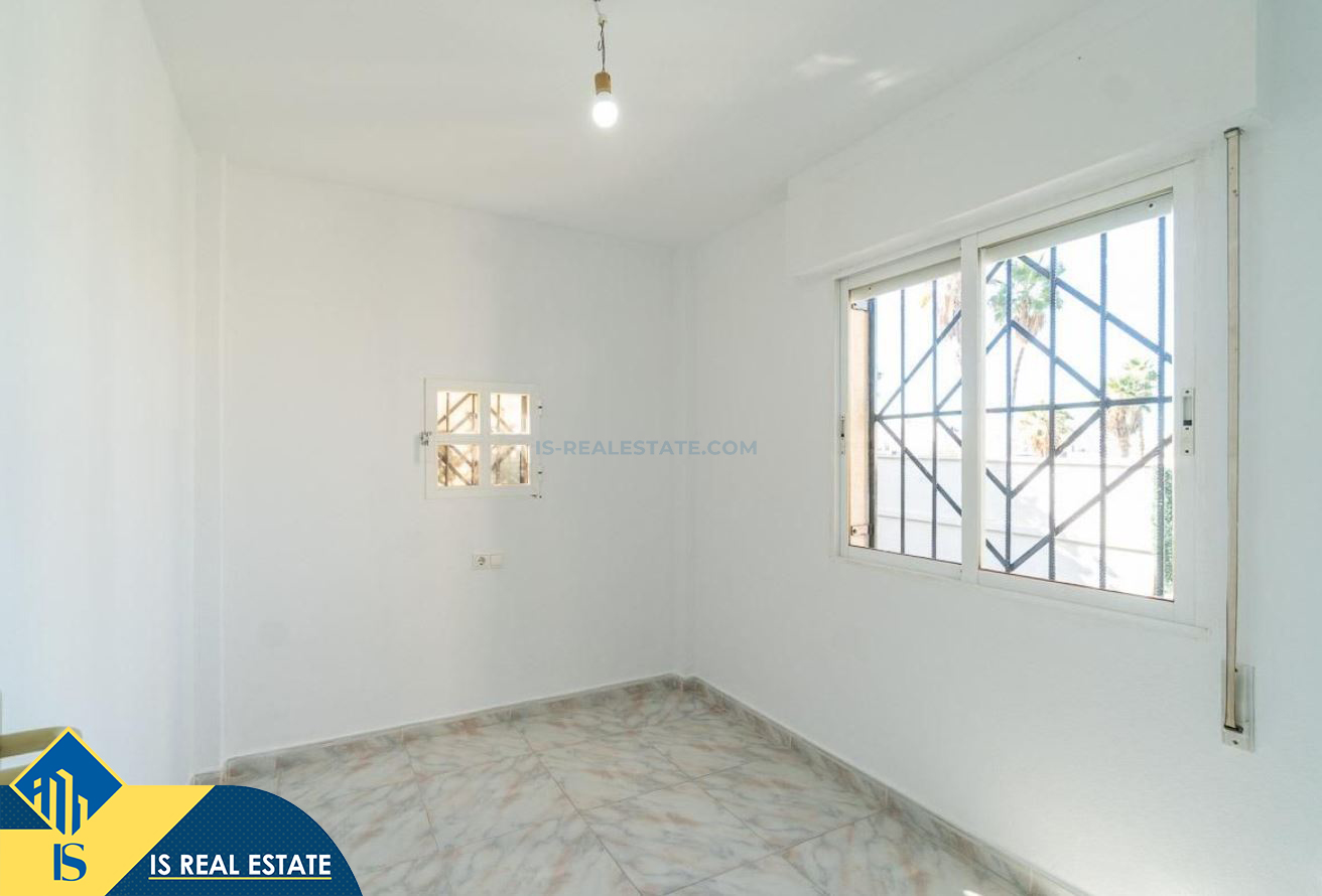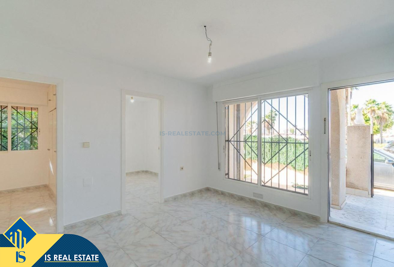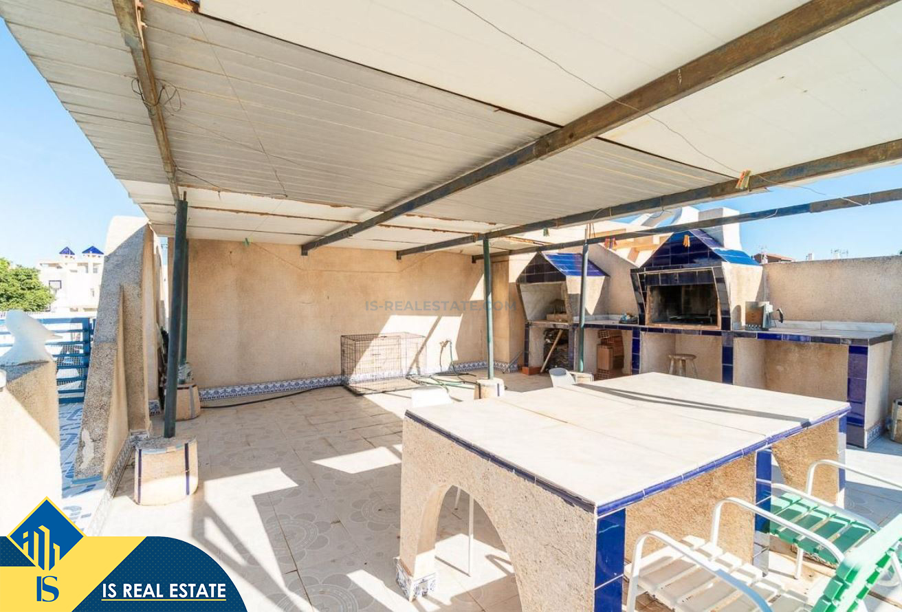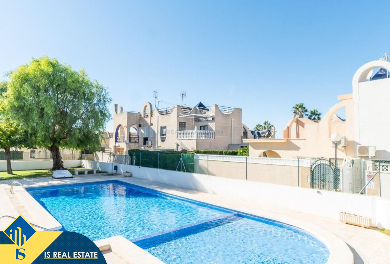 3-jų kambarių namas su terasa, Ispanijoje, Alicante provincijoje, Torrevieja mieste, bendras plotas 55 m², 2.5 kilometro iki jūros, 45 kilometrai iki Alicante oro uosto. Turtui priklauso terasa, privatus kiemas. Netoli turto yra parduotuvės, restoranai, autobusų stotelės, vaikų zonos, degalinės, žalios zonos, kavinės, vaistinės
