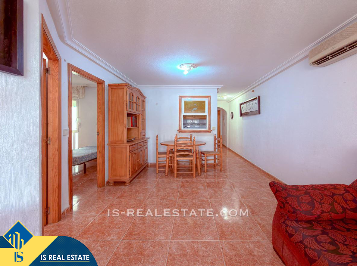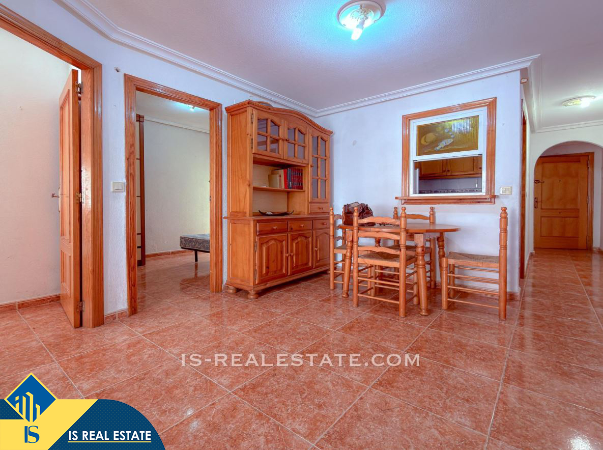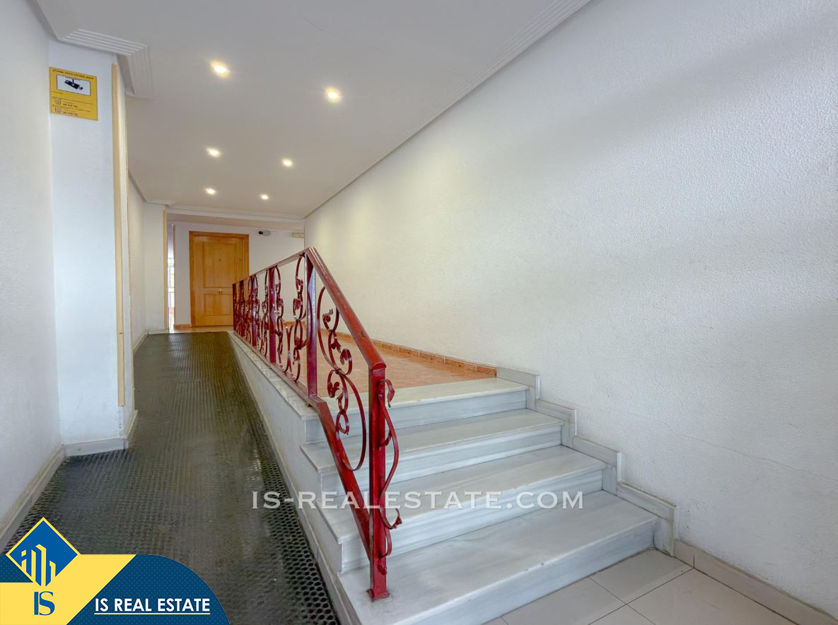 3-jų kambarių apartamentas su bendru baseinu, Ispanijoje, Alicante provincijoje, Torrevieja mieste, Playa del Cura rajone, bendras plotas 58 m², 600 metrų iki jūros, 45 kilometrai iki Alicante oro uosto. Turtui priklauso bendras baseinas, terasa, liftas. Netoli turto yra parduotuvės, restoranai, vaistinės, autobusų stotelės, degalinės, žalios zonos, kavinės, Habaneras alėja