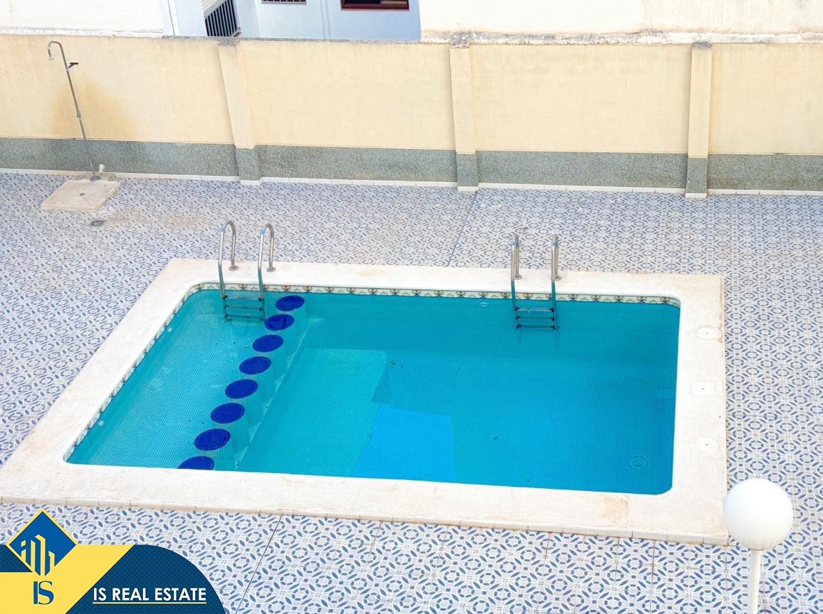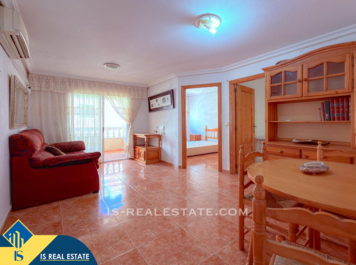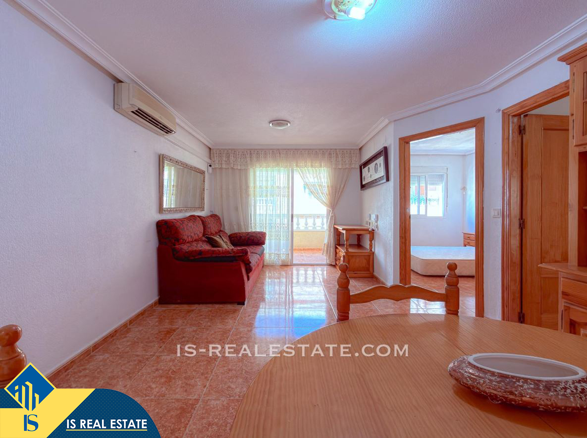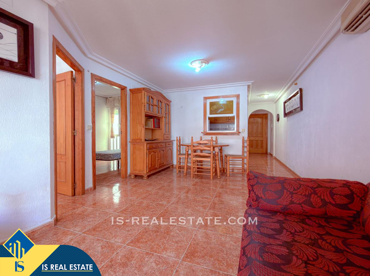3-jų kambarių apartamentas su bendru baseinu, Ispanijoje, Alicante provincijoje, Torrevieja mieste, Playa del Cura rajone, bendras plotas 58 m², 600 metrų iki jūros, 45 kilometrai iki Alicante oro uosto. Turtui priklauso bendras baseinas, terasa, liftas. Netoli turto yra parduotuvės, restoranai, vaistinės, autobusų stotelės, degalinės, žalios zonos, kavinės, Habaneras alėja