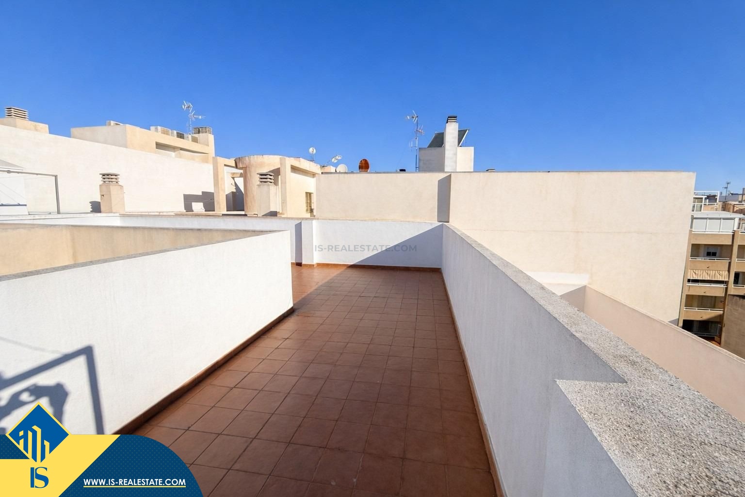 3-jų kambarių penthouse apartamentas su terasa, Ispanijoje, Alicante provincijoje, Torrevieja mieste, Playa del Cura rajone, bendras plotas 70 m², 400 metrų iki jūros, 45 kilometrai iki Alicante oro uosto. Turtui priklauso terasa, liftas. Netoli turto yra parduotuvės, restoranai, autobusų stotelės, degalinės, žalios zonos, kavinės, vaistinės