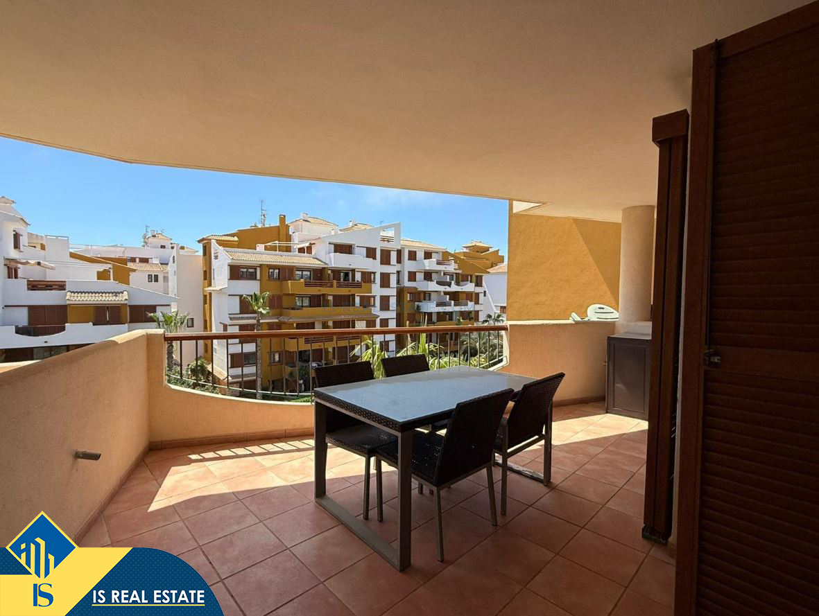 3-jų kambarių apartamentas su bendru baseinu, Ispanijoje, Alicante provincijoje, Torrevieja mieste, bendras plotas 43 m², 350 metrų iki jūros, 45 kilometrai iki Alicante oro uosto. Turtui priklauso bendras baseinas, terasa, liftas. Netoli turto yra parduotuvės, restoranai, vaistinės, autobusų stotelės, degalinės, žalios zonos, kavinės