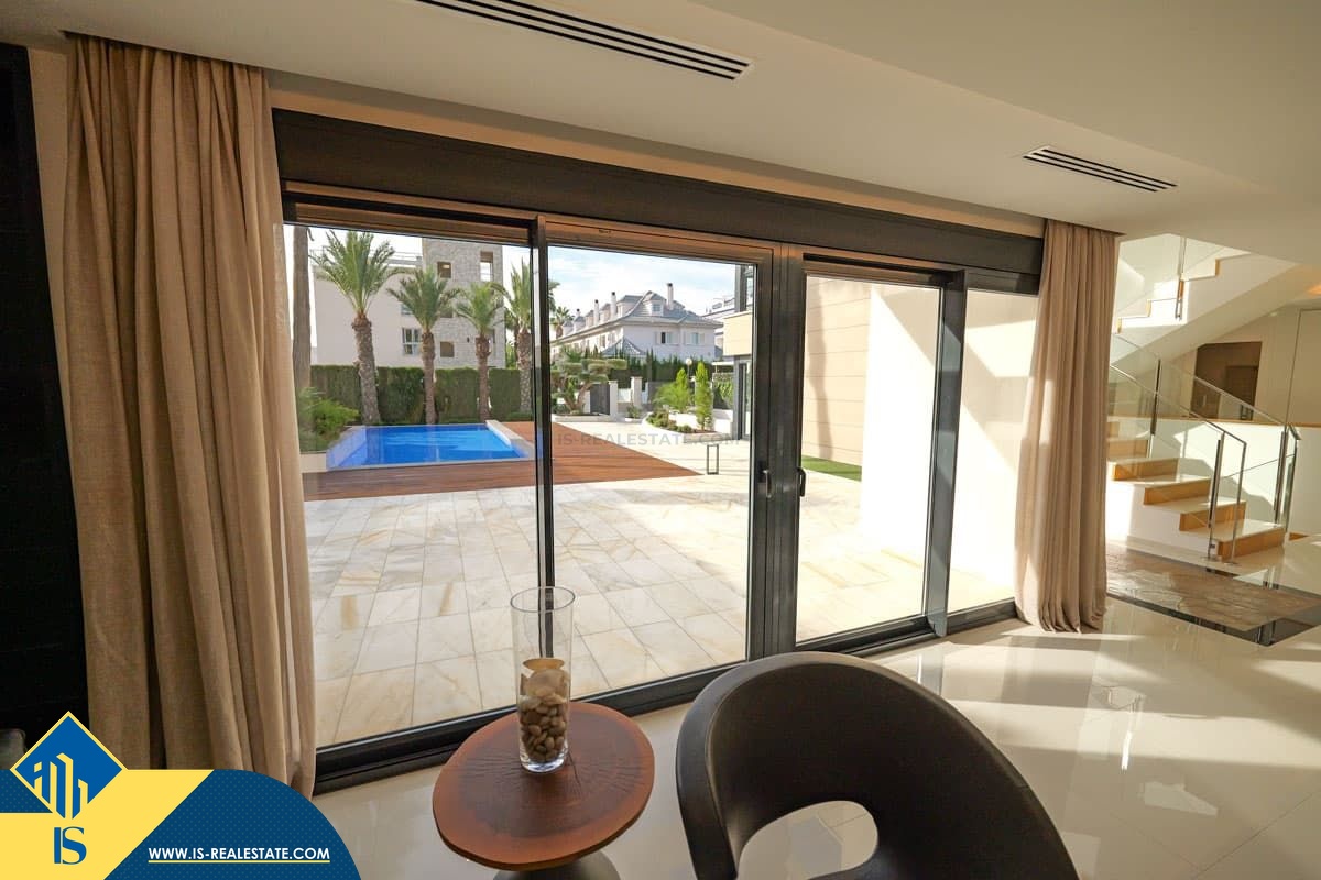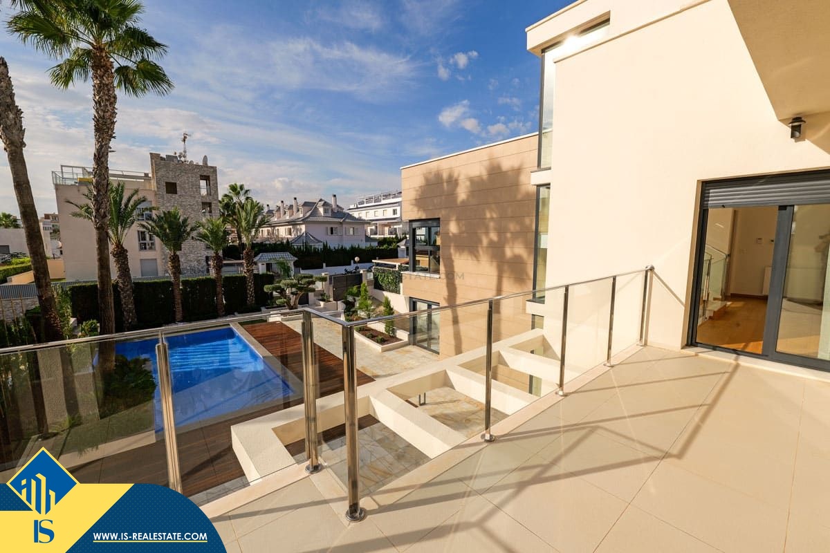4-ių kambarių namas su privačiu baseinu, Ispanijoje, Alicante provincijoje, Torrevieja mieste, Playa del Acequión rajone, bendras plotas 430 m², 200 metrų iki jūros, 45 kilometrai iki Alicante miesto oro uosto. Netoli turto yra parduotuvės, restoranai, vaistinės, autobusų stotelės, degalinės, žalios zonos, kavinės