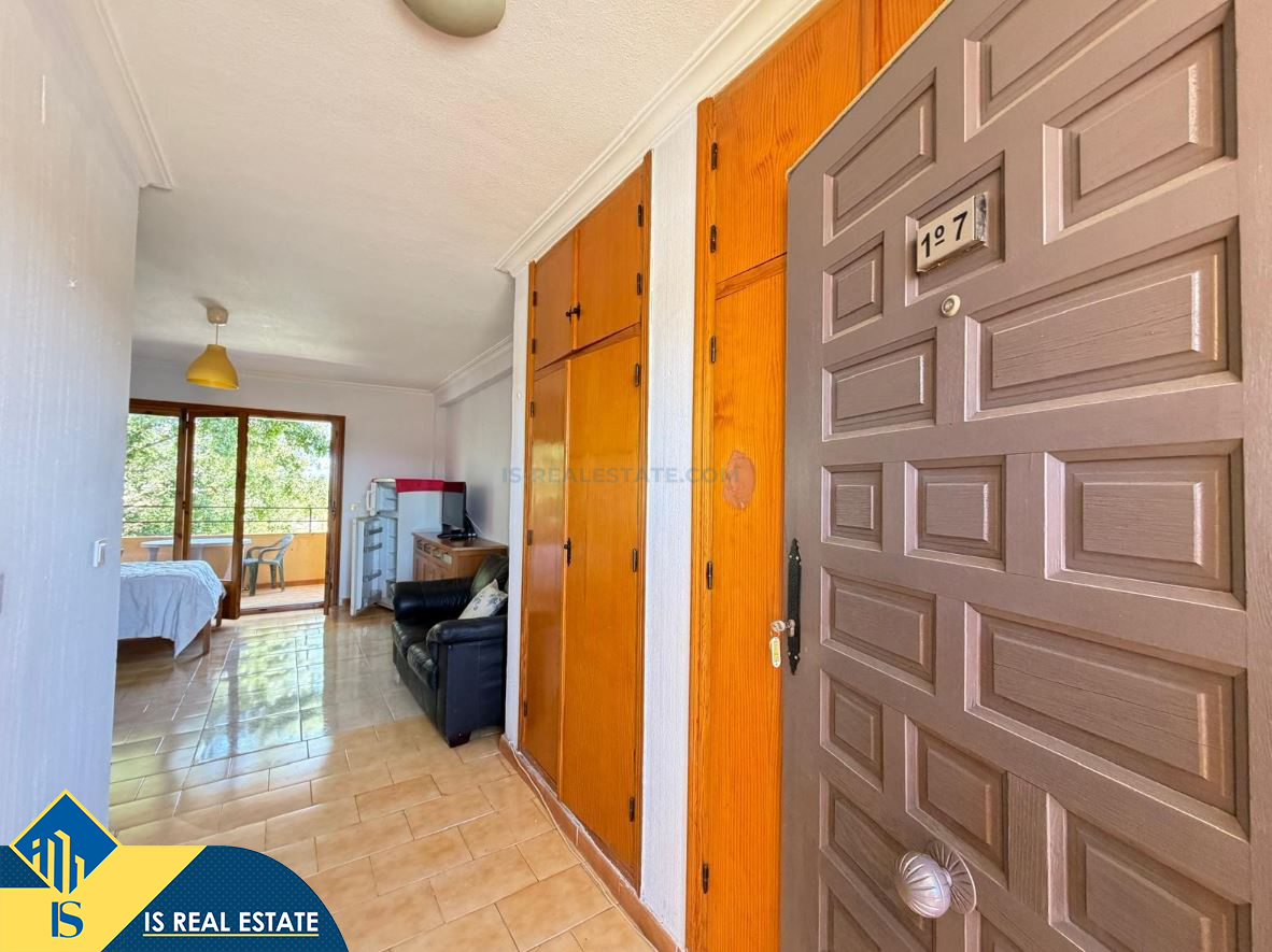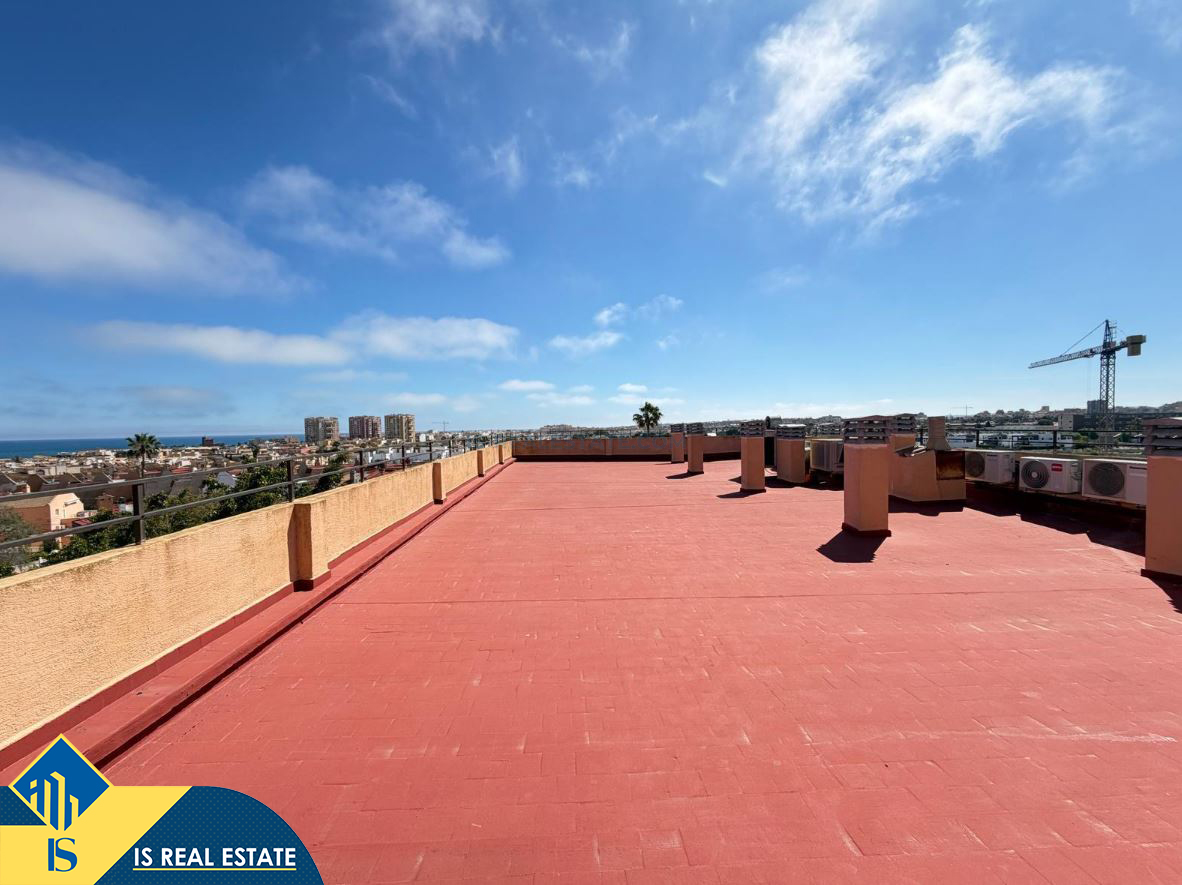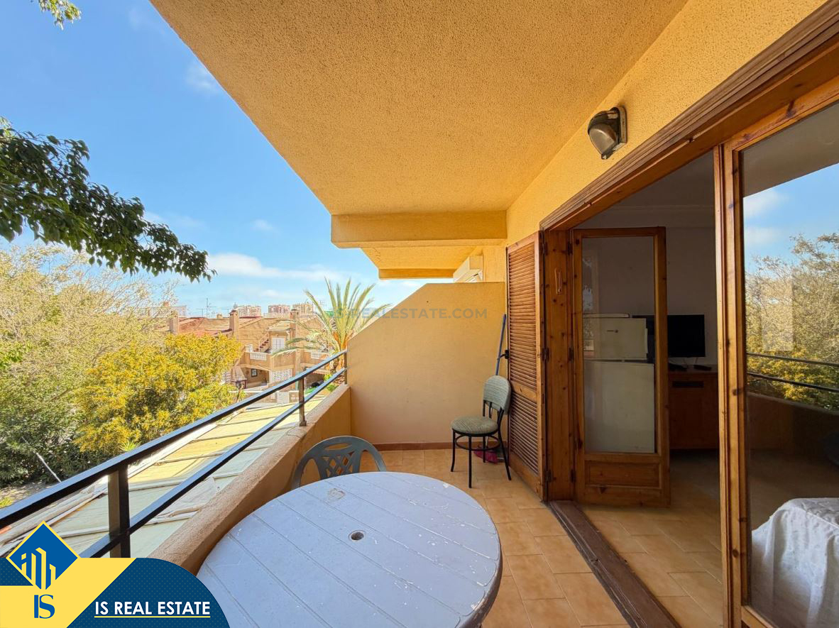 Studija su terasa, Ispanijoje, Alicante provincijoje, Torrevieja mieste, bendras plotas 36 m², 1 kilometras iki jūros, 45 kilometrai iki Alicante oro uosto. Turtui priklauso terasa, liftas. Netoli turto yra parduotuvės, restoranai, vaistinės, autobusų stotelės, degalinės, žalios zonos, kavinės
