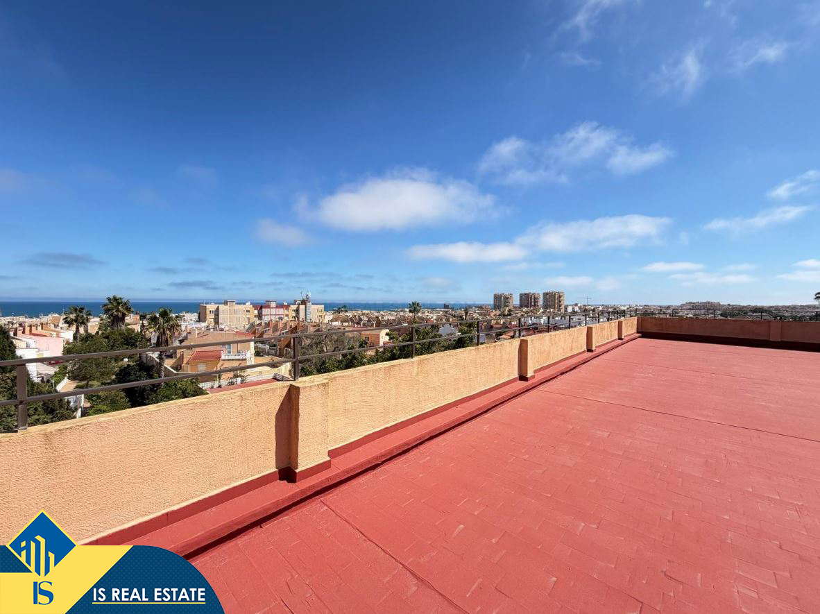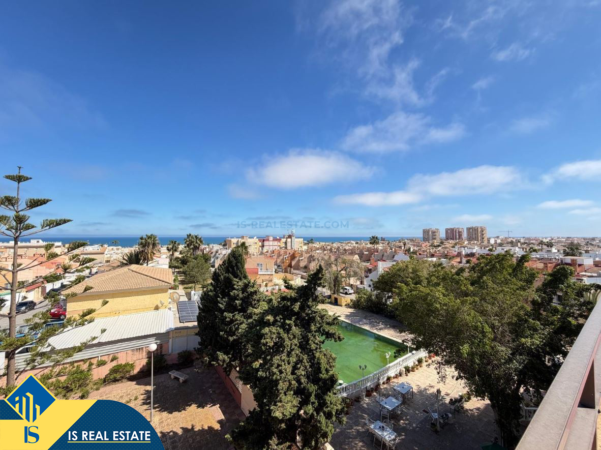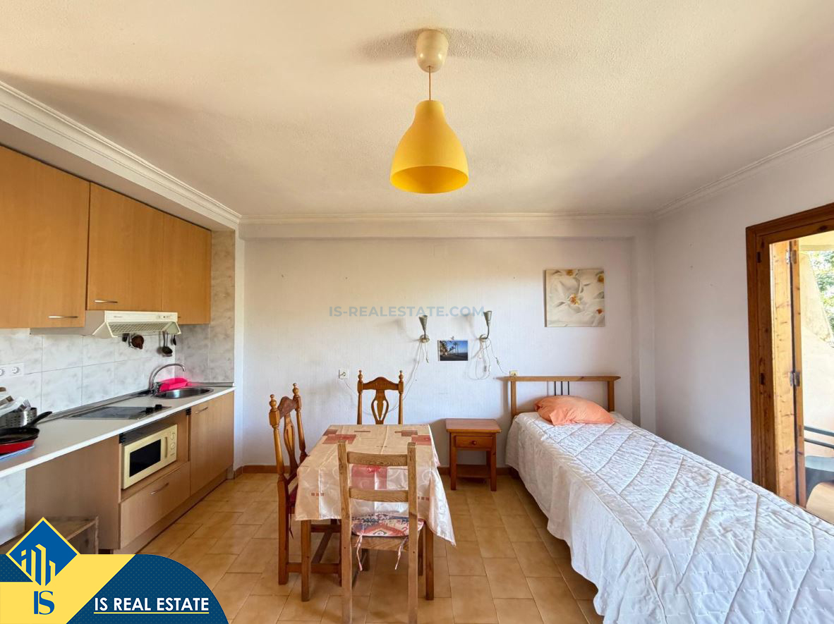 Studija su terasa, Ispanijoje, Alicante provincijoje, Torrevieja mieste, bendras plotas 36 m², 1 kilometras iki jūros, 45 kilometrai iki Alicante oro uosto. Turtui priklauso terasa, liftas. Netoli turto yra parduotuvės, restoranai, vaistinės, autobusų stotelės, degalinės, žalios zonos, kavinės