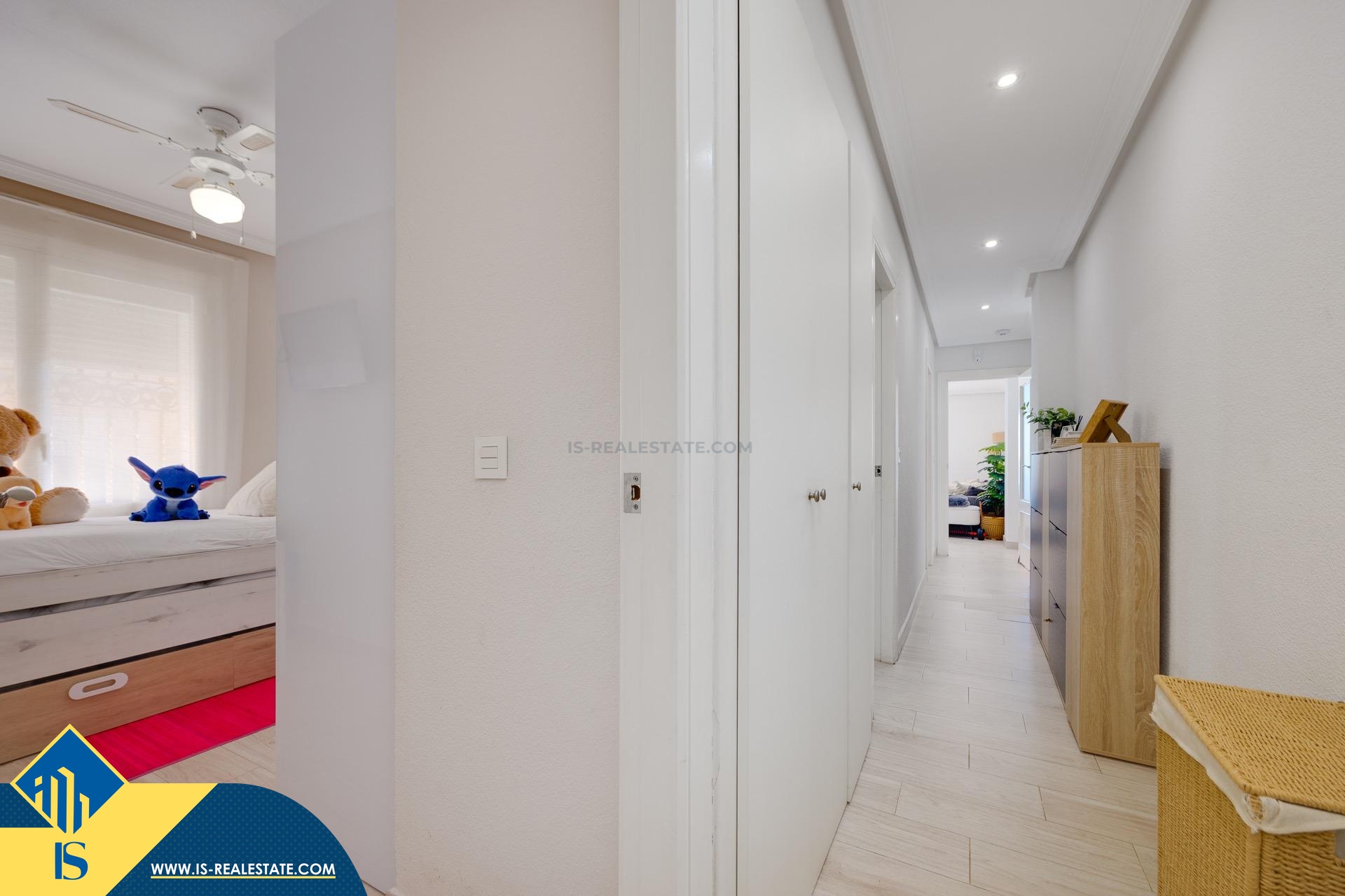 4-ių kambarių renovuotas apartamentas su terasa, Ispanijoje, Alicante provincijoje, Torrevieja mieste, Playa del Acequión rajone, bendras plotas 92 m², 30 metrų iki jūros, 45 kilometrai iki Alicante oro uosto. Turtui priklauso terasa. Netoli turto yra parduotuvės, restoranai, vaistinės, autobusų stotelės, degalinės, žalios zonos, kavinės
