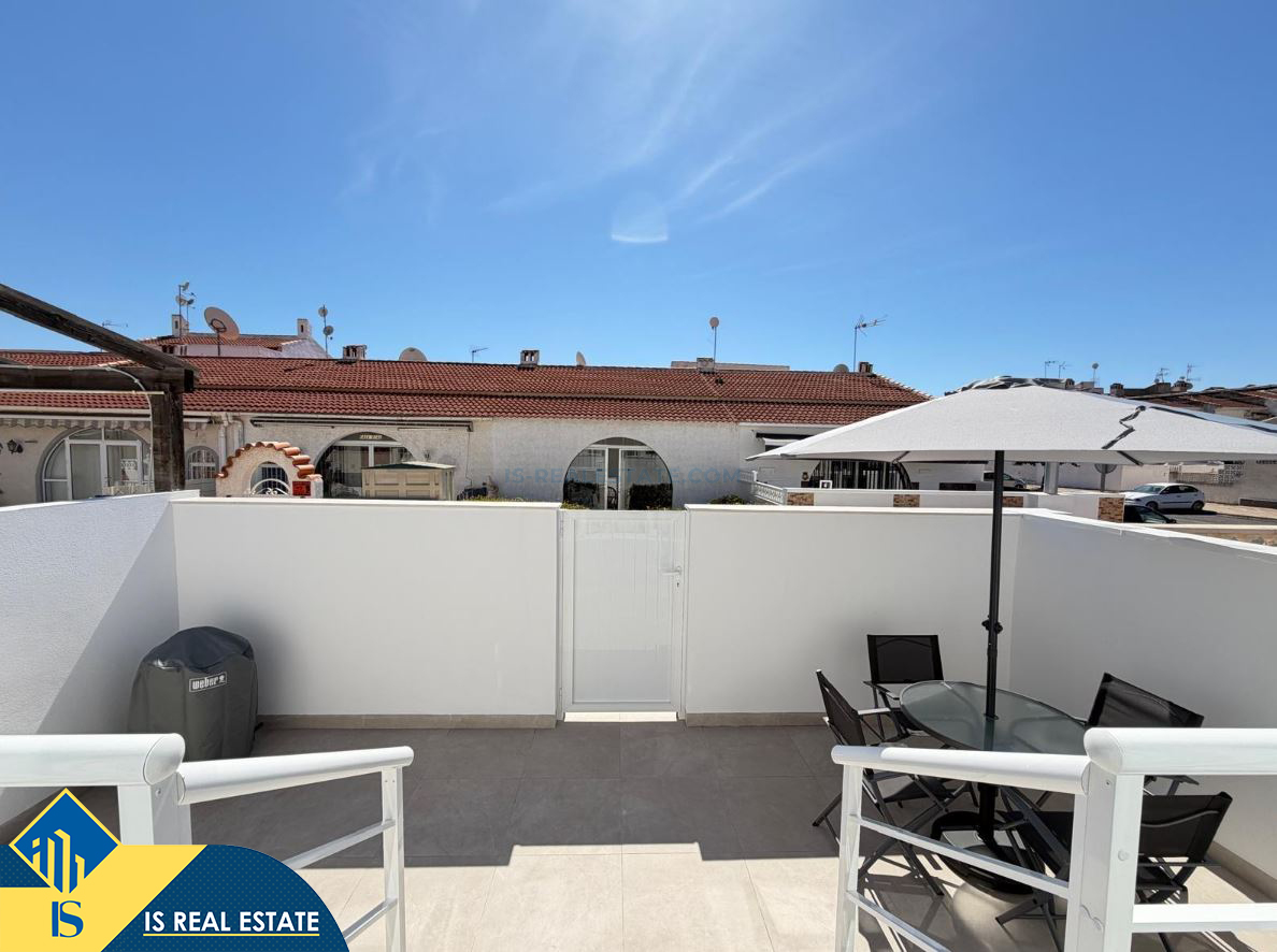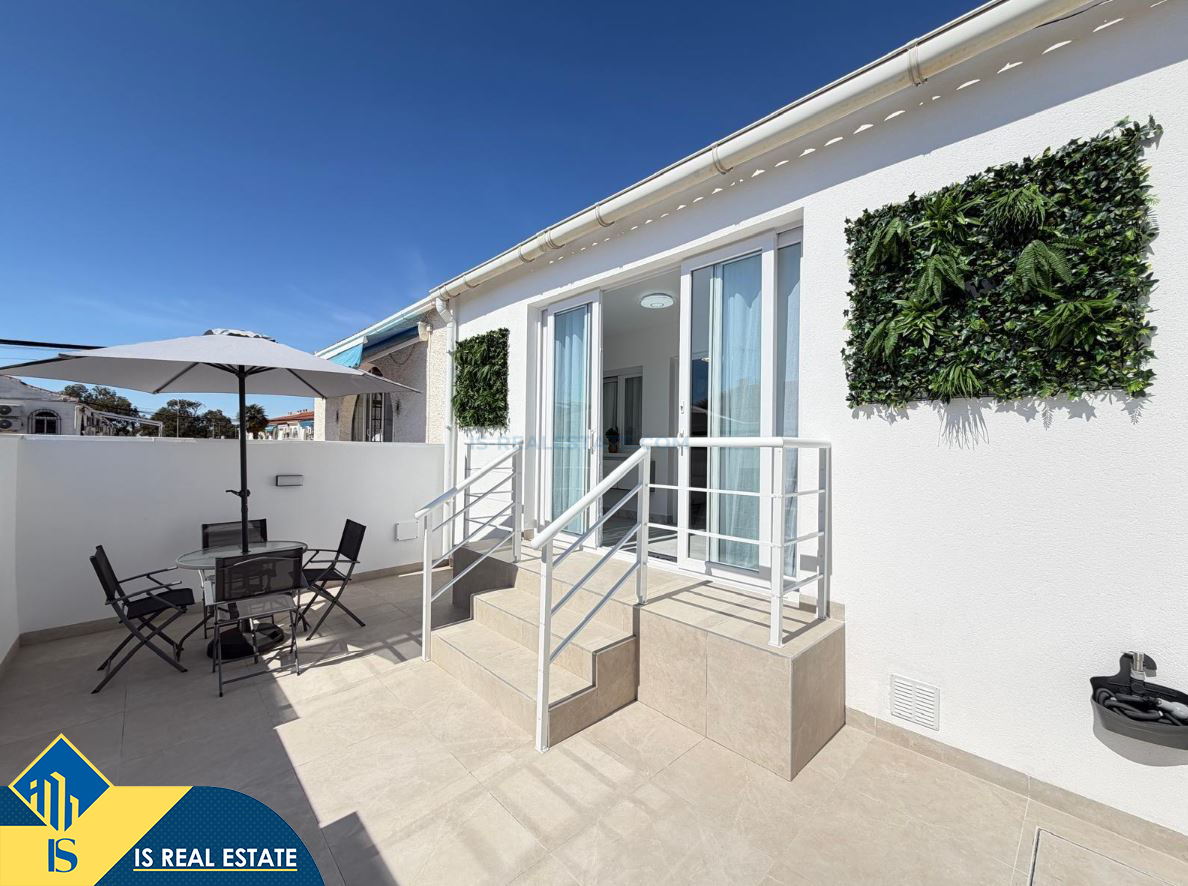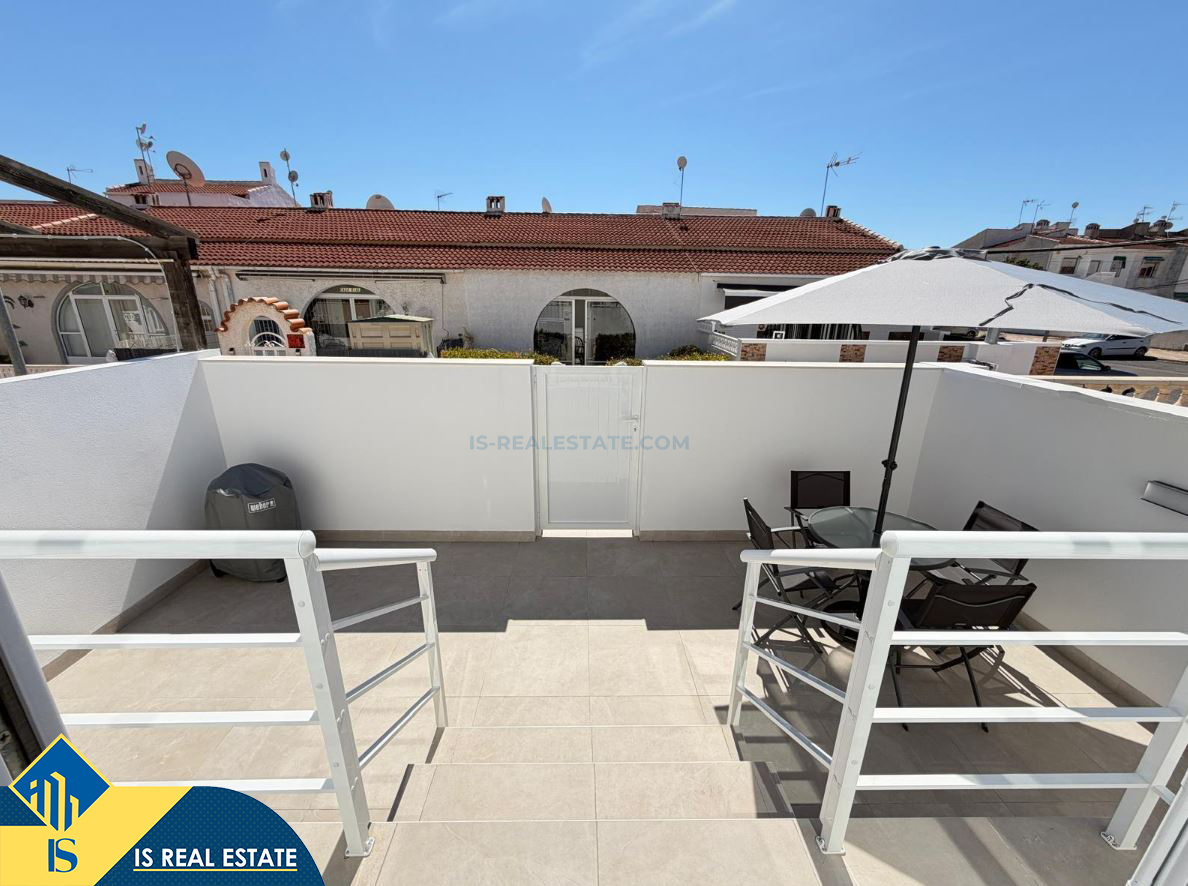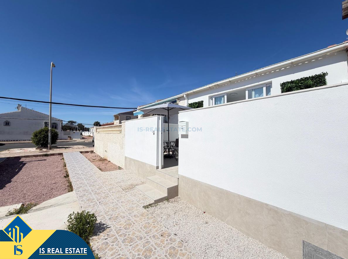 3-jų kambarių renovuotas namas su terasa, Ispanijoje, Alicante provincijoje, Torrevieja mieste, El Chaparral rajone, bendras plotas 52 m², 4 kilometrai iki jūros, 45 kilometrai iki Alicante oro uosto. Turtui priklauso terasa, privatus kiemas. Netoli turto yra parduotuvės, restoranai, autobusų stotelės, vaikų zonos, degalinės, žalios zonos, kavinės, vaistinės