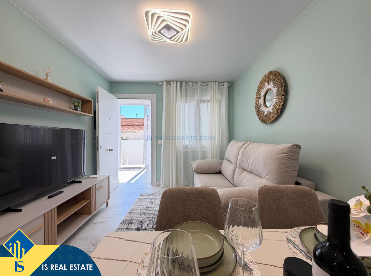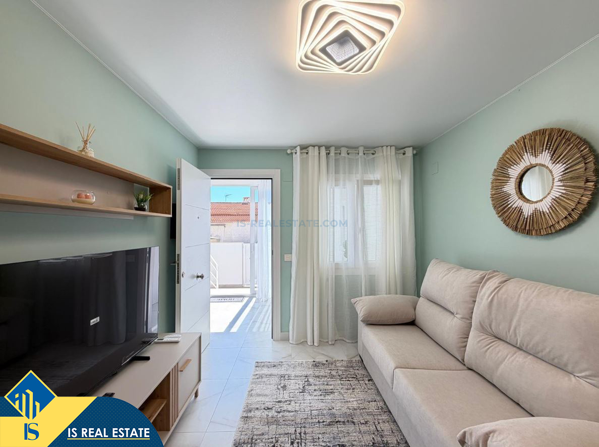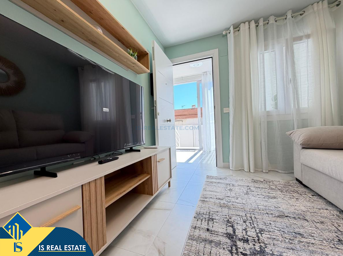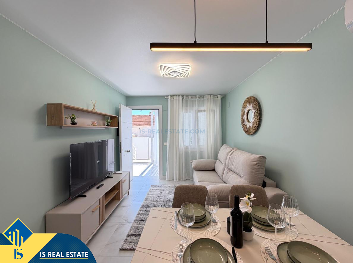 3-jų kambarių renovuotas namas su terasa, Ispanijoje, Alicante provincijoje, Torrevieja mieste, El Chaparral rajone, bendras plotas 52 m², 4 kilometrai iki jūros, 45 kilometrai iki Alicante oro uosto. Turtui priklauso terasa, privatus kiemas. Netoli turto yra parduotuvės, restoranai, autobusų stotelės, vaikų zonos, degalinės, žalios zonos, kavinės, vaistinės