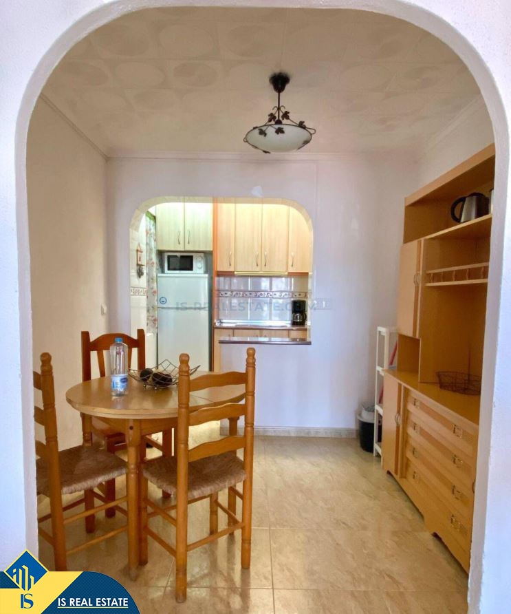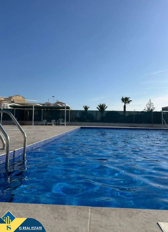 3-jų kambarių namas su bendru baseinu, Ispanijoje, Alicante provincijoje, Torrevieja mieste, Torreta rajone, bendras plotas 50 m², 3 kilometrai iki jūros, 45 kilometrai iki Alicante oro uosto. Turtui priklauso bendras baseinas, terasa, vieta automobiliui. Netoli turto yra parduotuvės, restoranai, autobusų stotelės, vaikų zonos, degalinės, žalios zonos, kavinės, vaistinės