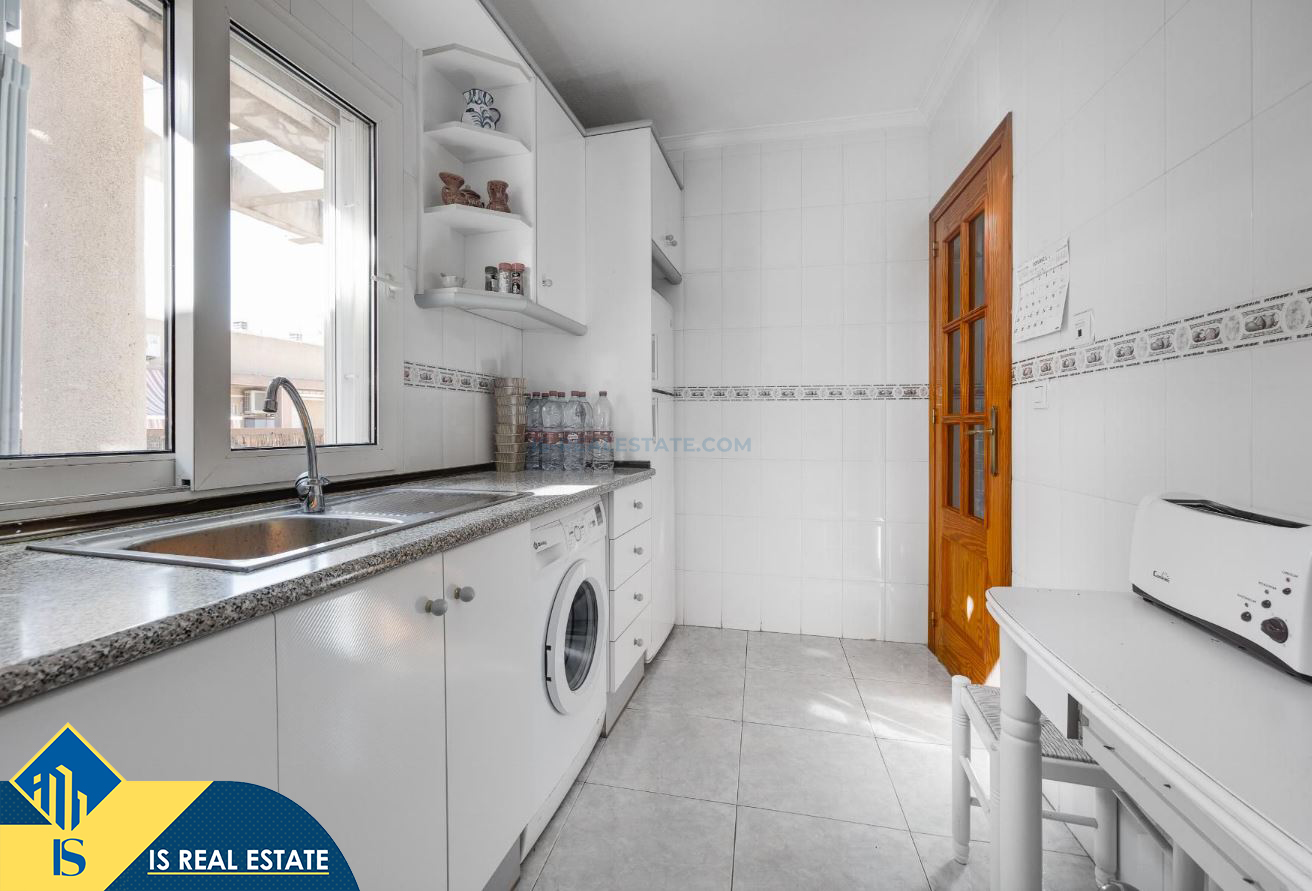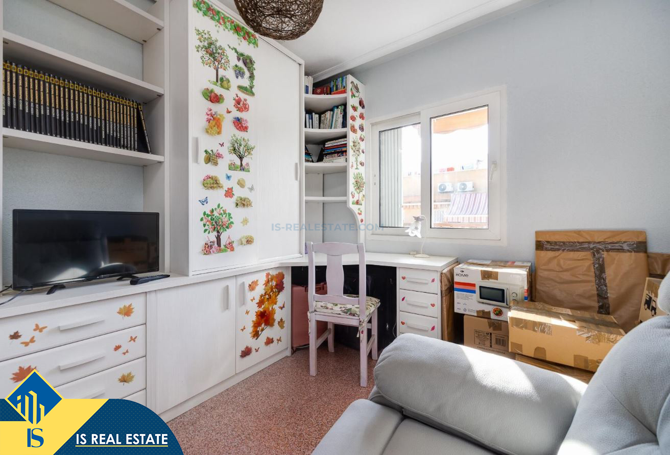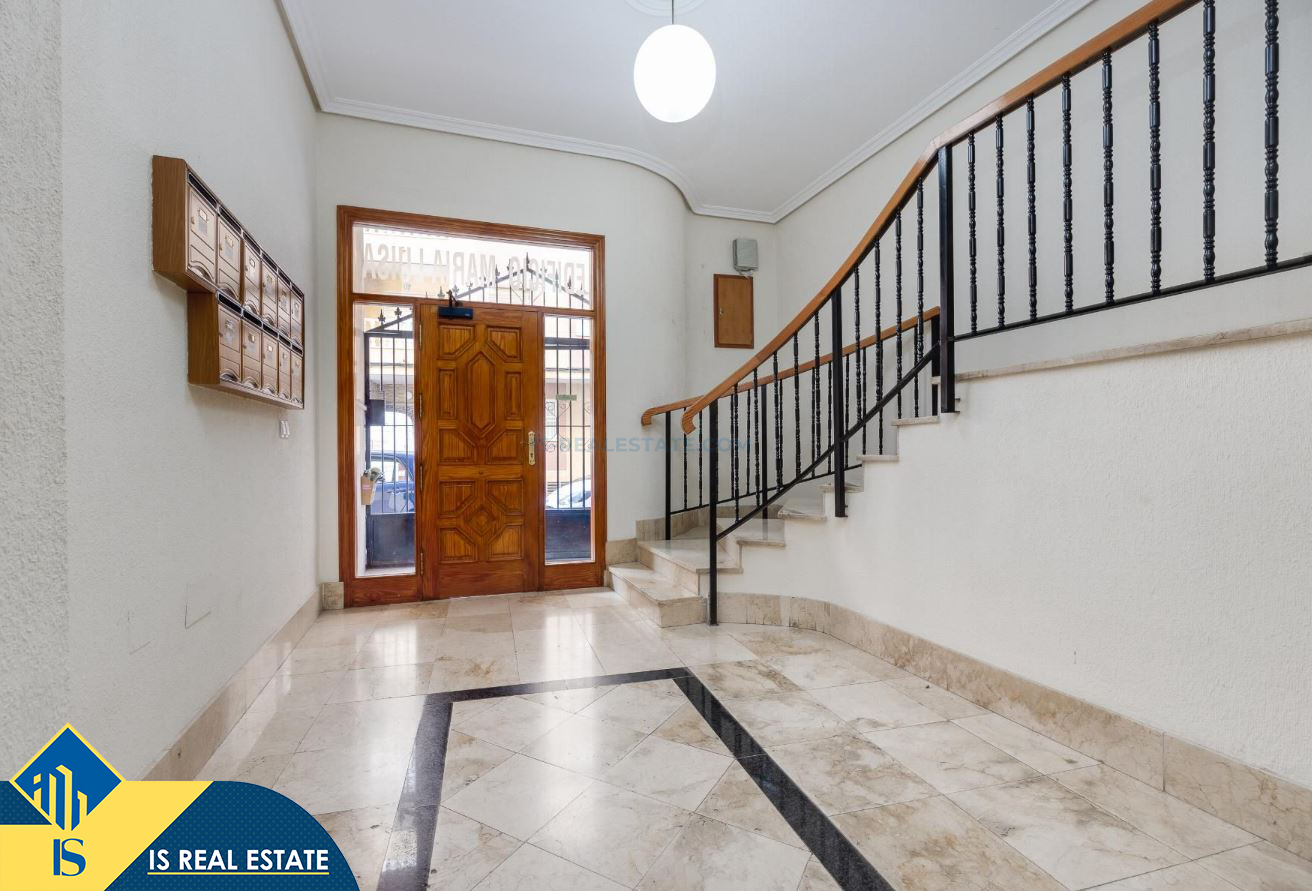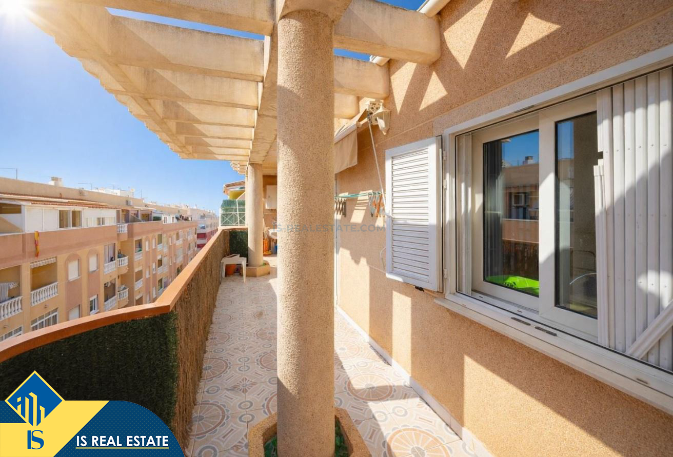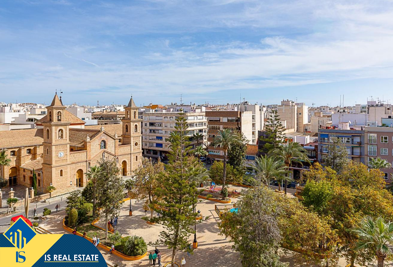 3-jų kambarių apartamentas su terasa, Ispanijoje, Alicante provincijoje, Torrevieja mieste, bendras plotas 80 m², 620 metrų iki jūros, 45 kilometrai iki Alicante oro uosto. Turtui priklauso terasa, liftas. Netoli turto yra parduotuvės, restoranai, vaistinės, autobusų stotelės, degalinės, žalios zonos, kavinės