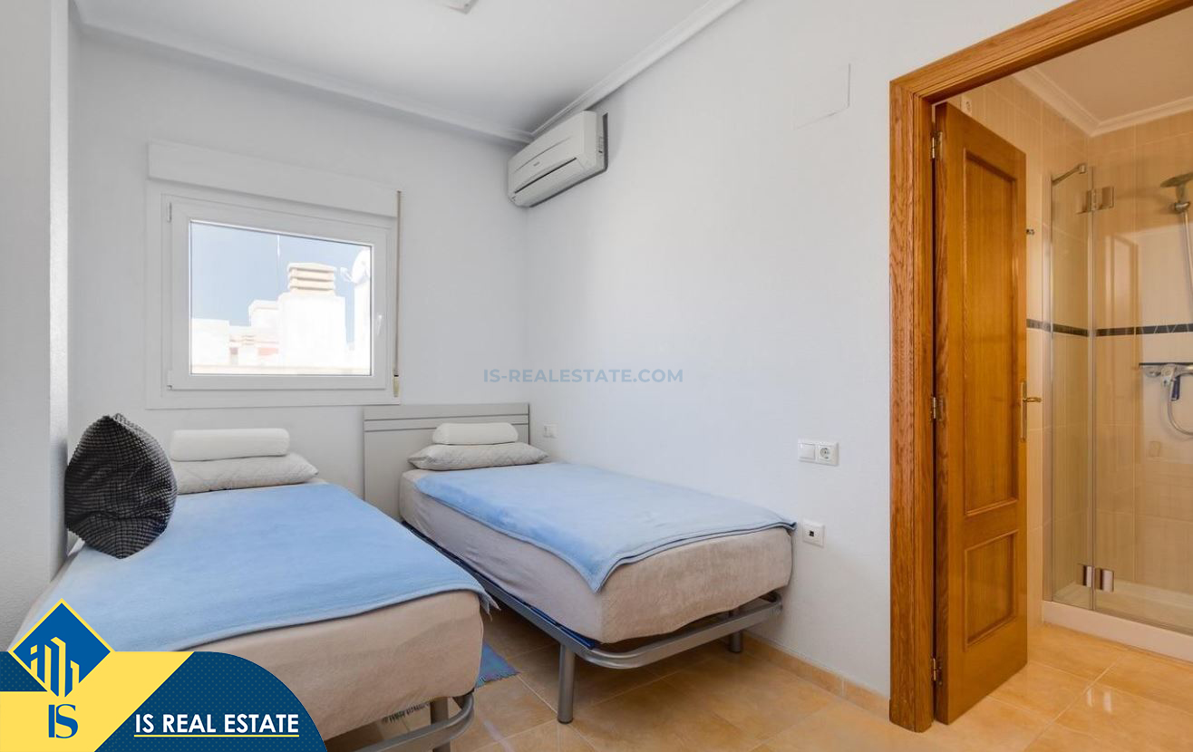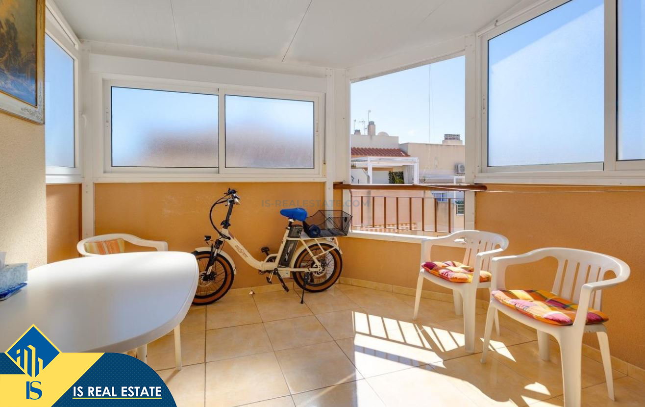 3-jų kambarių penthouse apartamentas su terasa, Ispanijoje, Alicante provincijoje, Torrevieja mieste, bendras plotas 62 m², 1.3 kilometro iki jūros, 45 kilometrai iki Alicante oro uosto. Turtui priklauso terasa, liftas. Netoli turto yra parduotuvės, restoranai, vaistinės, autobusų stotelės, degalinės, žalios zonos, kavinės
