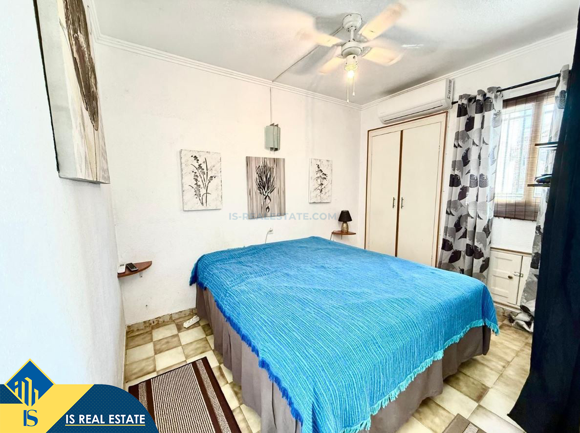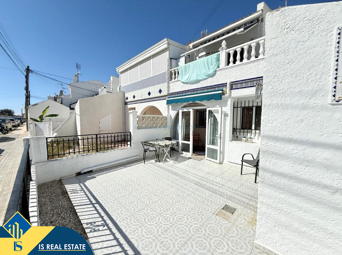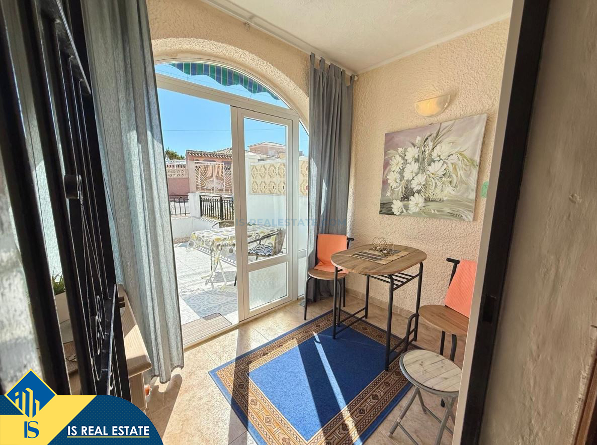 2-jų kambarių bungalas su bendru baseinu, Ispanijoje, Alicante provincijoje, Torrevieja mieste, El Chaparral rajone, bendras plotas 52 m², 3.5 kilometro iki jūros, 45 kilometrai iki Alicante oro uosto. Turtui priklauso bendras baseinas, terasa, sandėliukas. Netoli turto yra parduotuvės, restoranai, autobusų stotelės, vaikų zonos, degalinės, žalios zonos, kavinės, vaistinės