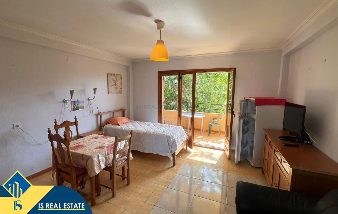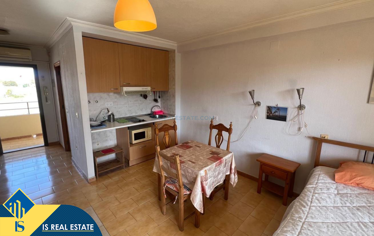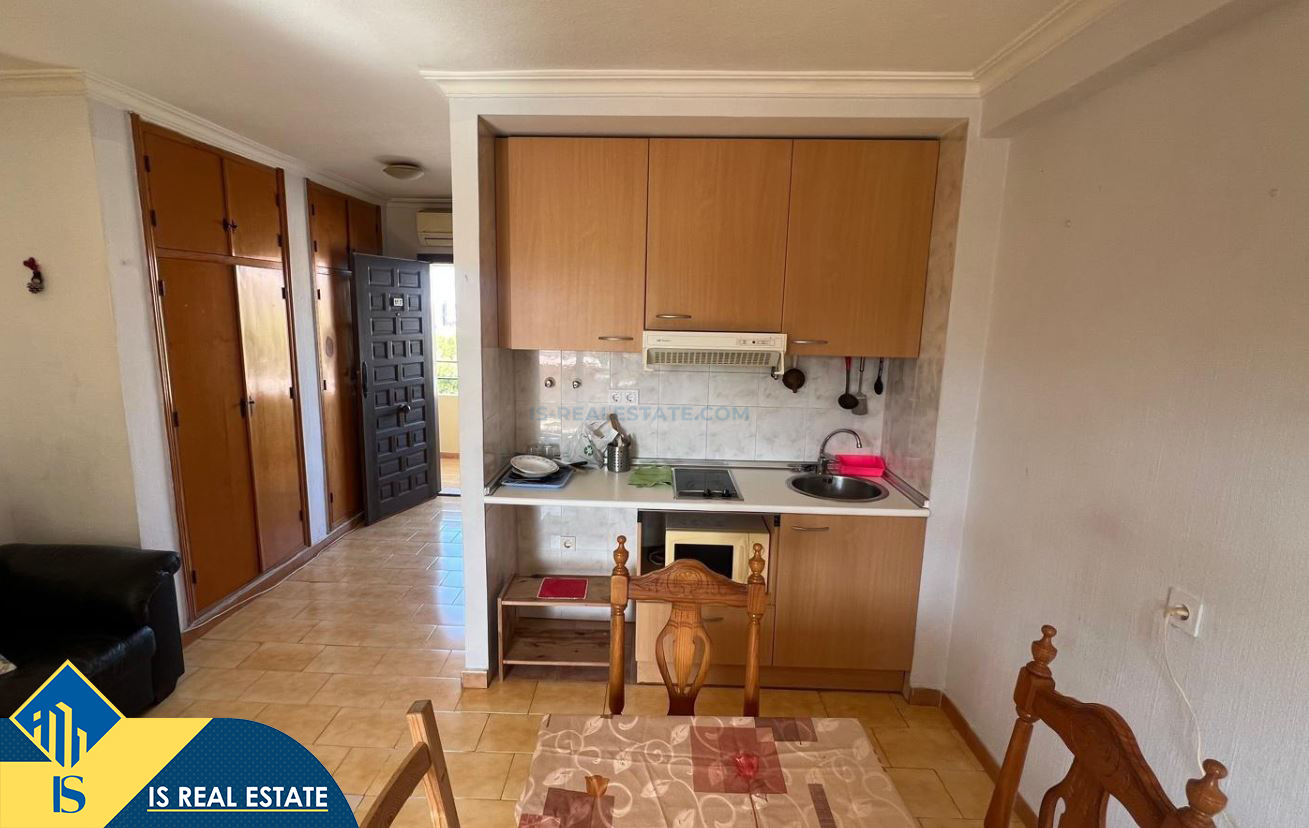 Studija su terasa, Ispanijoje, Alicante provincijoje, Torrevieja mieste, bendras plotas 31 m², 700 metrų iki jūros, 45 kilometrai iki Alicante oro uosto. Turtui priklauso terasa, liftas. Netoli turto yra parduotuvės, restoranai, vaistinės, autobusų stotelės, degalinės, žalios zonos, kavinės