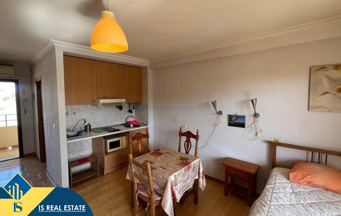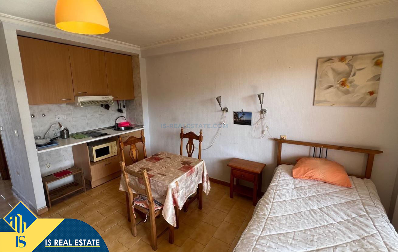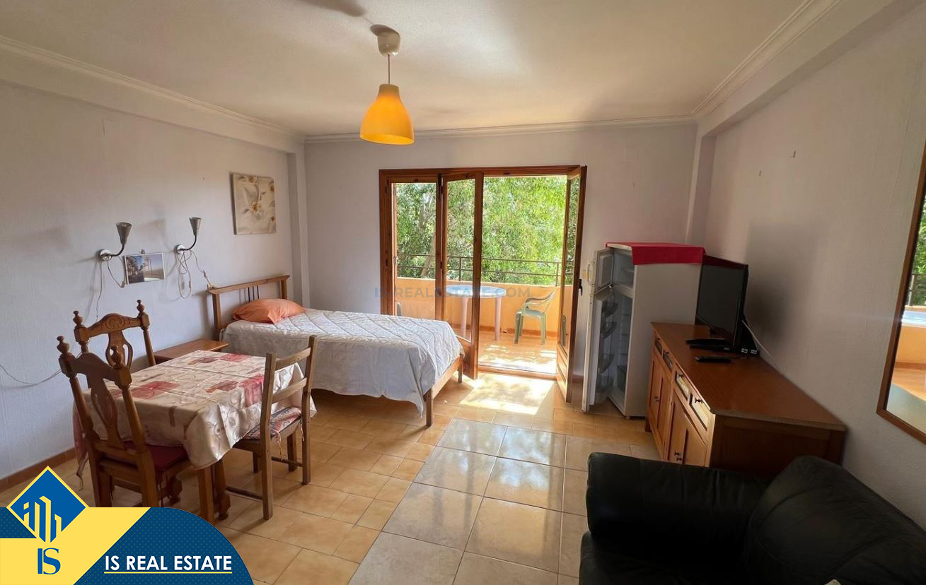 Studija su terasa, Ispanijoje, Alicante provincijoje, Torrevieja mieste, bendras plotas 31 m², 700 metrų iki jūros, 45 kilometrai iki Alicante oro uosto. Turtui priklauso terasa, liftas. Netoli turto yra parduotuvės, restoranai, vaistinės, autobusų stotelės, degalinės, žalios zonos, kavinės