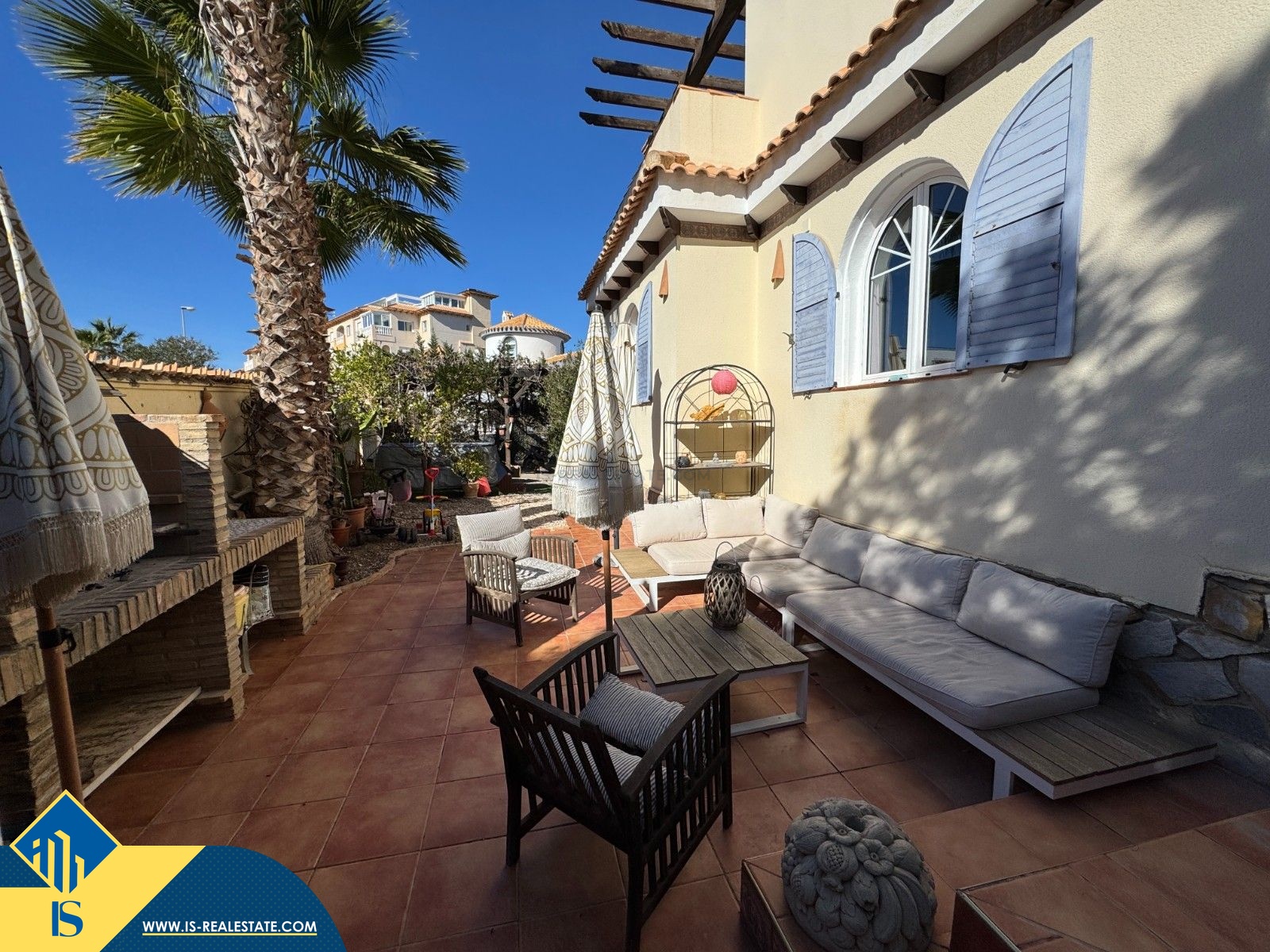 6-ių kambarių vila su privačiu baseinu, Ispanijoje, Alicante provincijoje, Orihuela Costa mieste, bendras plotas 218 m², 600 metrų iki jūros, 57 kilometrai iki Alicante oro uosto. Turtui priklauso terasa, privatus baseinas, vieta automobiliui. Netoli turto yra parduotuvės, restoranai, autobusų stotelės, vaikų zonos, degalinės, žalios zonos, kavinės, ligoninė
