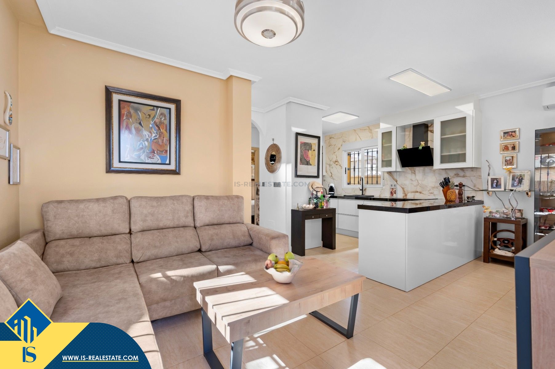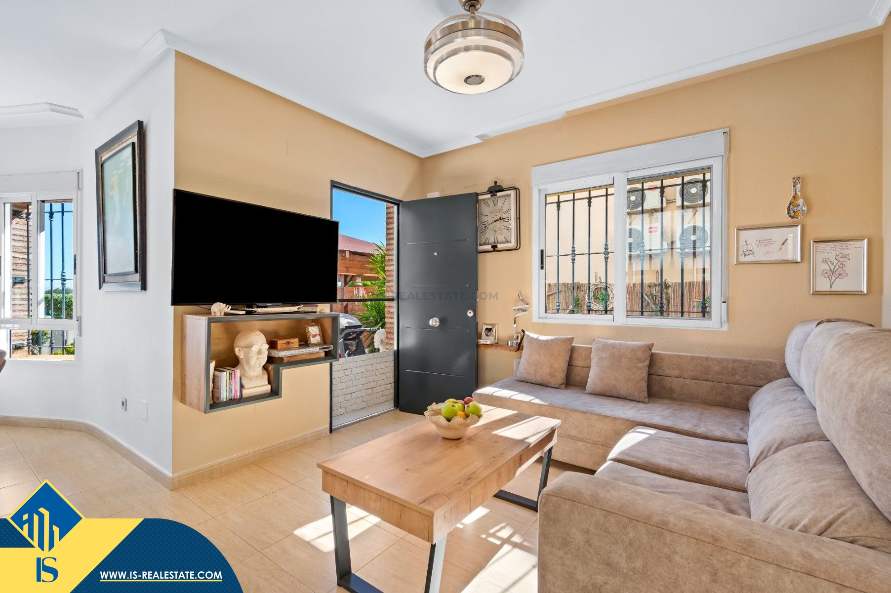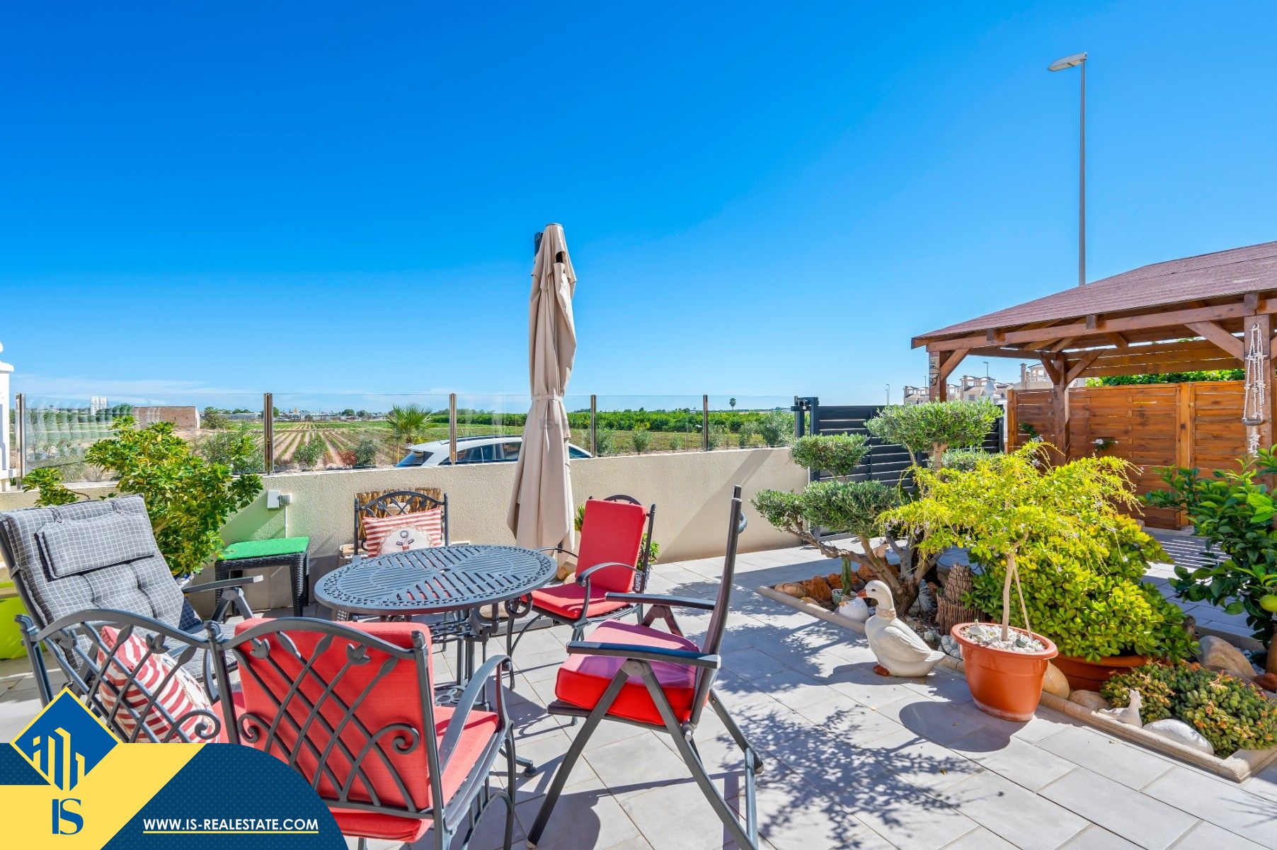 4-ių kambarių namas su terasa, Ispanijoje, Alicante provincija, Guardamar del Segura mieste, bendras plotas 107 m², 3 kilometrai iki jūros. 35 kilometrai iki Alicantes oro uosto. Netoli turto yra parduotuvės, restoranai, autobusų stotelės, degalinės, žalios zonos, kavinės, vaistinės
