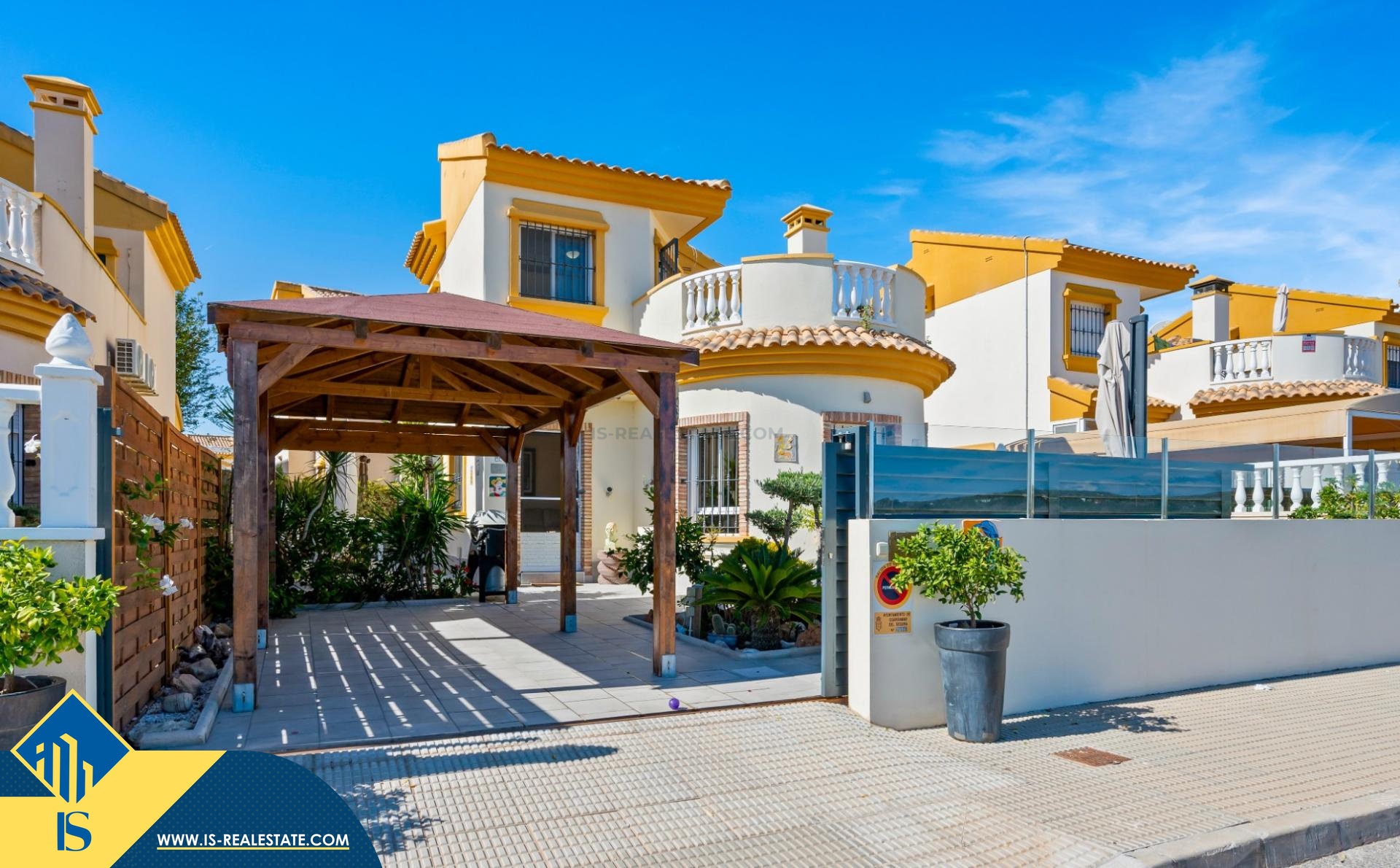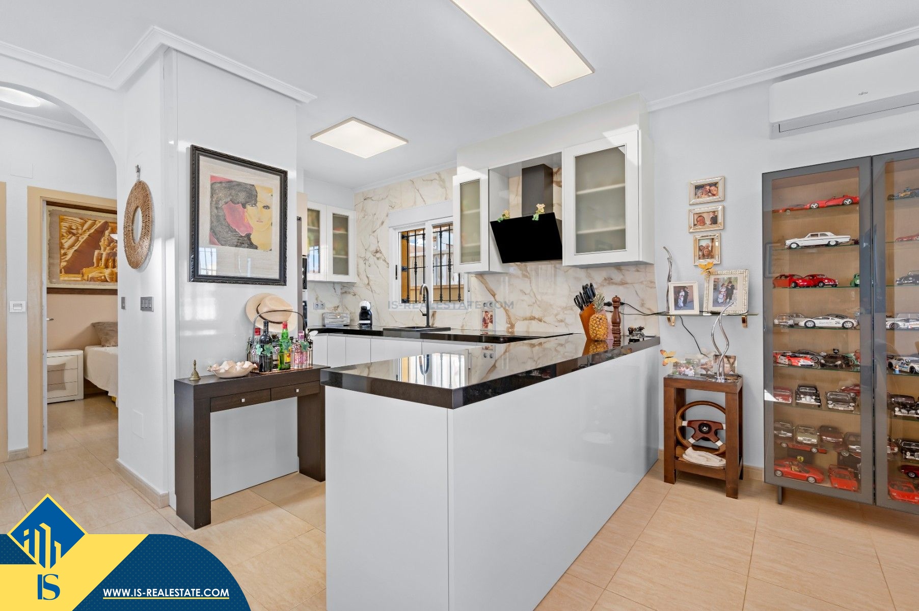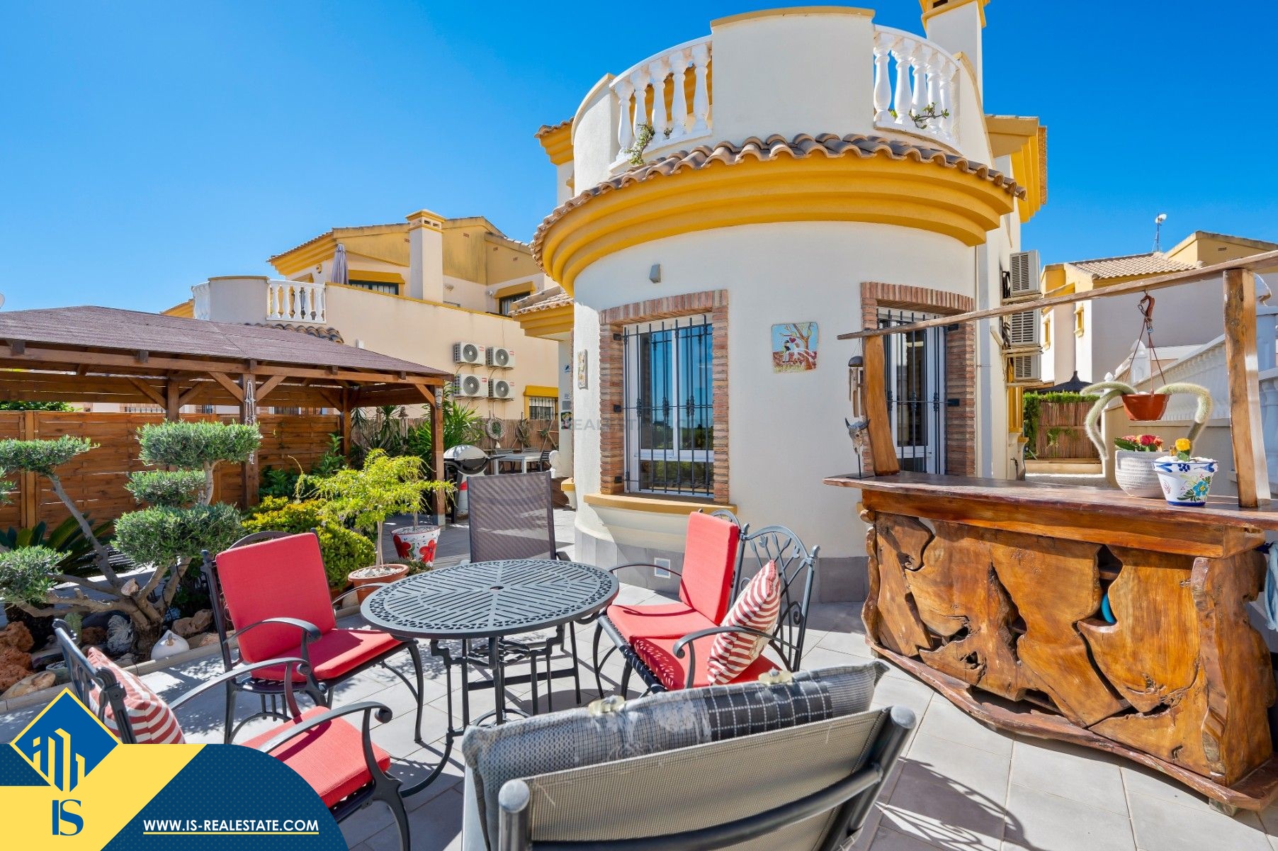 4-ių kambarių namas su terasa, Ispanijoje, Alicante provincija, Guardamar del Segura mieste, bendras plotas 107 m², 3 kilometrai iki jūros. 35 kilometrai iki Alicantes oro uosto. Netoli turto yra parduotuvės, restoranai, autobusų stotelės, degalinės, žalios zonos, kavinės, vaistinės