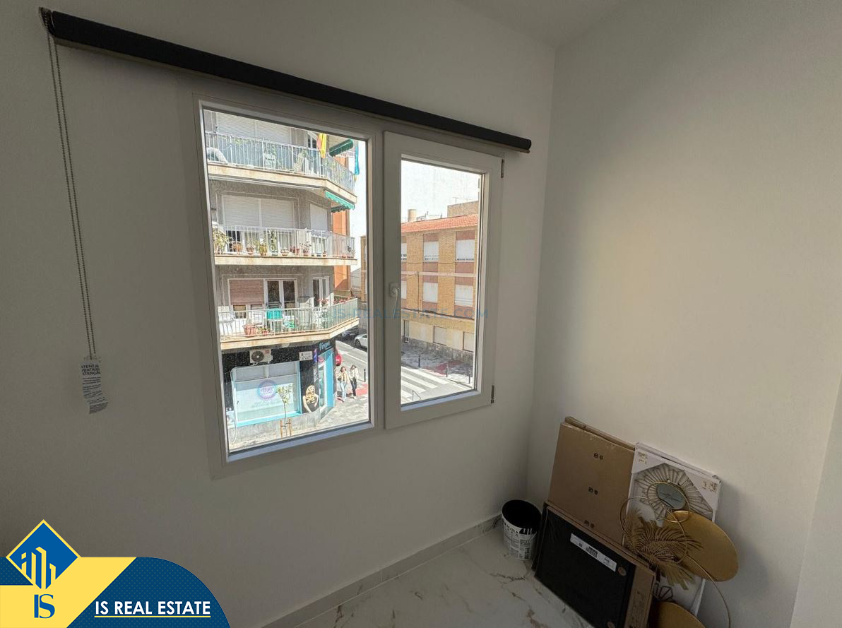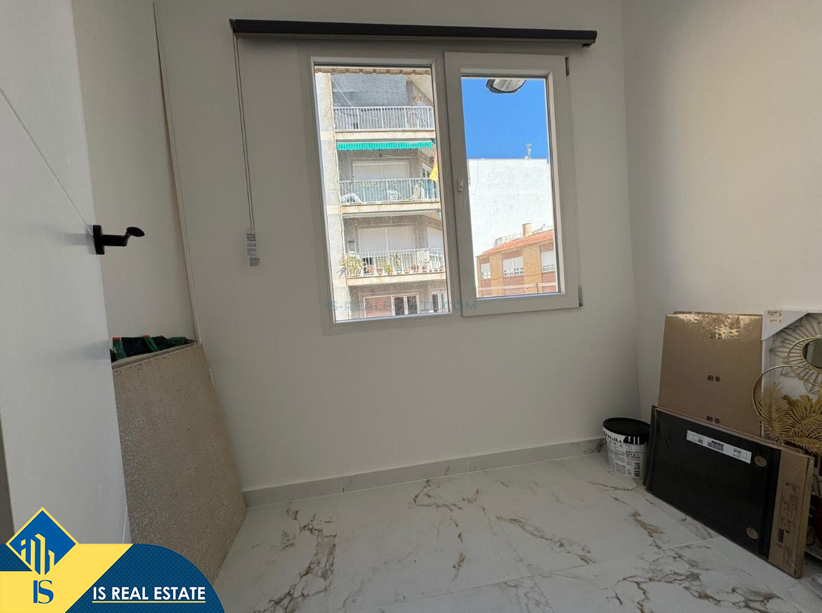 3-jų kambarių renovuotas apartamentas su terasa, Ispanijoje, Alicante provincijoje, Torrevieja mieste, bendras plotas 74 m², 500 metrų iki jūros, 45 kilometrai iki Alicante oro uosto. Turtui priklauso terasa. Netoli turto yra parduotuvės, restoranai, vaistinės, autobusų stotelės, degalinės, žalios zonos, kavinės