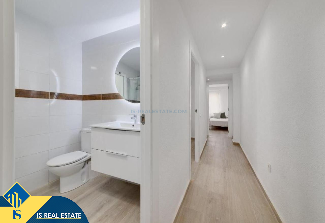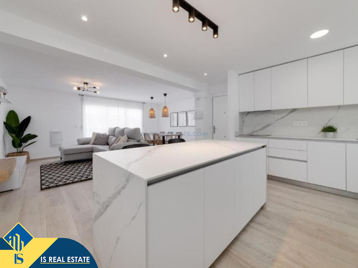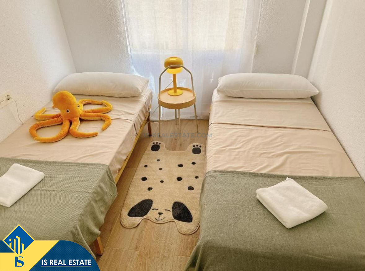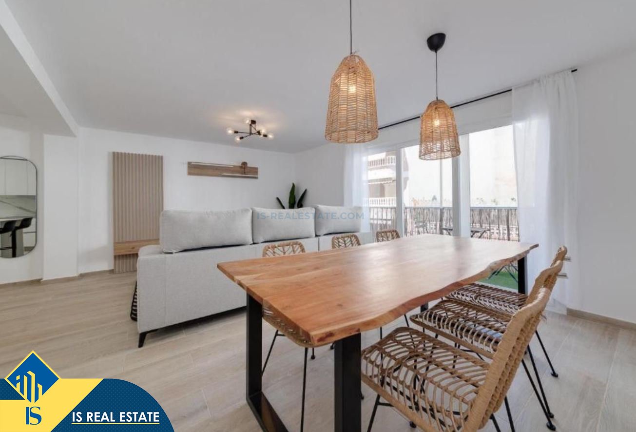 4-ių kambarių apartamentas su terasa, Ispanijoje, Alicante provincijoje, Torrevieja mieste, bendras plotas 104 m², 450 metrų iki jūros, 45 kilometrai iki Alicante oro uosto. Turtui priklauso terasa. Netoli turto yra parduotuvės, restoranai, vaistinės, autobusų stotelės, degalinės, žalios zonos, kavinės